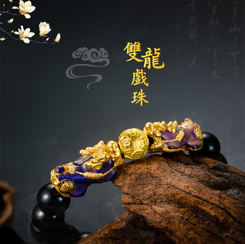 【雙龍戲珠】【轉運變色琺瑯雙貔貅】運勢流轉變色雙貔貅招財護主黑曜石紅瑪瑙手鍊