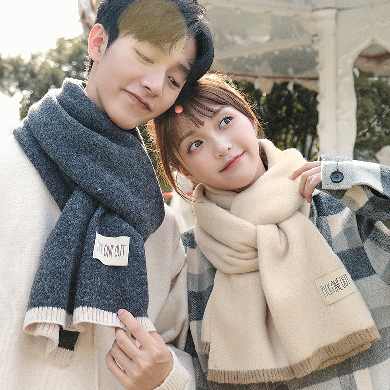 【韓系百搭純色圍巾】【手工毛線針織】韓國經典純色百搭毛線針織情侶圍巾男女圍巾