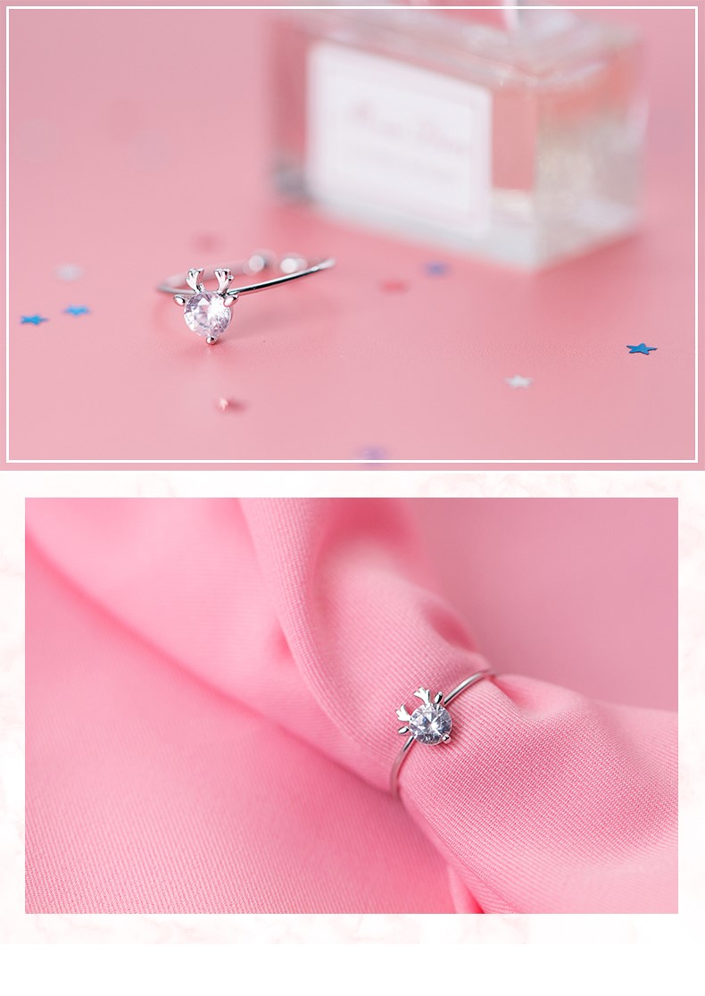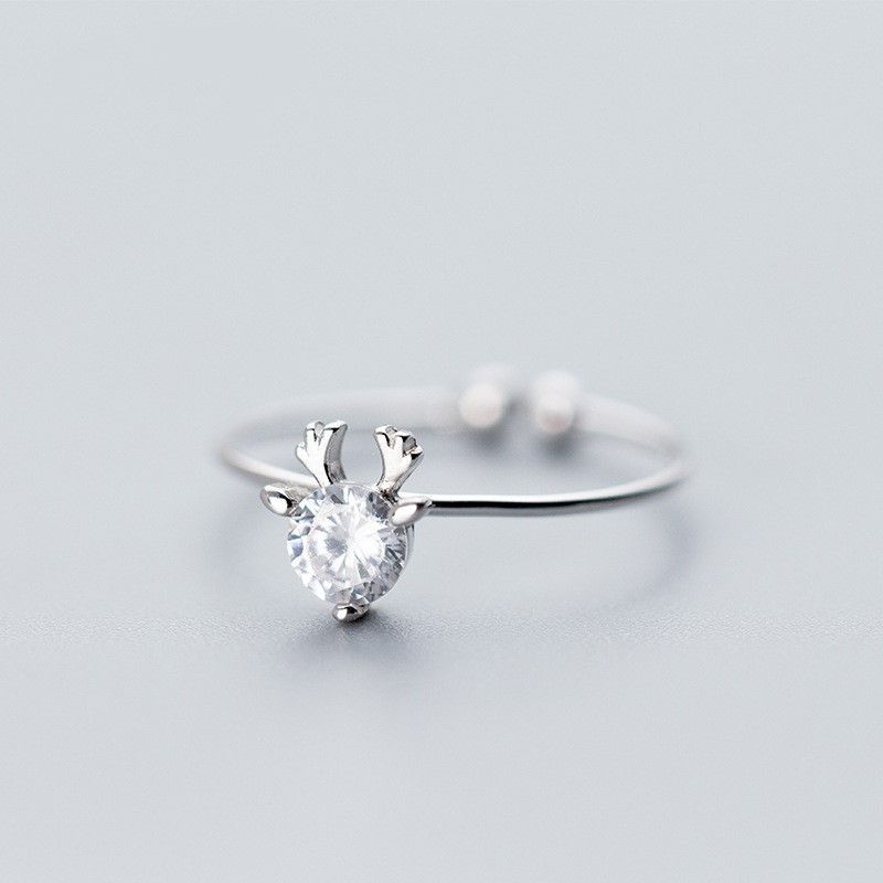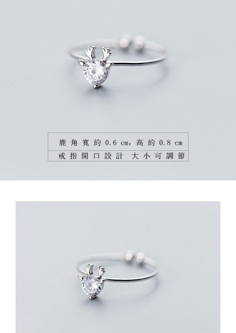 【可愛小鹿】北歐聖誕版可愛小鹿單鉆s925純銀開口戒指