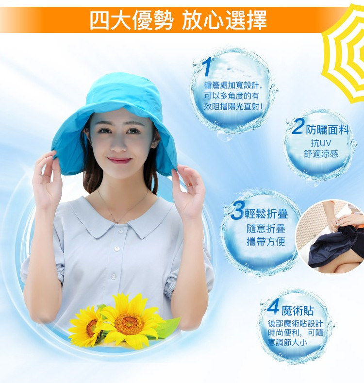 【冰絲涼感】【立體防曬防水】【寬大帽簷】韓版冰絲舒適透氣立體防曬防水夏季遮陽帽