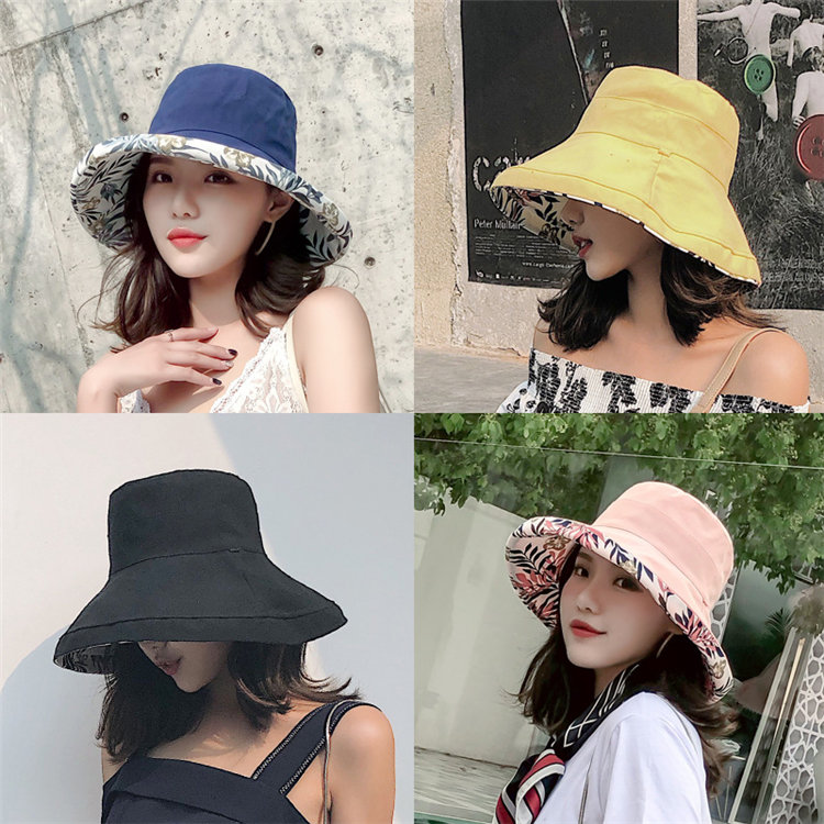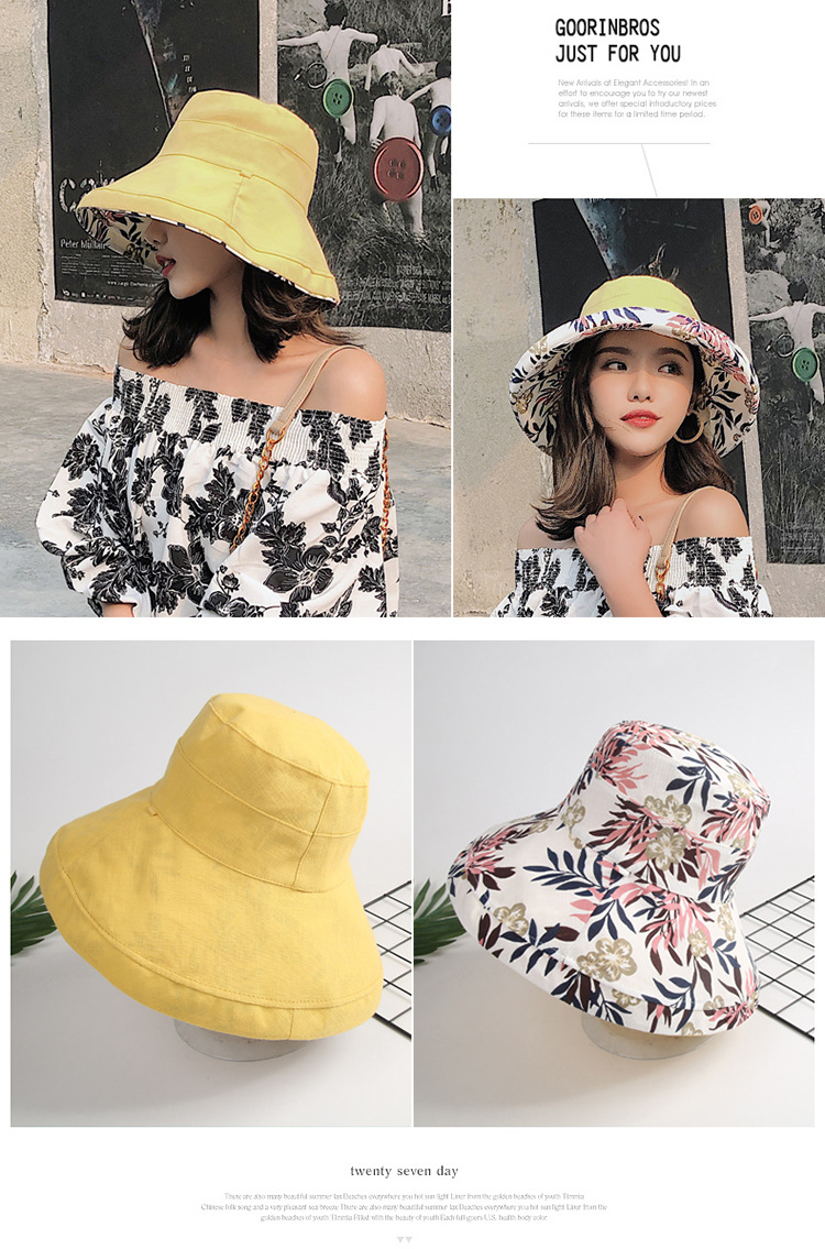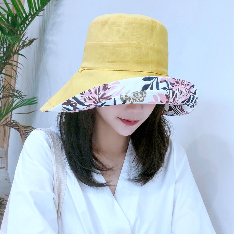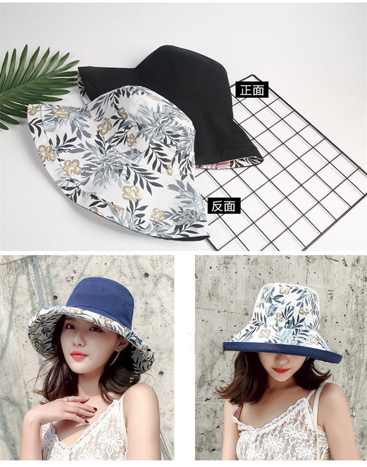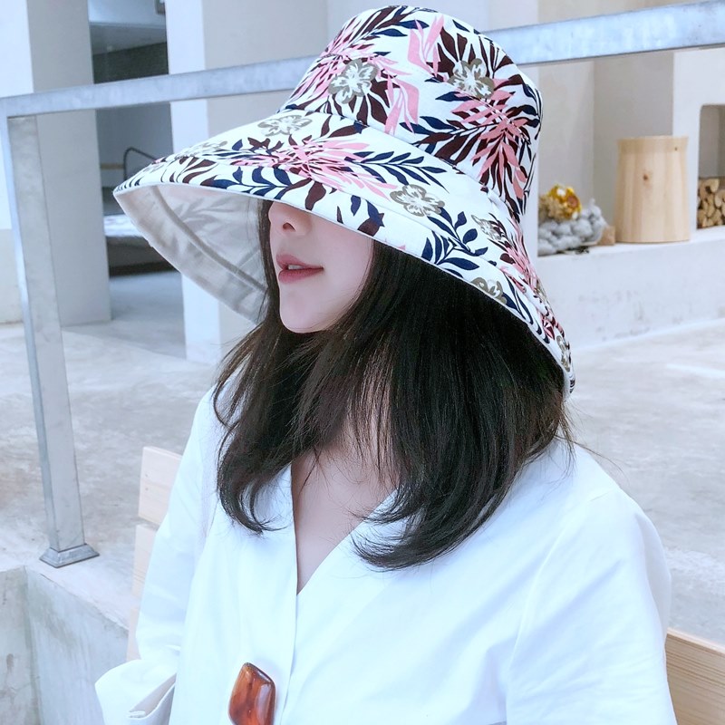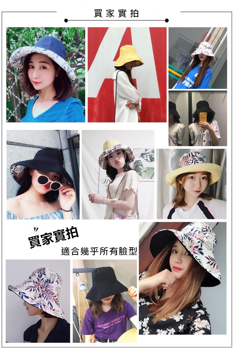 【印花雙面可戴】【大帽簷】【紫外線阻隔】【折疊好收納】超美日系雙面大帽簷純棉舒適透氣防曬漁夫帽