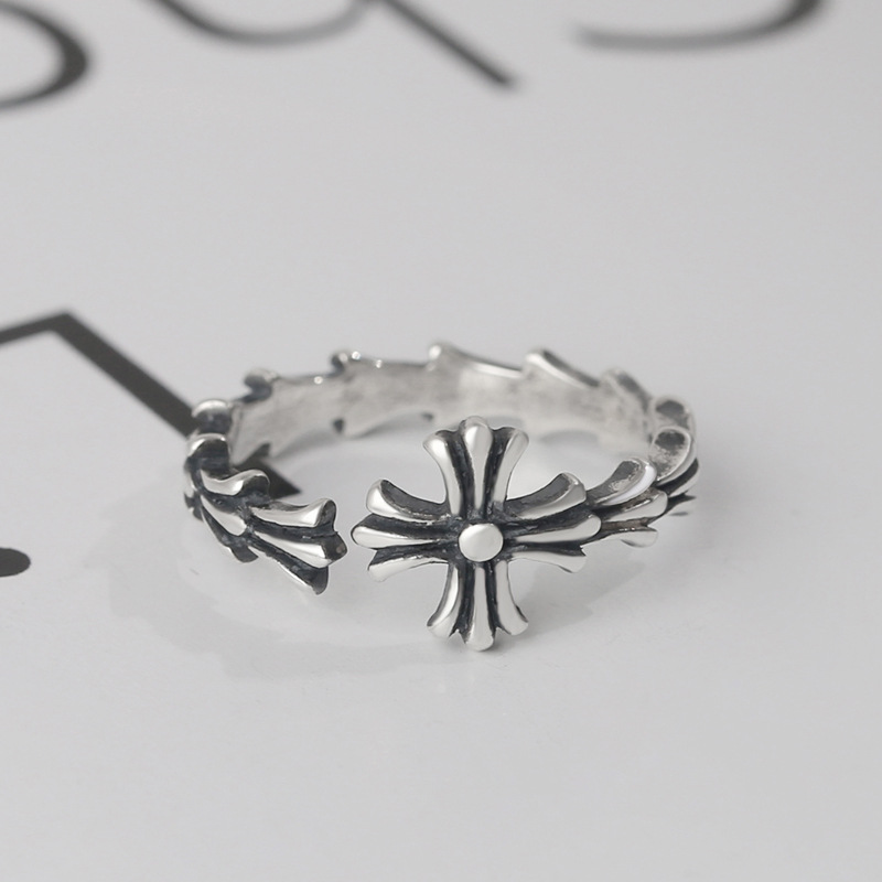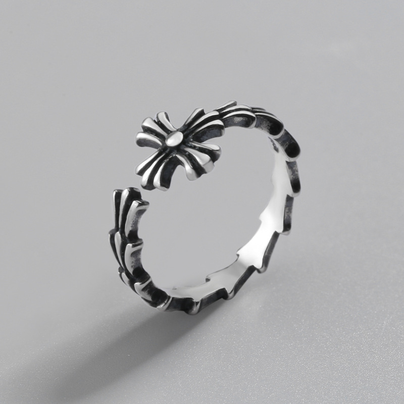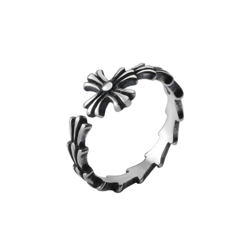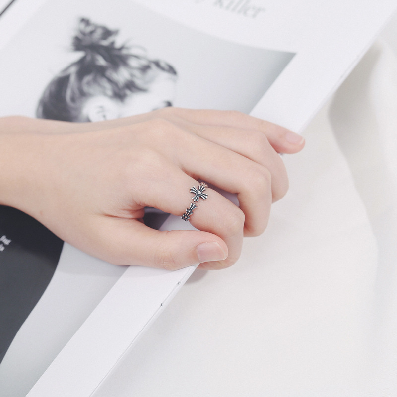 【復古十字花】【S925純銀】設計師款925純銀復古十字花水波紋開口戒指 (S925純銀 開口可調節)