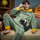 【超柔珊瑚絨】【連帽設計】韓版Q萌連帽設計超柔親膚珊瑚絨長絨秋冬居家刷毛男女居家服睡衣套組