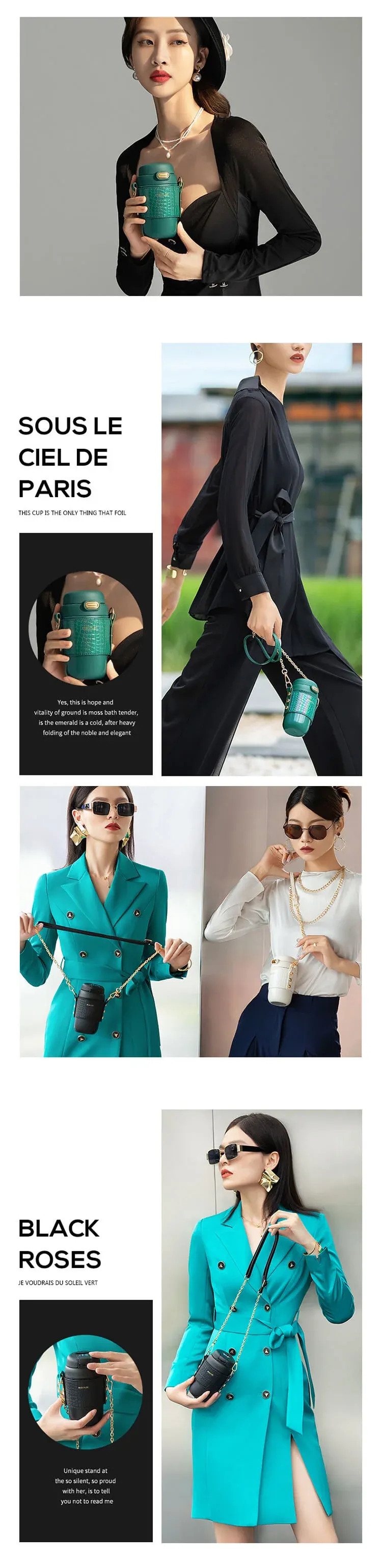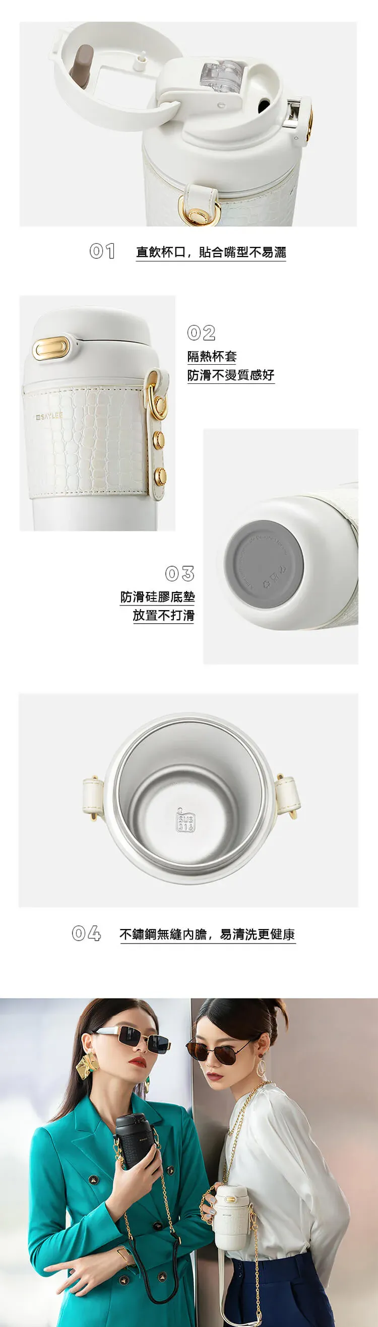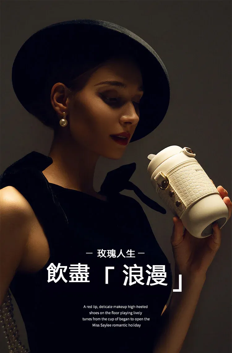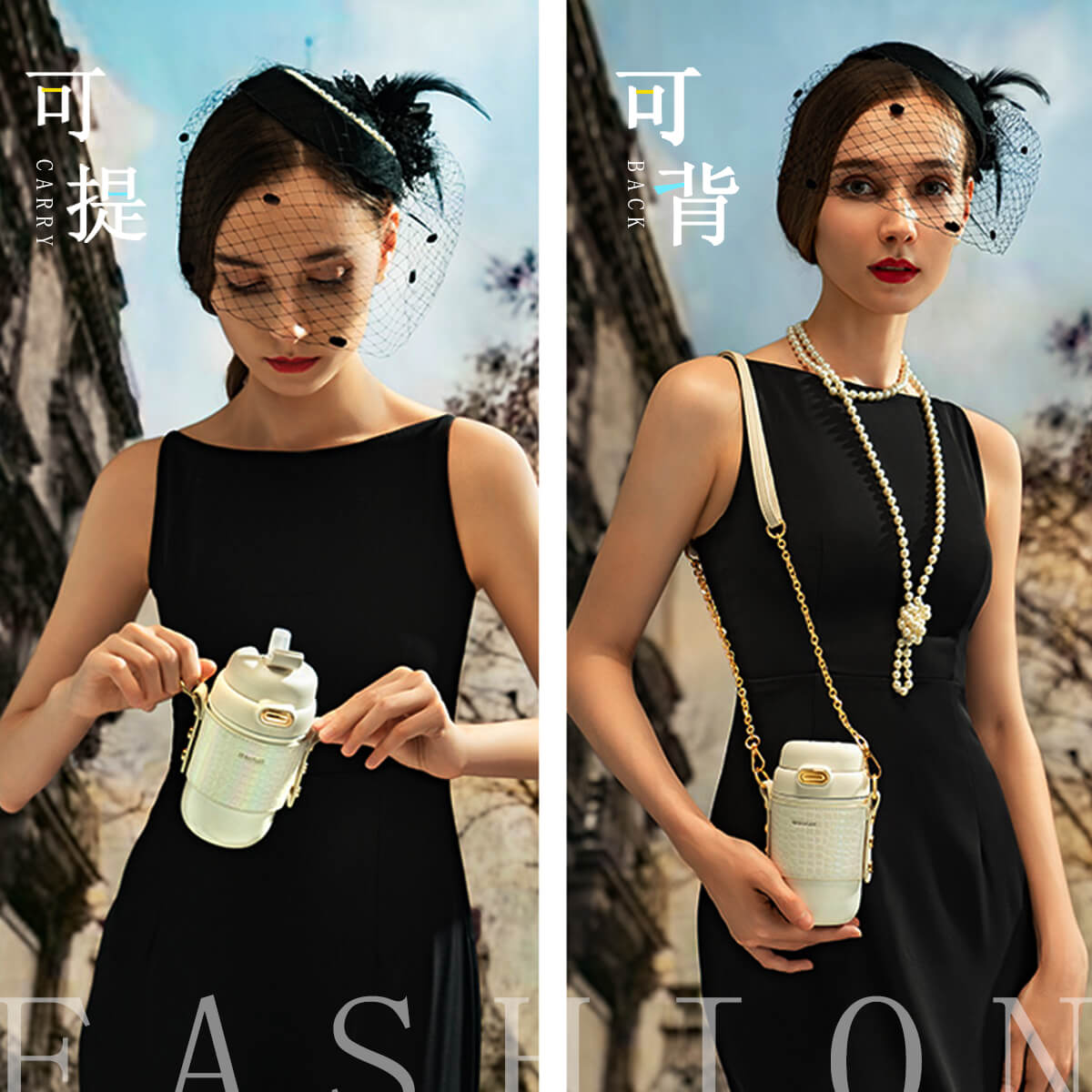 法式優雅保溫杯 | 316安全不鏽鋼內膽 | 直飲吸管兩用 | 超長保溫 | 高級法式鱷魚皮紋杯套雙層真空雙飲保溫杯保溫瓶