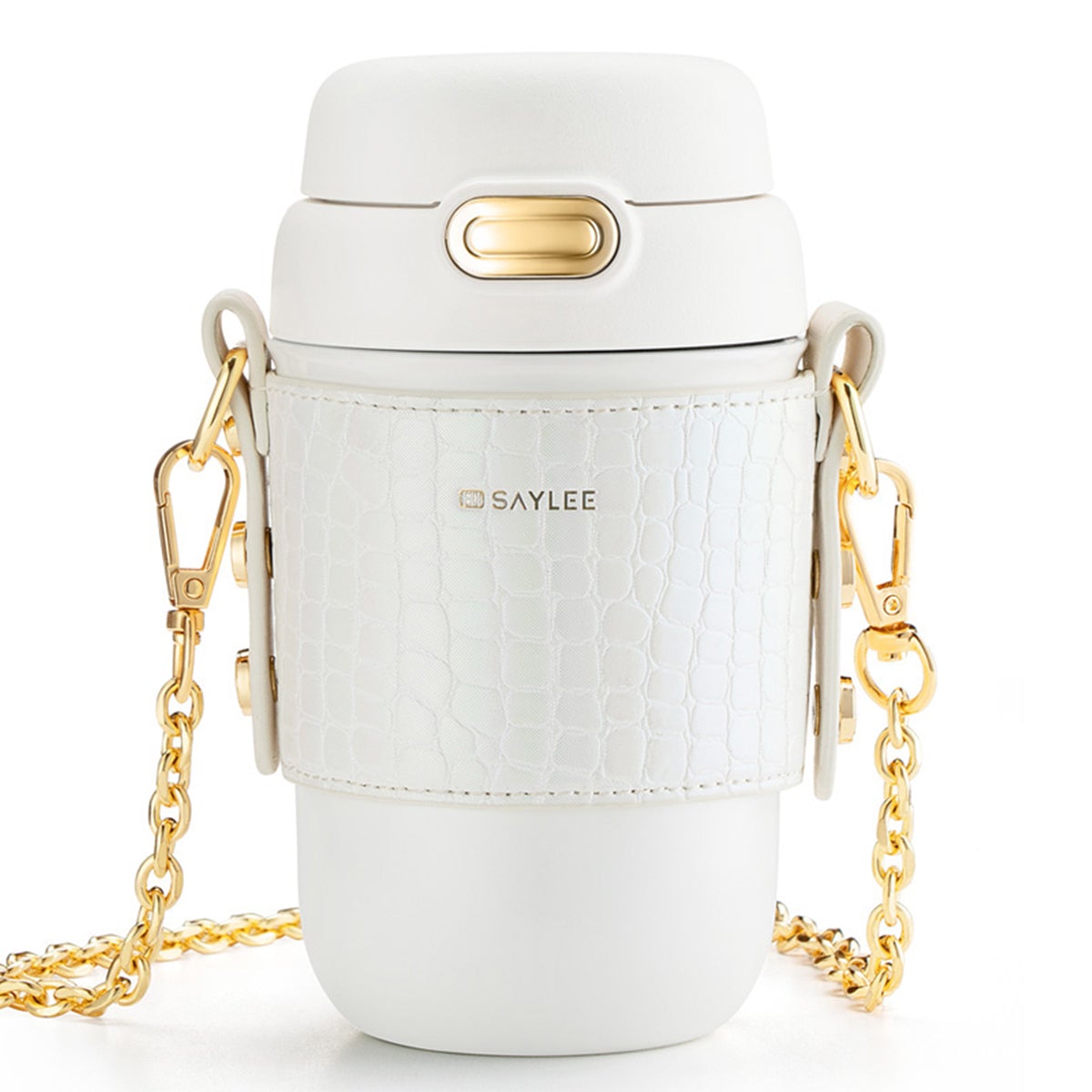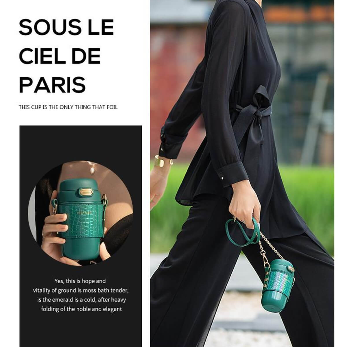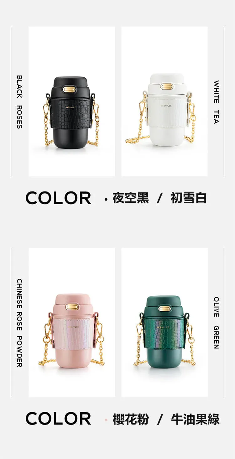 法式優雅保溫杯 | 316安全不鏽鋼內膽 | 直飲吸管兩用 | 超長保溫 | 高級法式鱷魚皮紋杯套雙層真空雙飲保溫杯保溫瓶