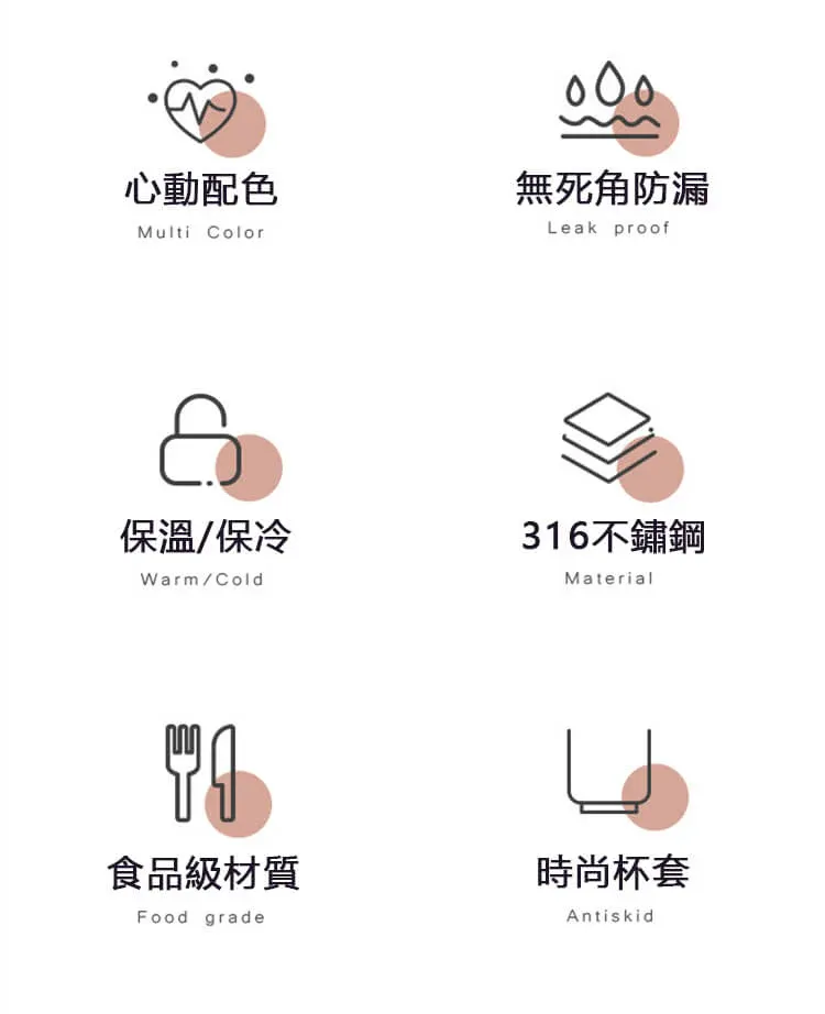 —即保持杯內液體的溫度不會過快流失, 又保證不會燙手, 這樣方便攜帶和飲用