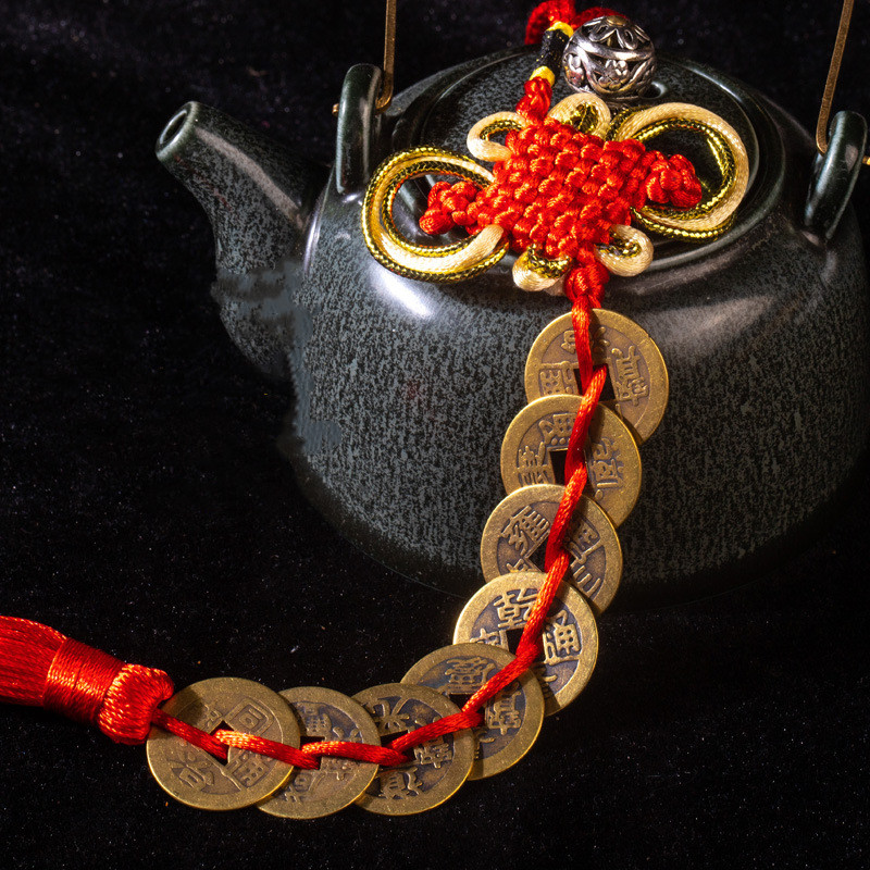 【買一送三】【八方來財八帝錢】【純銅鑄造】【手工金紅吉祥繩結】平安開運安宅化煞手工金紅吉祥結純銅古幣八帝錢