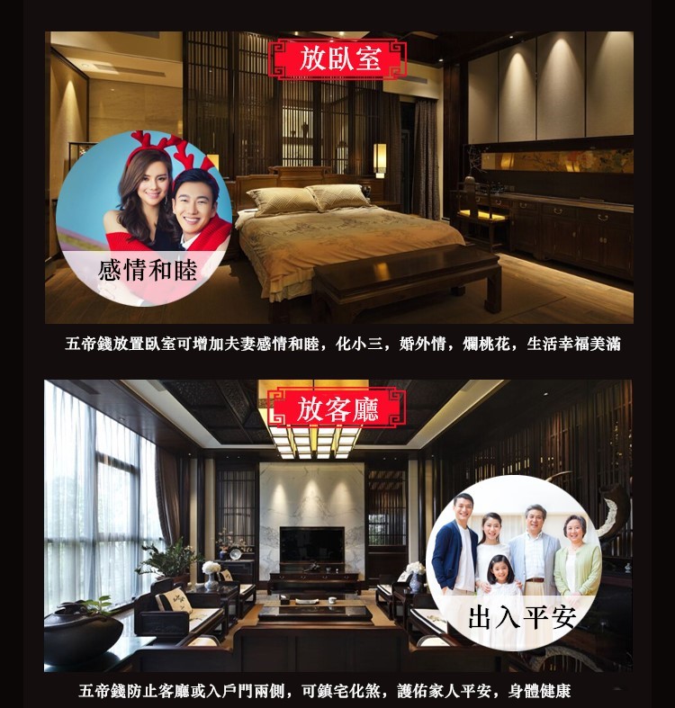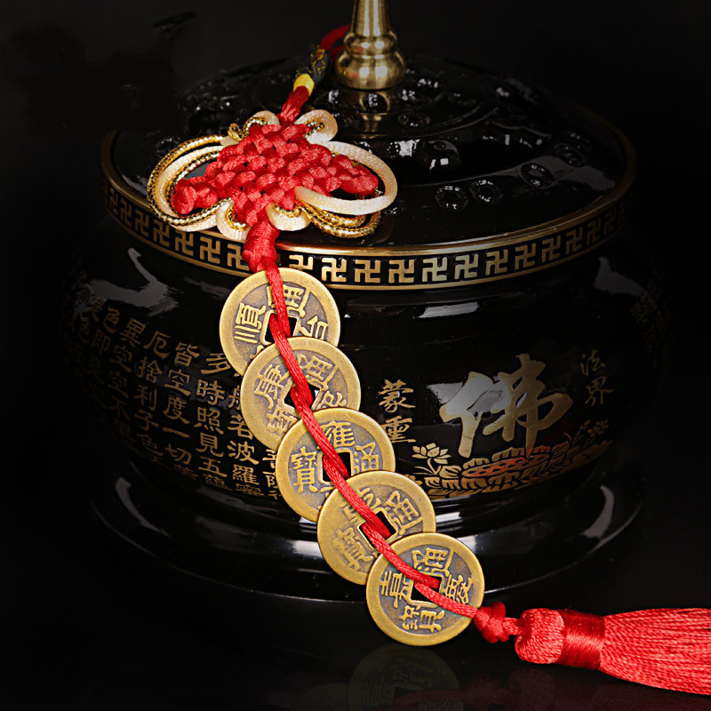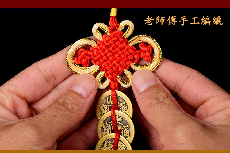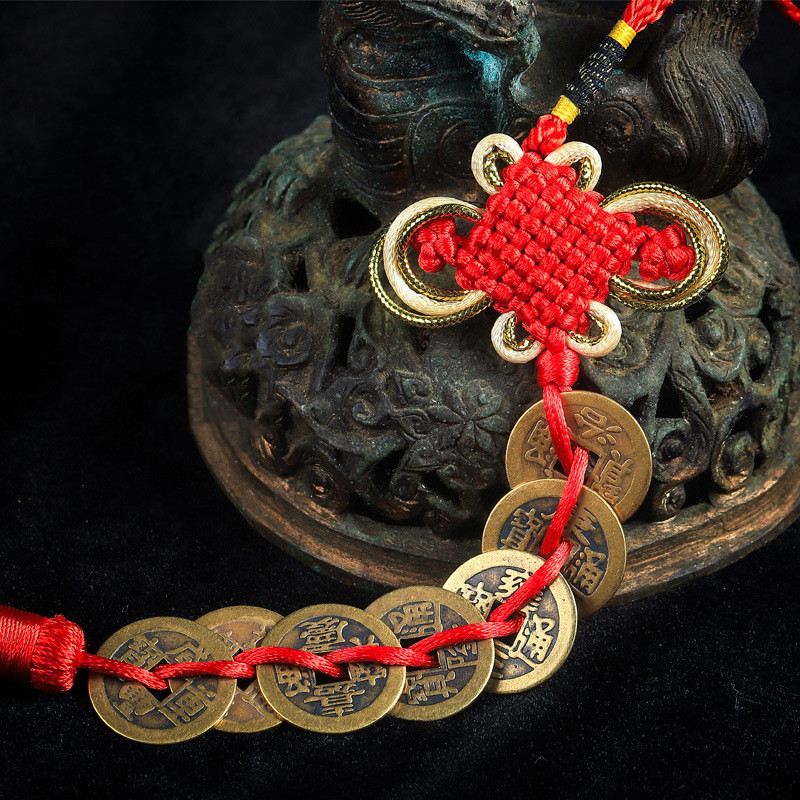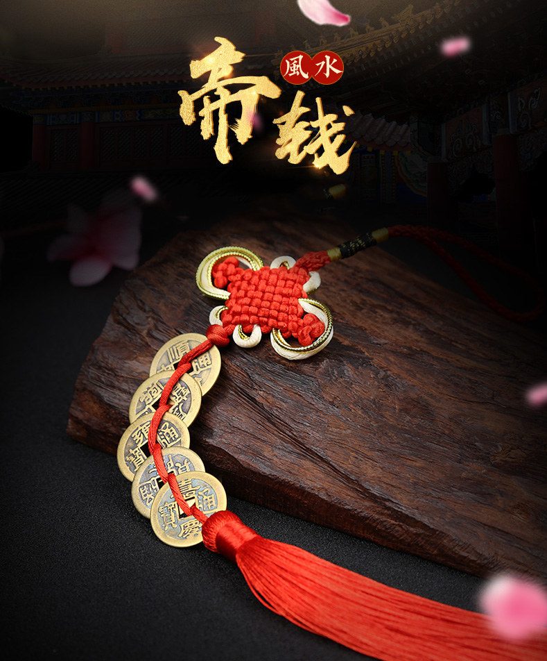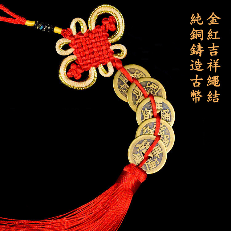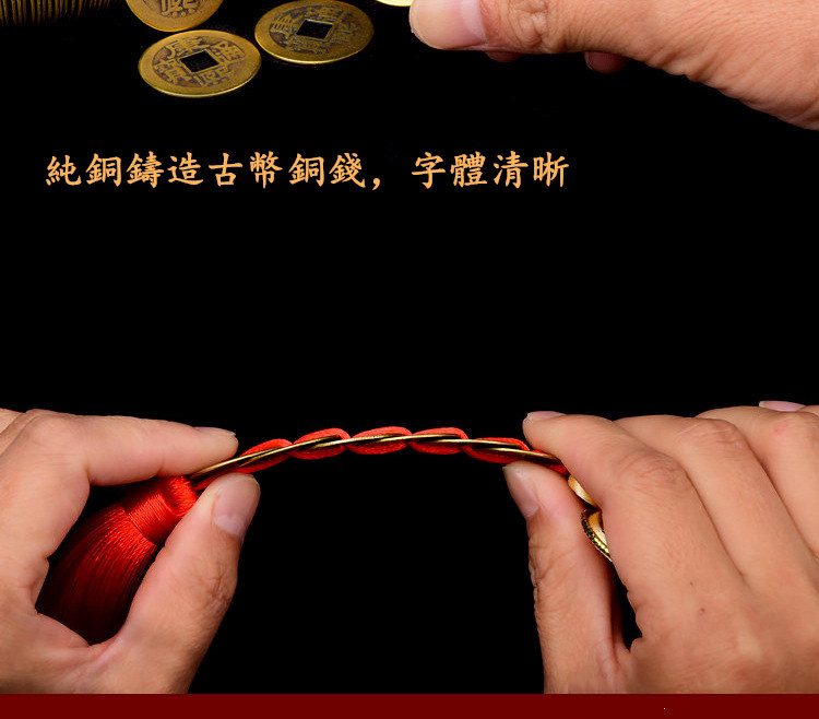 【買一送三】【七星高照七帝錢】【純銅鑄造】【手工金紅吉祥繩結】平安開運安宅化煞手工金紅吉祥結純銅古幣七帝錢