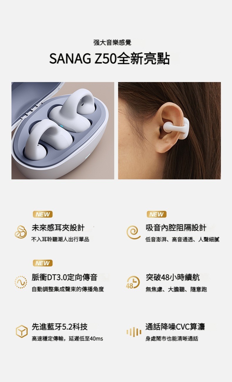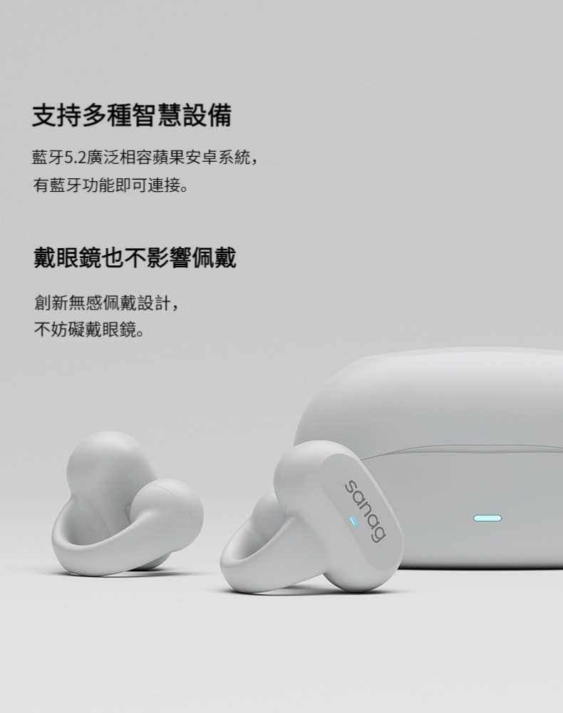 耳夾式360°全景音耳機 | DT3.0定向傳音 | 開放聽感不漏音 | 全息原聲三頻均衡 | 未來感耳夾 | 正品英國SANAG健康骨傳導不入耳真無線藍牙耳機