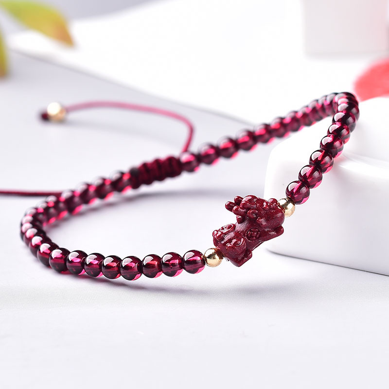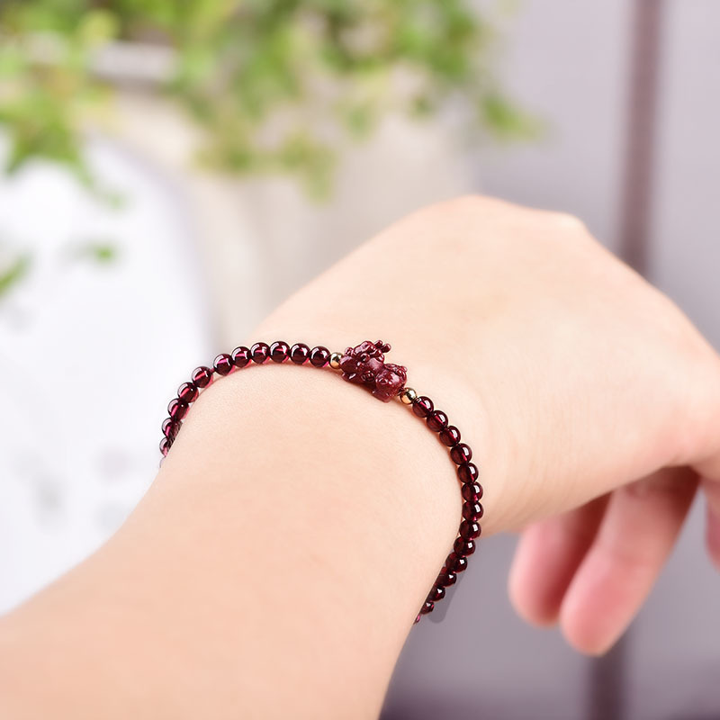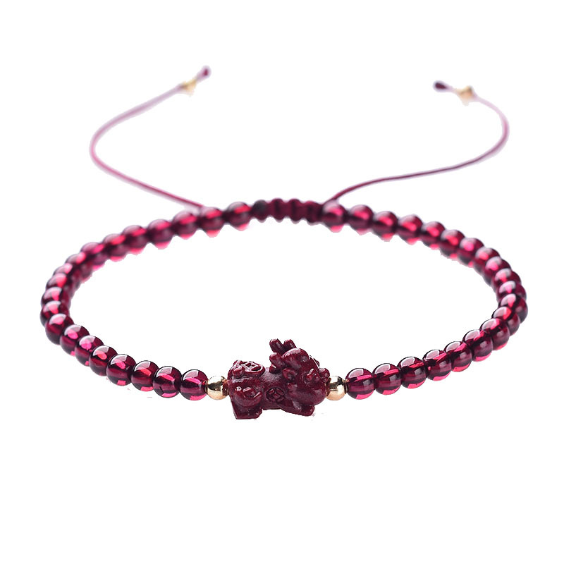 【紫金硃砂萌貔貅】【7A收藏級酒紅石榴石】名貴天然收藏級石榴石配帝王紫金硃砂貔貅手鍊女開運招財手鍊