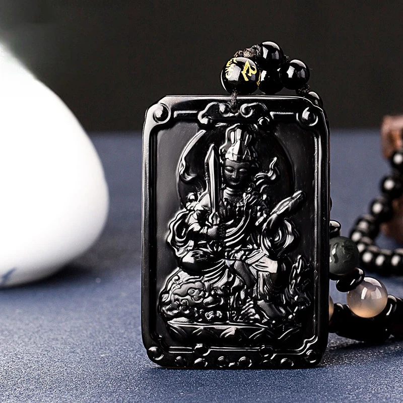 文殊菩薩 | 生肖守護 | 法相莊嚴 | 十二生肖專屬本命佛項鍊 | 天然冰島寶石級黑曜石 | 大師級精細立體微雕 | 2025生肖守護神本命佛黑曜石項鍊