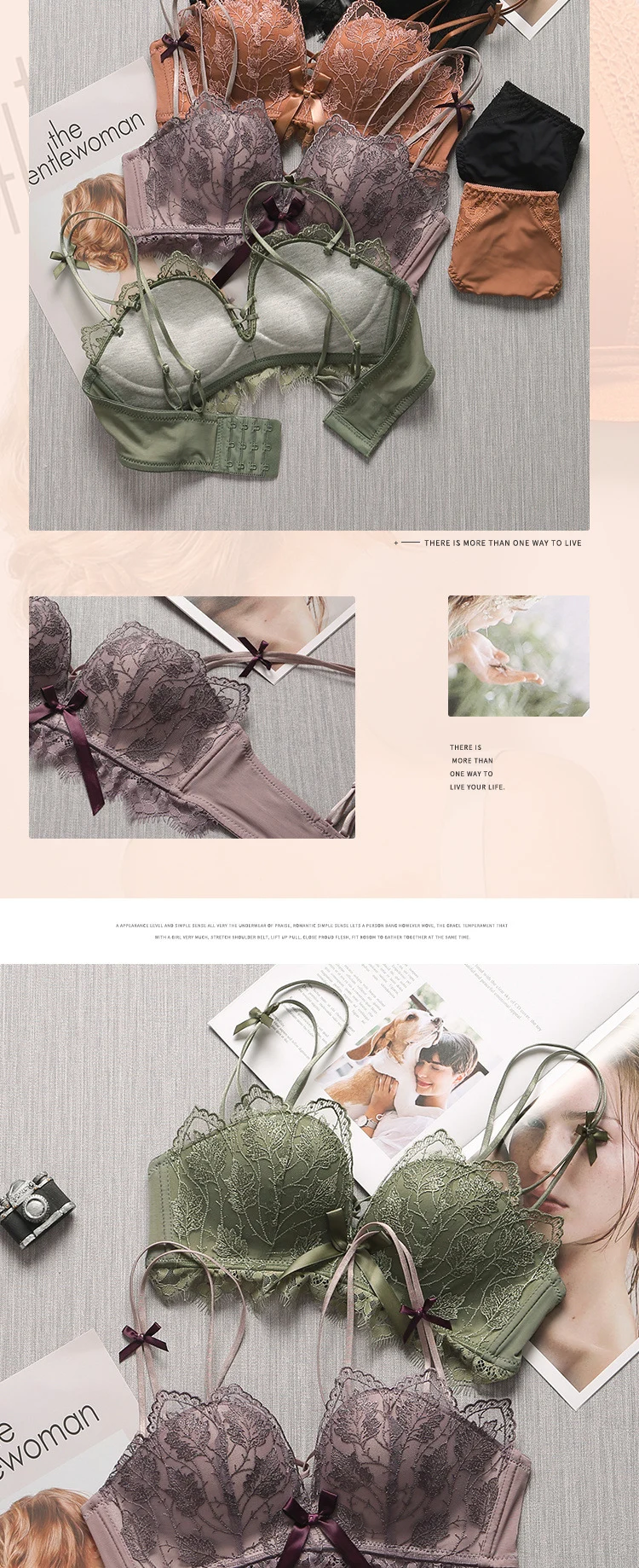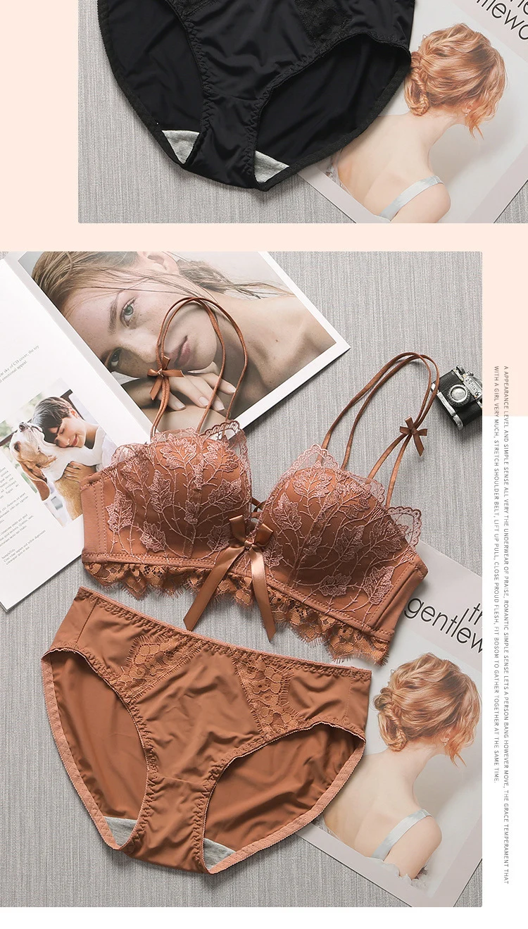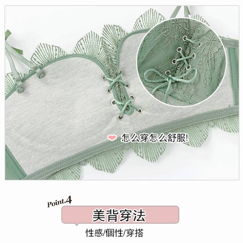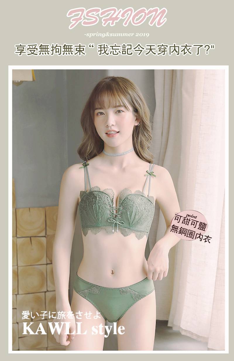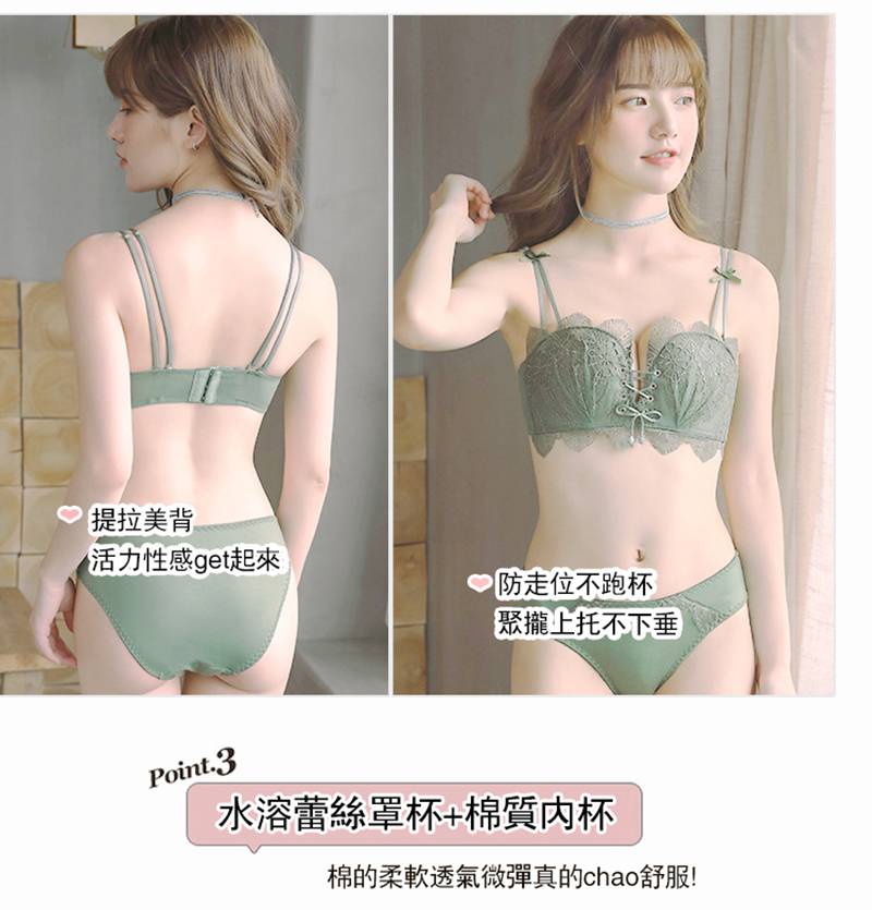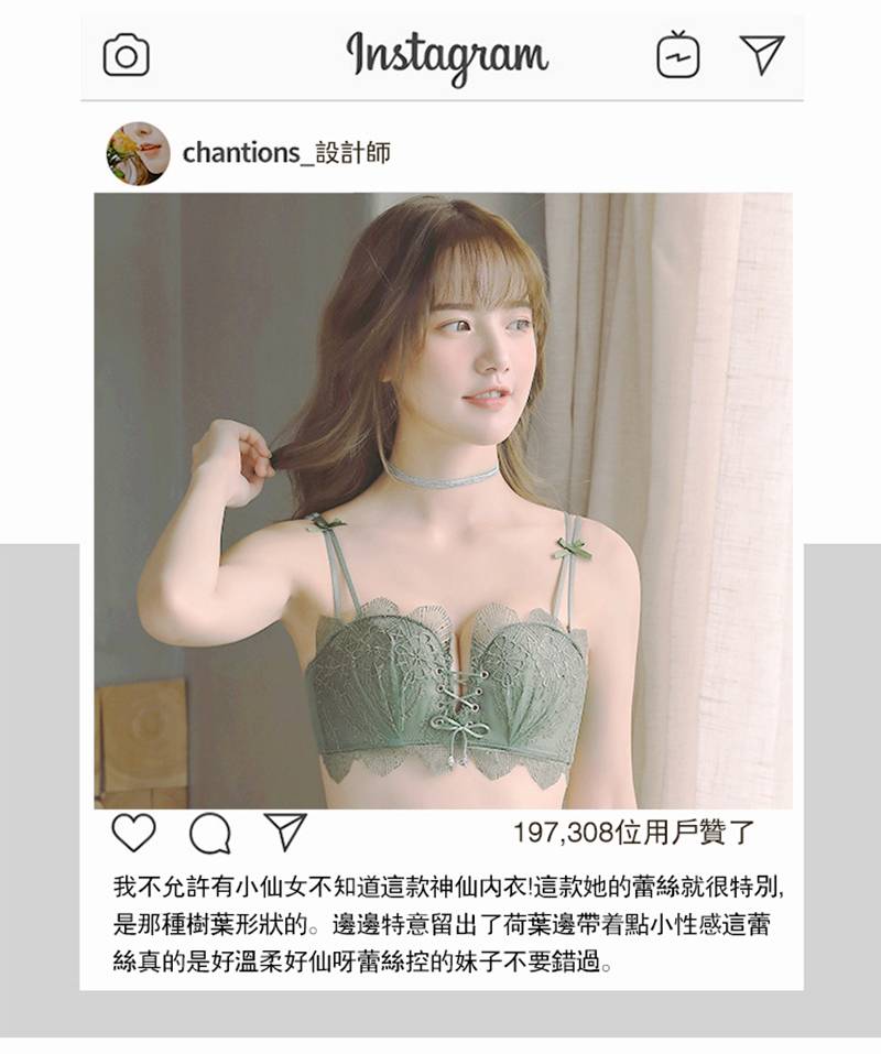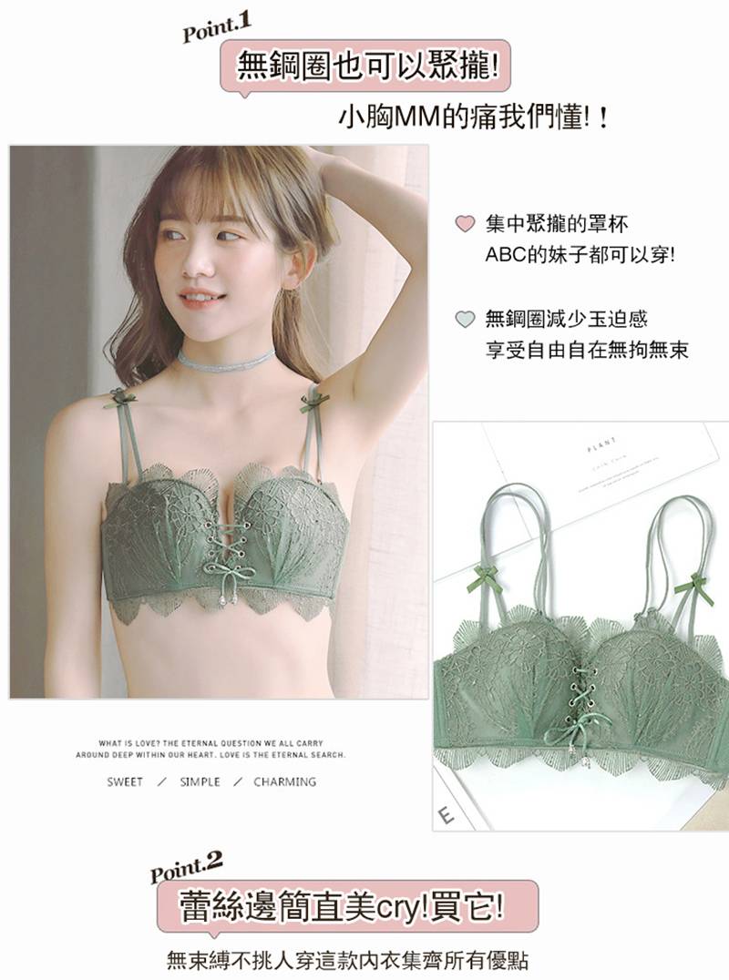超值四入內衣褲組 | 可甜可鹽清新性感內衣褲組 | 上托超顯聚攏 | 樹葉花邊蕾絲 | 無鋼圈舒適內杯 | 日系文藝聚攏上托無鋼圈蕾絲內衣褲組