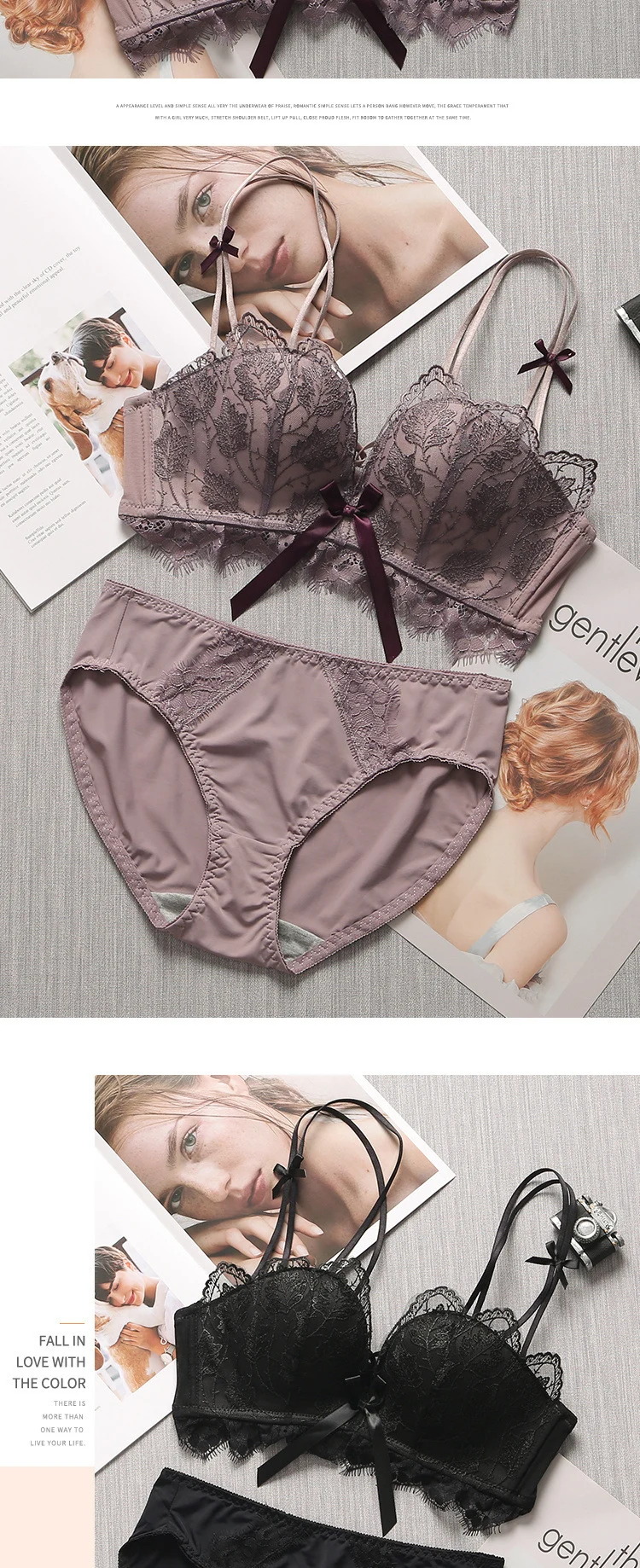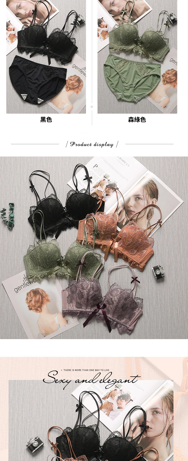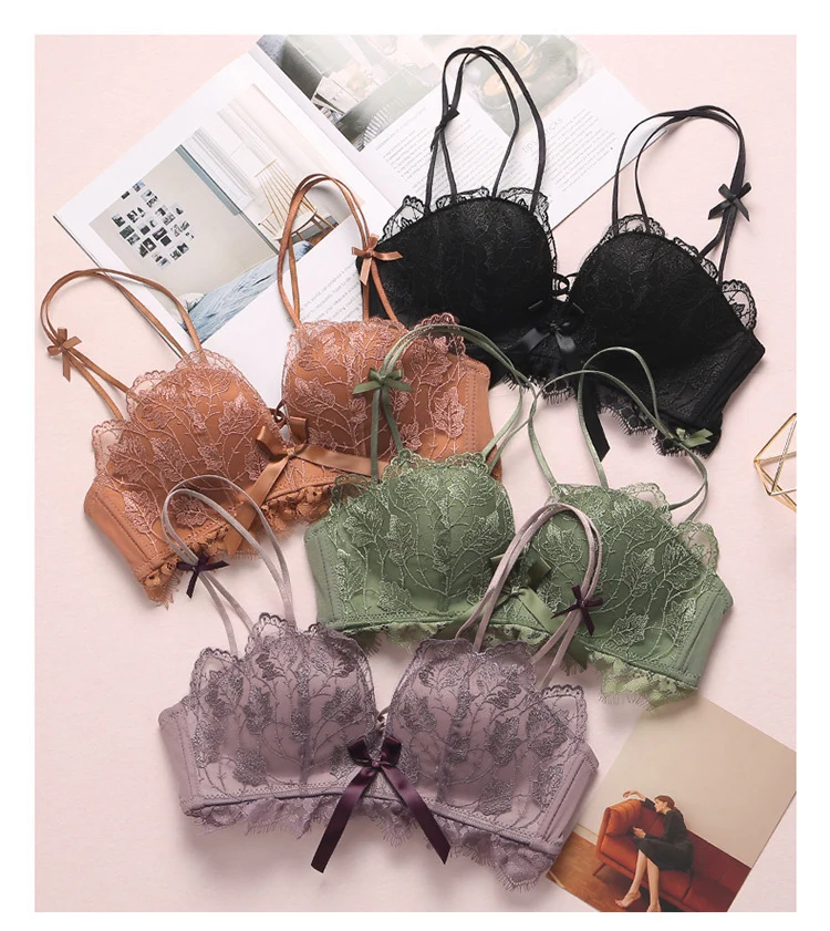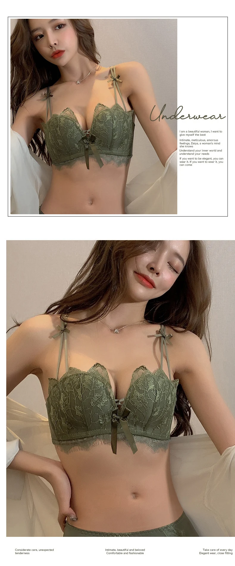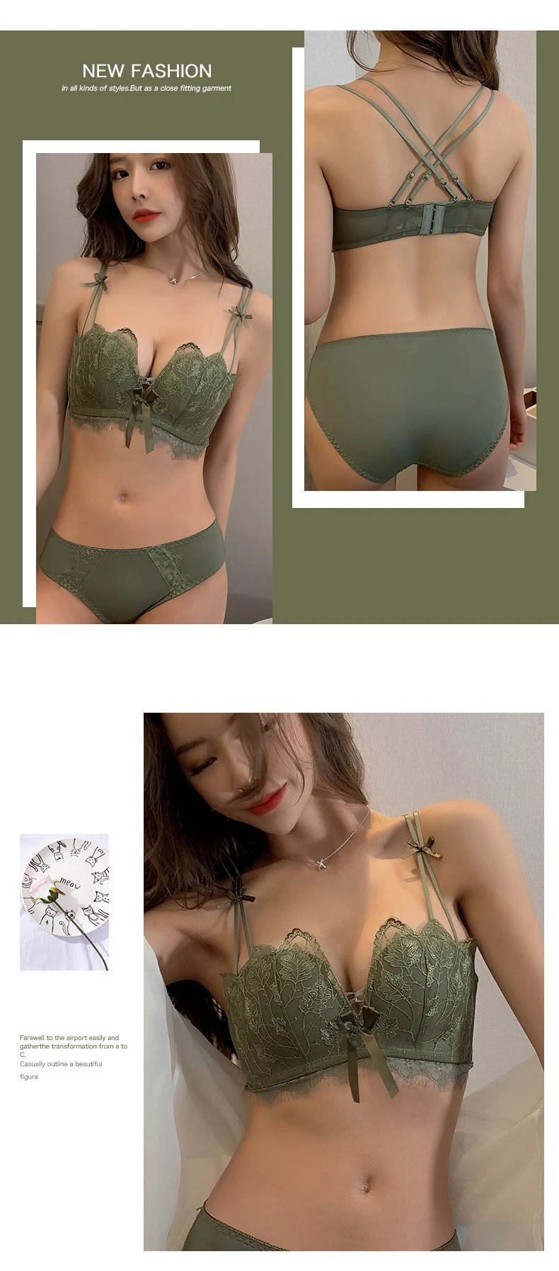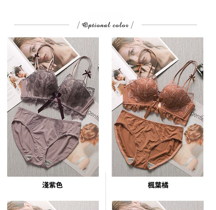 超值四入內衣褲組 | 可甜可鹽清新性感內衣褲組 | 上托超顯聚攏 | 樹葉花邊蕾絲 | 無鋼圈舒適內杯 | 日系文藝聚攏上托無鋼圈蕾絲內衣褲組
