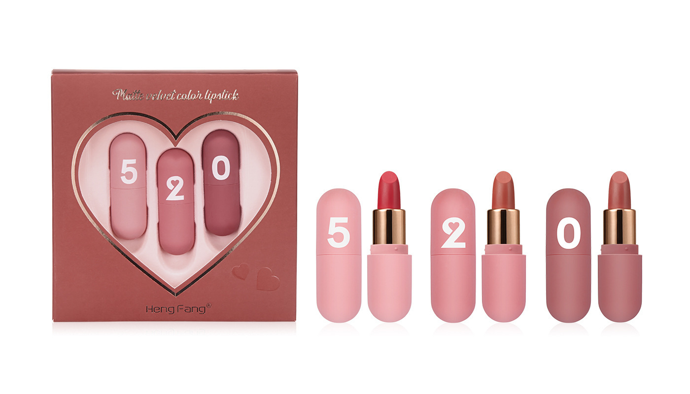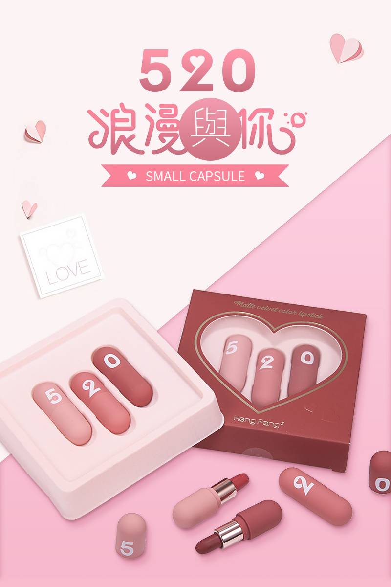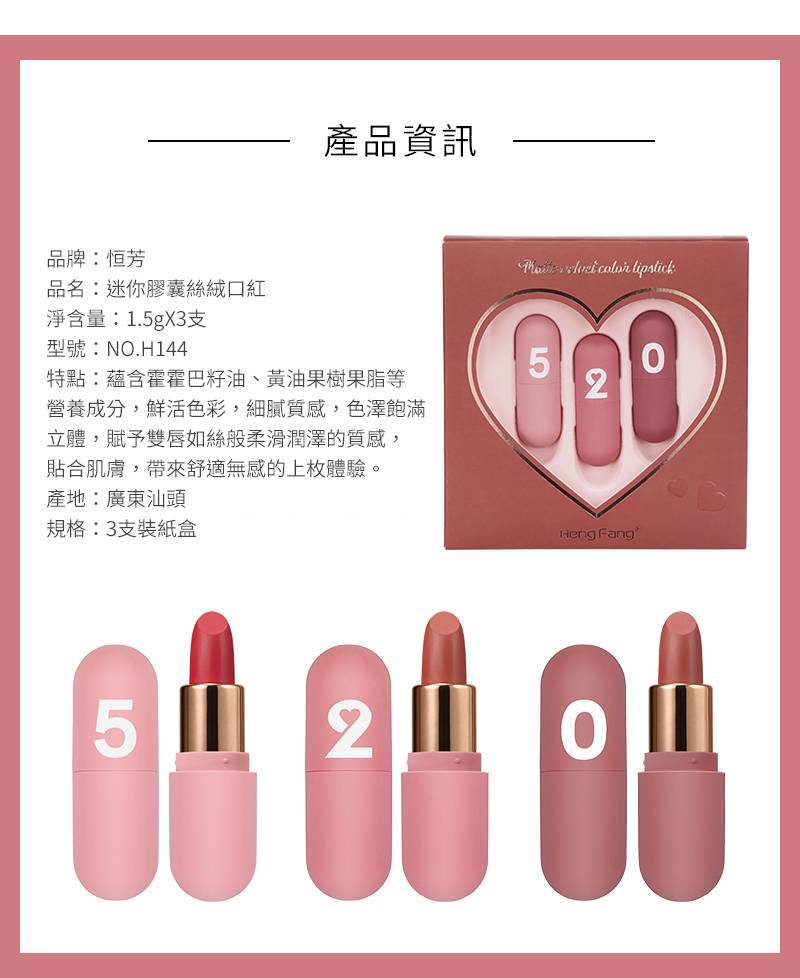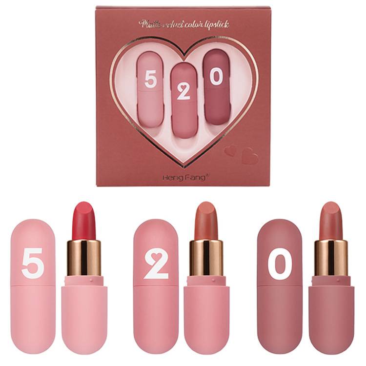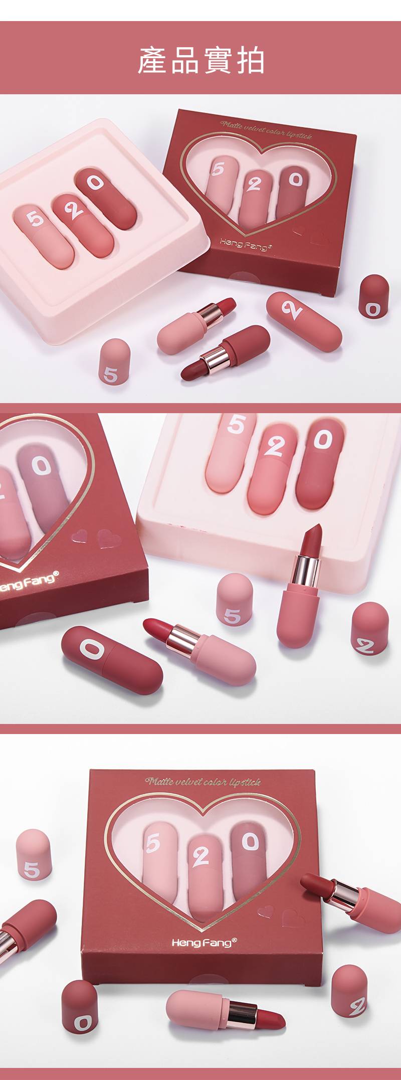 買一盒送一盒 | 520迷你膠囊絲絨霧面口紅 | 三支套組 | 天然植物精油滋潤 | 超棒送女生送閨蜜禮物高檔迷你絲絨膠囊口紅三支禮盒套組