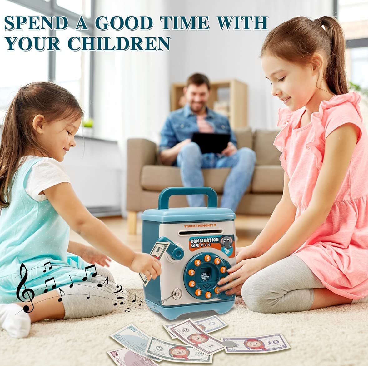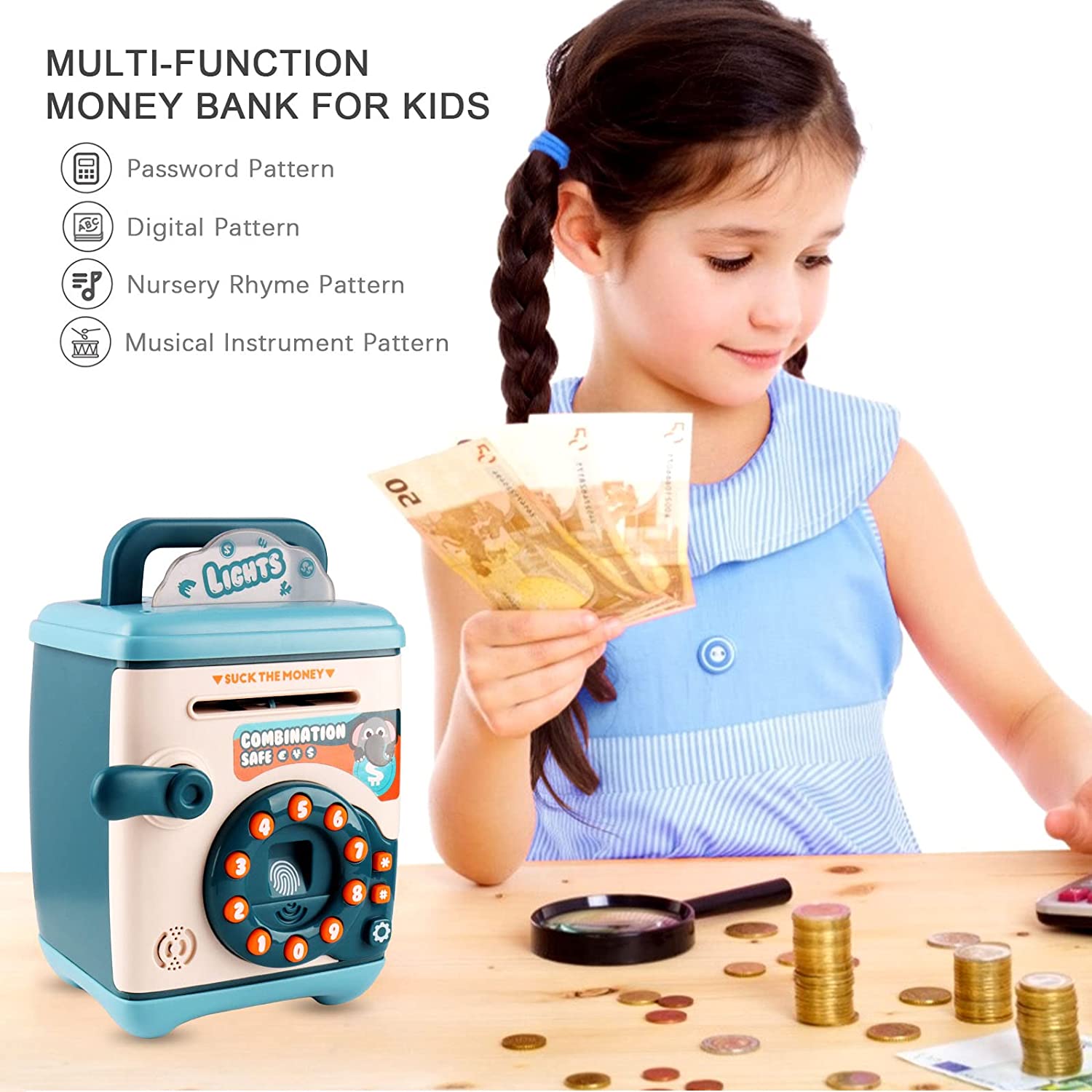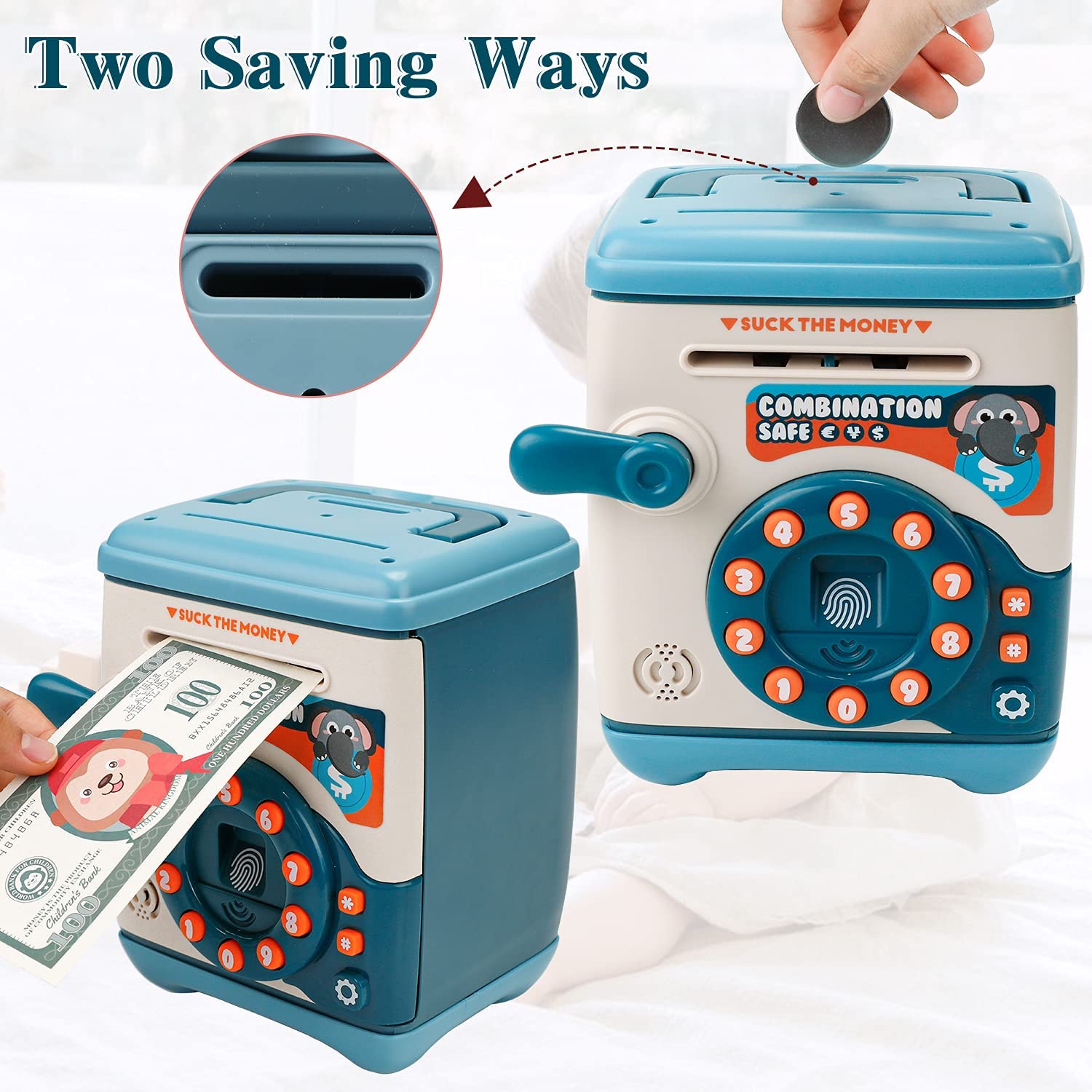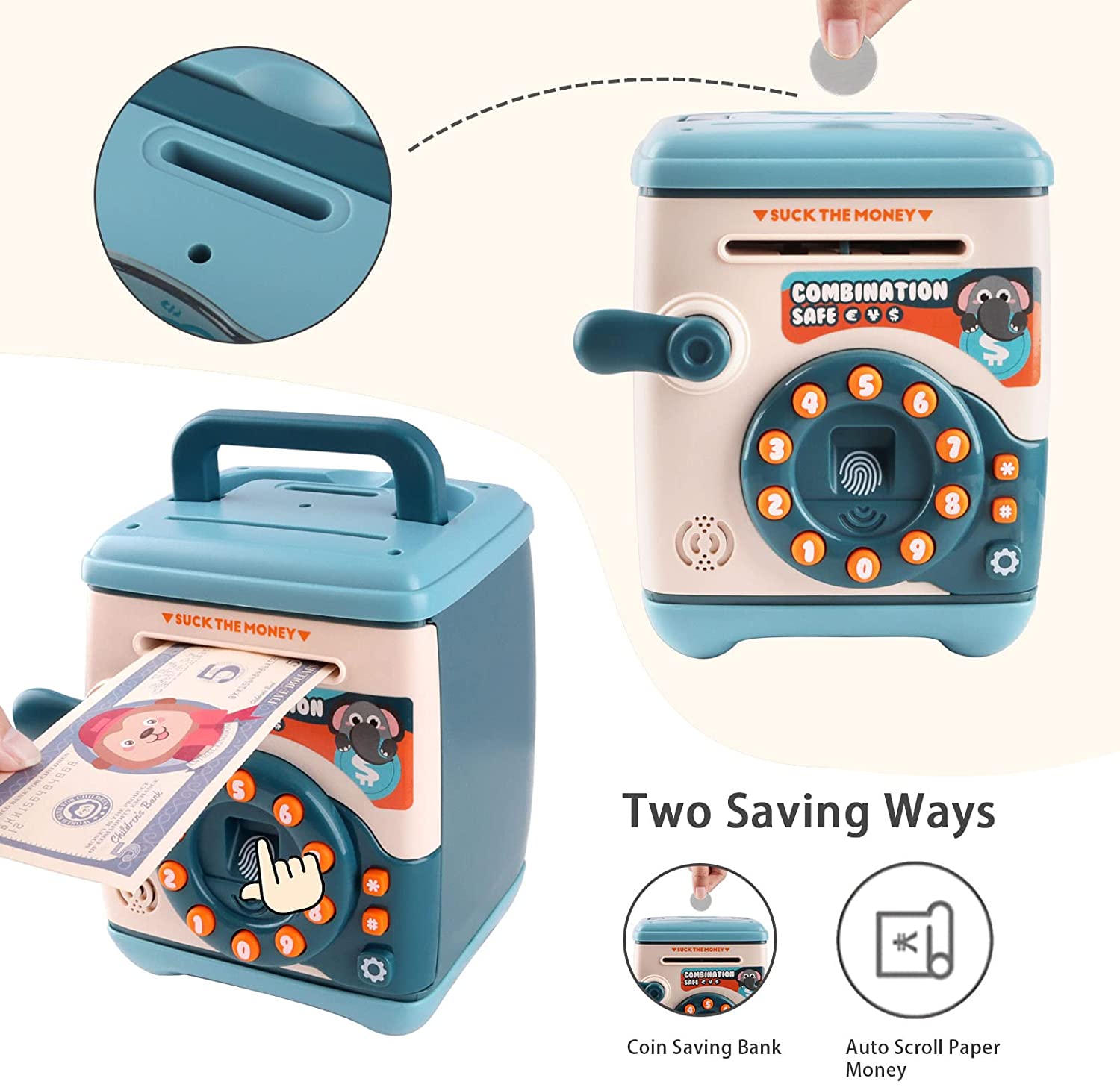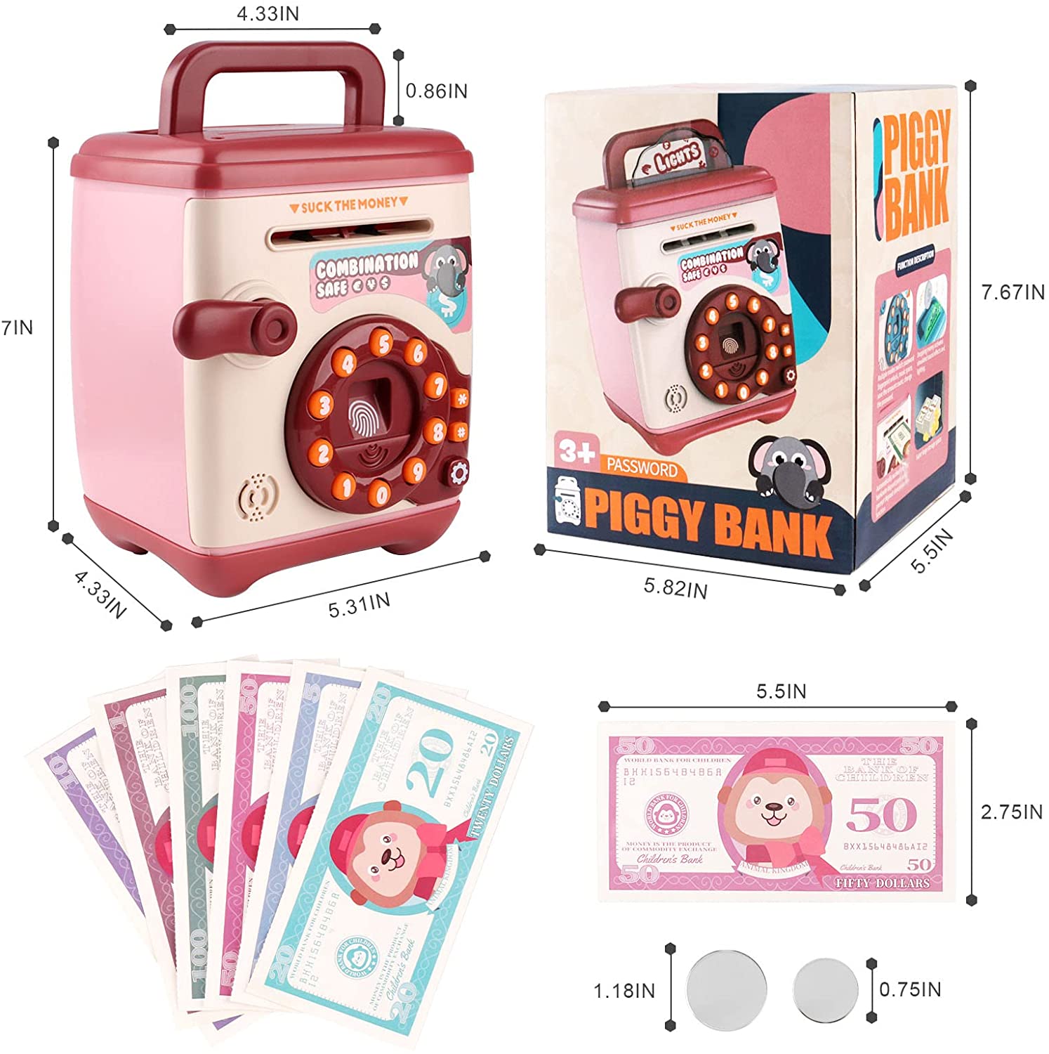 【模擬ATM機自動存錢筒】【密碼取錢】【自動捲鈔】歐美熱銷密碼設定自動捲鈔音樂數位電子ATM模擬自動硬幣鈔票存錢筒