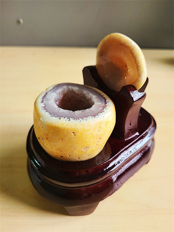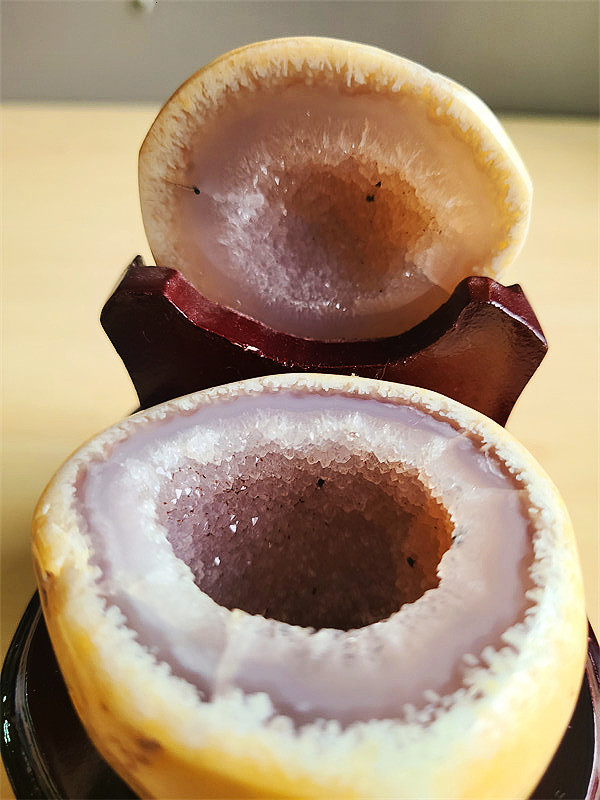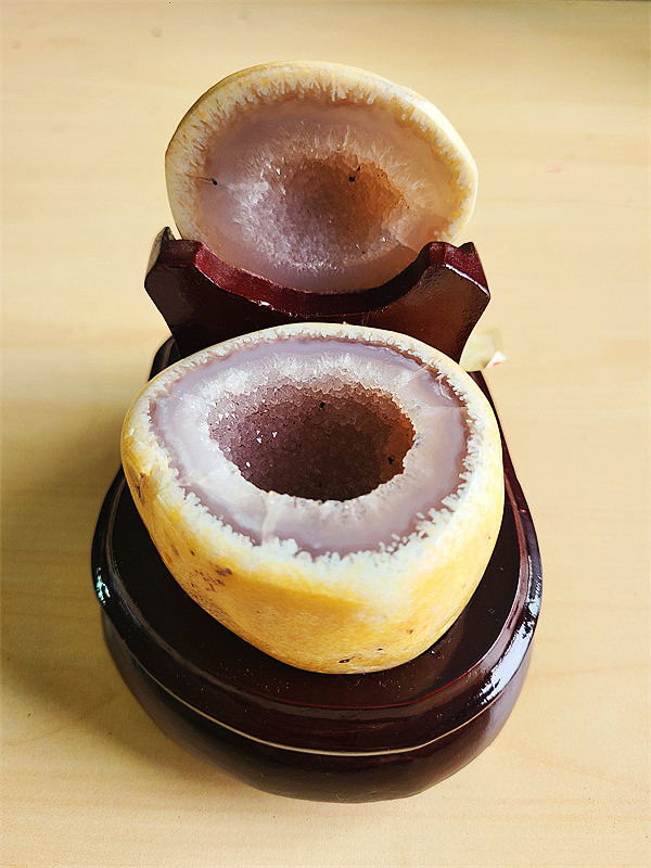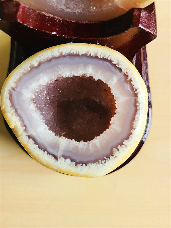 極品深洞聚財聚福 | 鎮宅護持 | 人間極品完美級 | 天然烏拉圭聚寶盆 | 口大洞深 | 細密閃耀晶砂 | 人間極品滿肉玉潤實木底座天然瑪瑙聚寶盆擺件