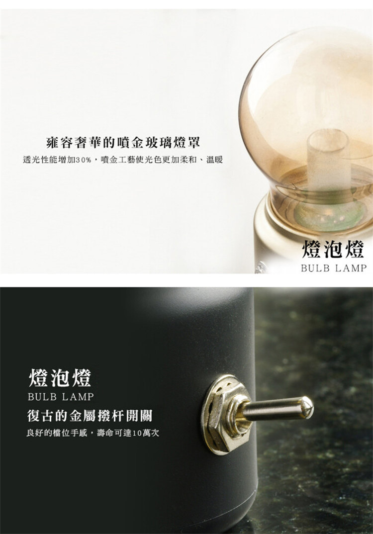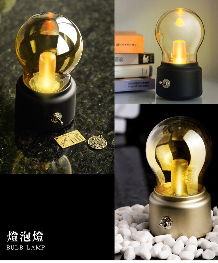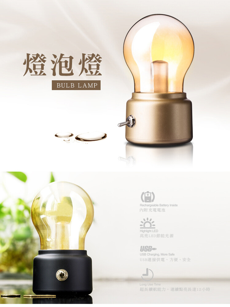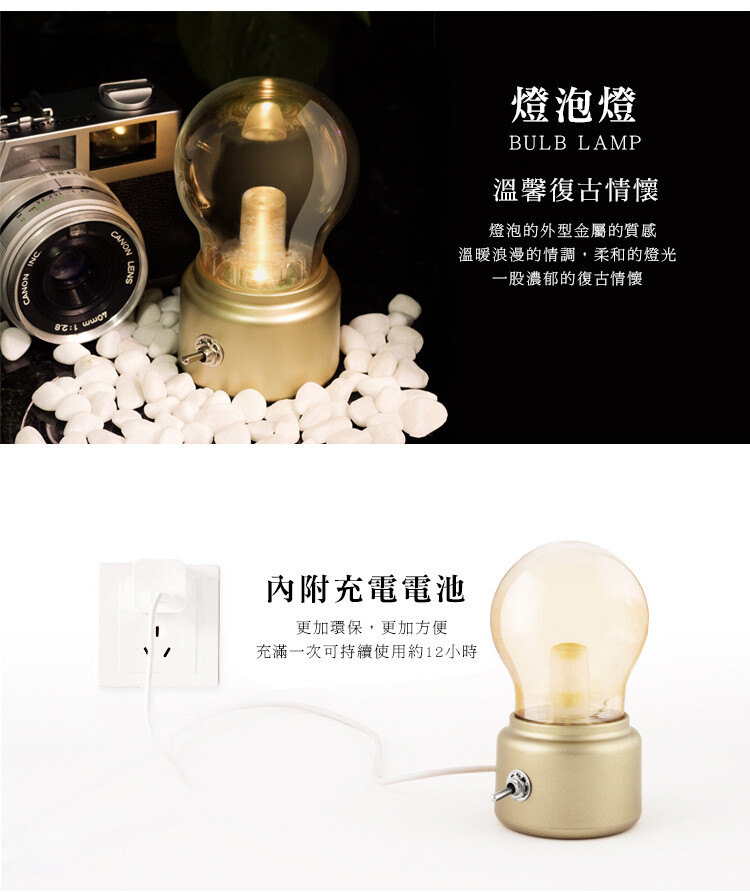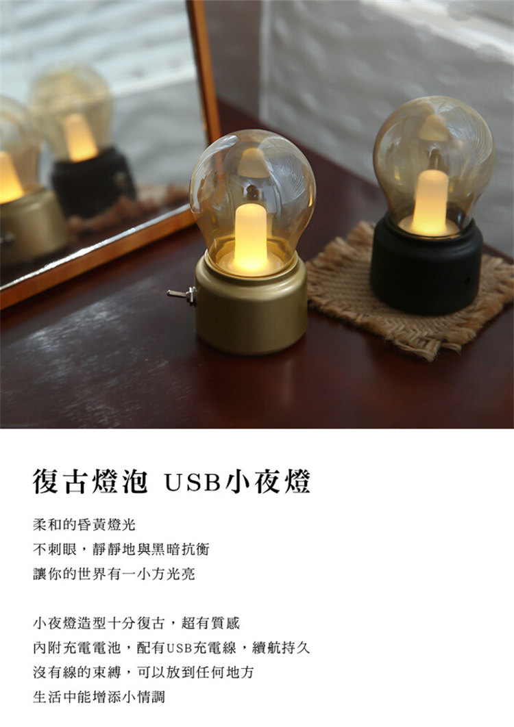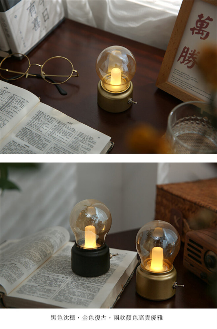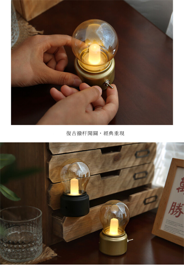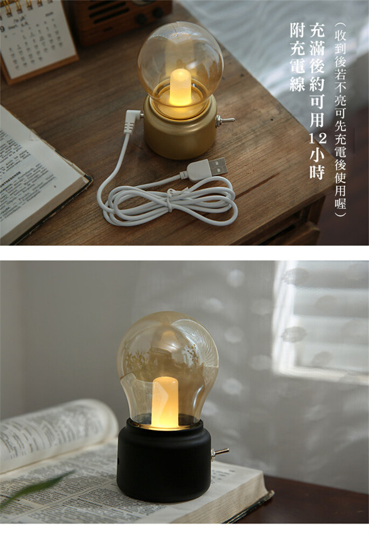【無線迷你復古燈泡燈】【LED小夜燈】【30小時續航】創意實用禮物原創設計工業風復古燈泡造型充電式LED小夜燈桌燈