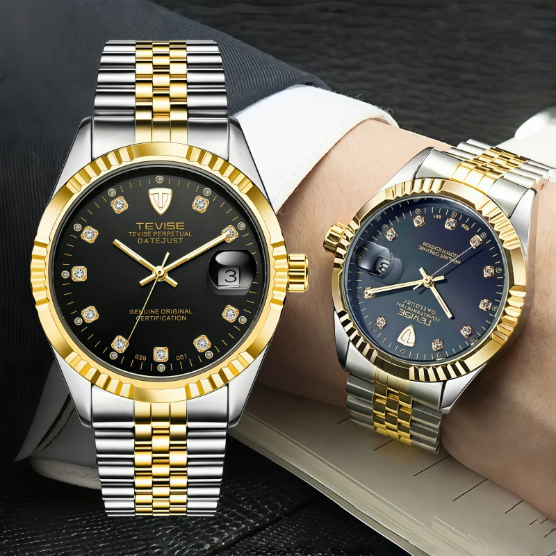 男錶・機械・時光知味 | 全自動機械機芯 | 鑲鑽刻度 | 實心鋼帶 | 水滴日曆 | 高清夜光 | 30米防水 | 正品瑞士TEVISE經典商務男士機械腕錶