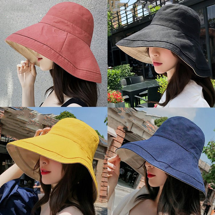 【雙面可戴】【紫外線阻隔】【修飾臉型】【超大帽簷】日系純色雙面可戴修飾臉型大帽簷防曬漁夫帽