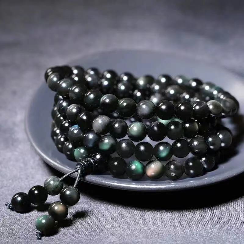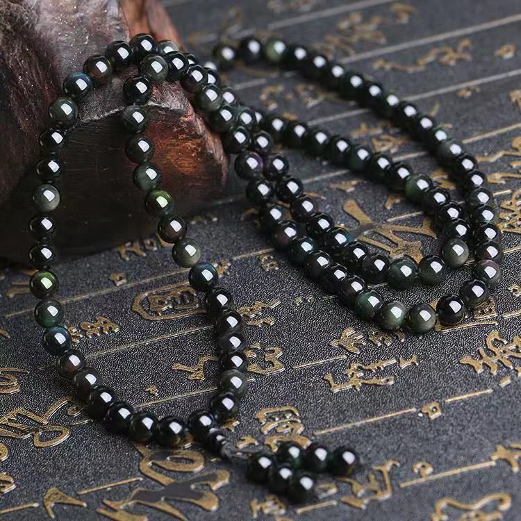 天然彩虹黑曜石佛珠念珠手串 | 108顆多圈 | 開運招財氣質美好108顆天然彩眼黑曜石多圈男女佛珠念珠手鍊手串
