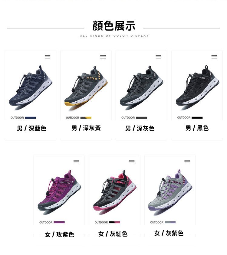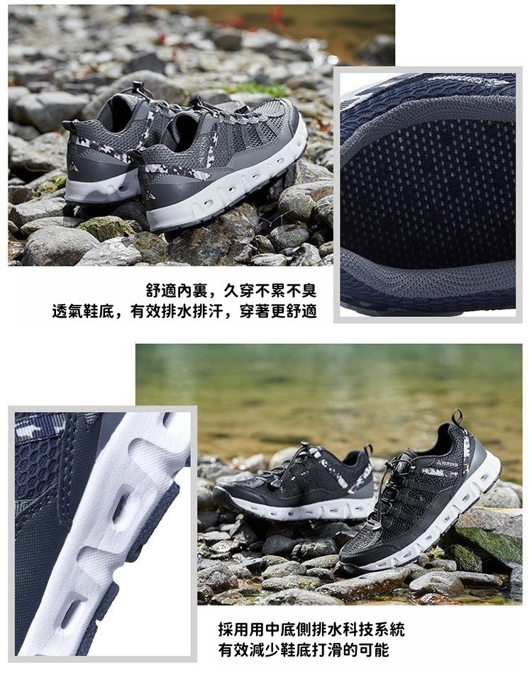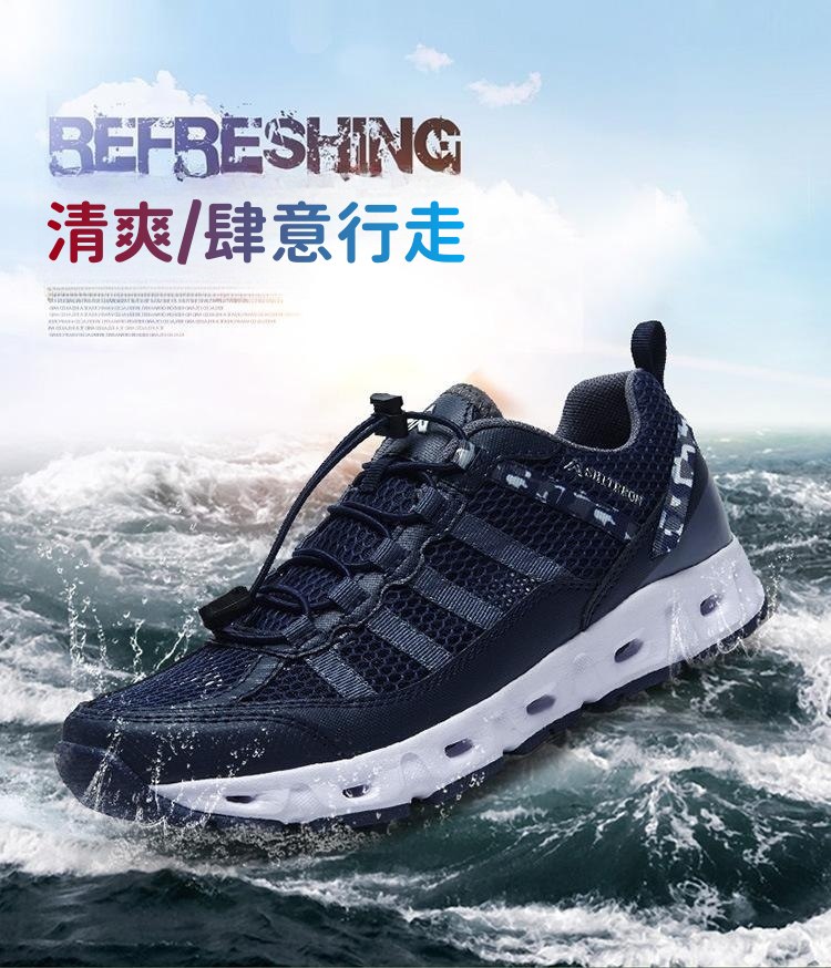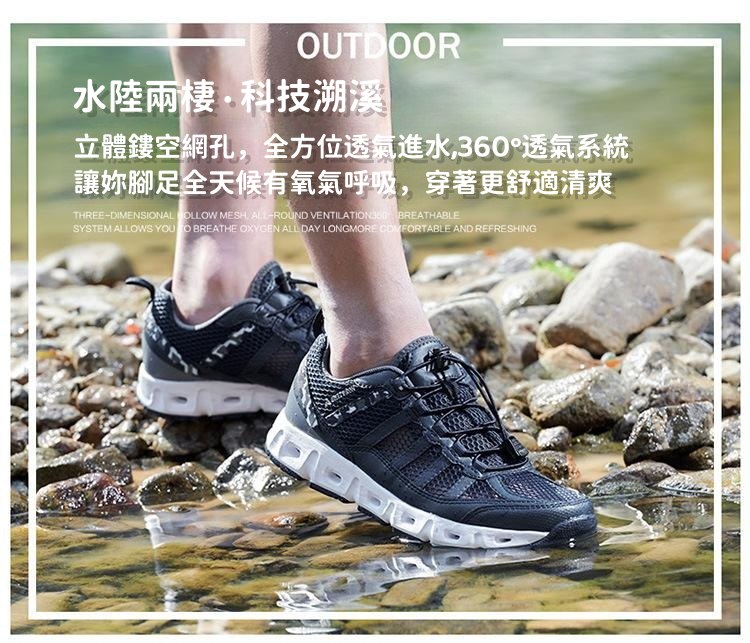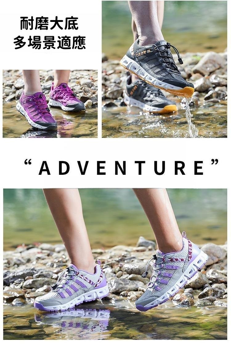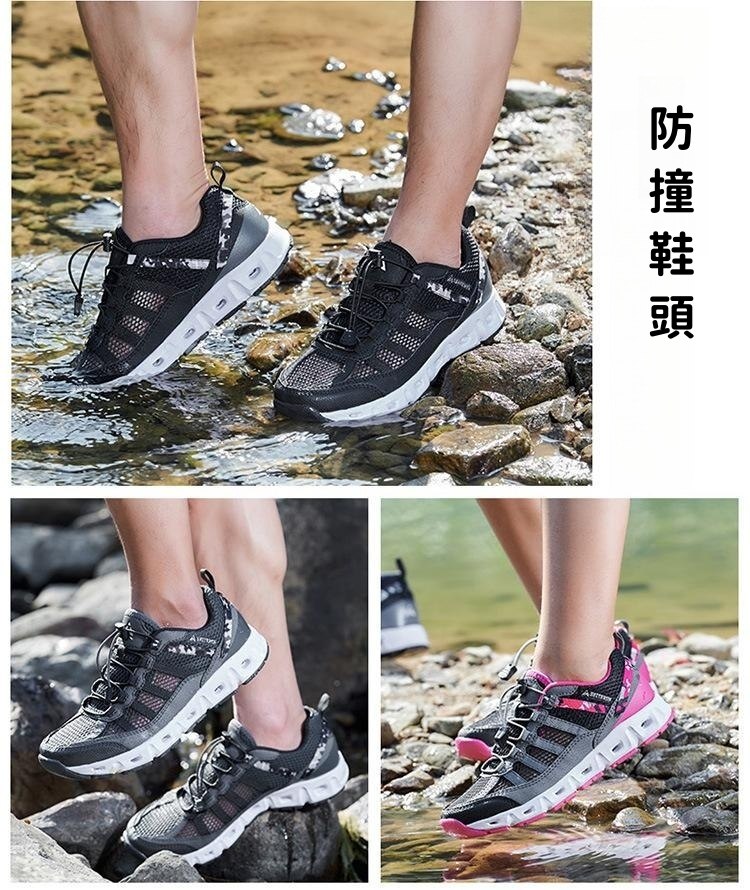 水陸兩穿肆意行走 | 側排水防堵系統 | 防撞鞋頭 | 耐水解奈米透氣鞋面 | 瞬時易拉鞋口 | 濕地防滑仿生大底 | SHITRRON進階男女戶外徒步溯溪鞋
