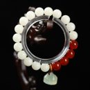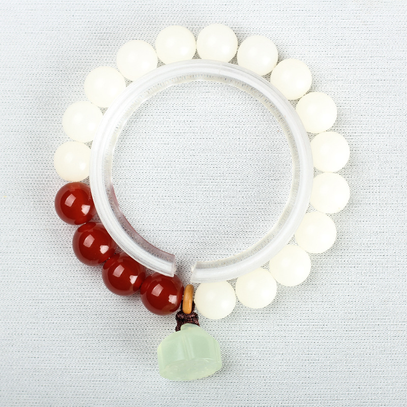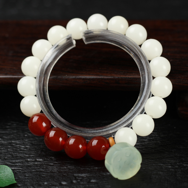 【白玉菩提】【岫玉蓮花】【紅瑪瑙】原創手作天然印度白玉菩提配紅瑪瑙岫玉單圈佛珠手串
