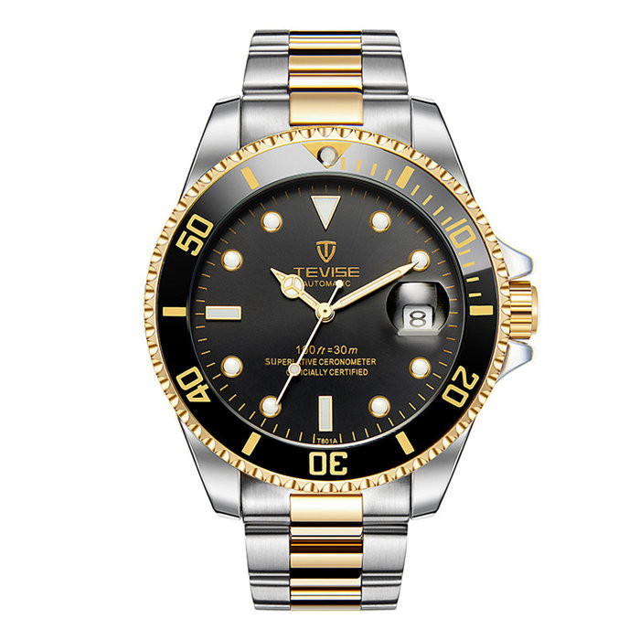 【自動機械錶】【視距潛水系列】【水滴日曆】【夜光】瑞士TEVISE經典深潛系列單向旋轉外圈自動機械錶