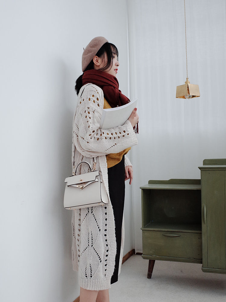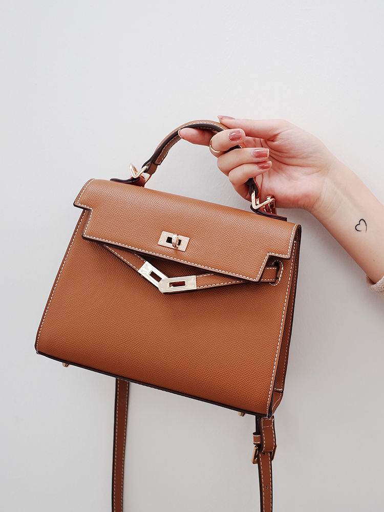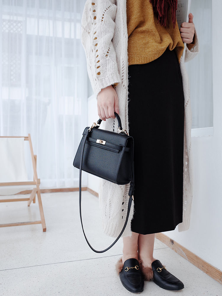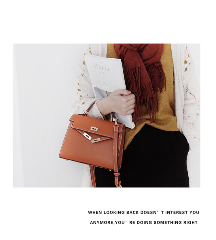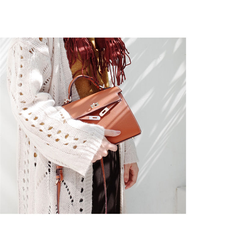 輕奢百搭荔枝紋單肩斜背手提凱莉包