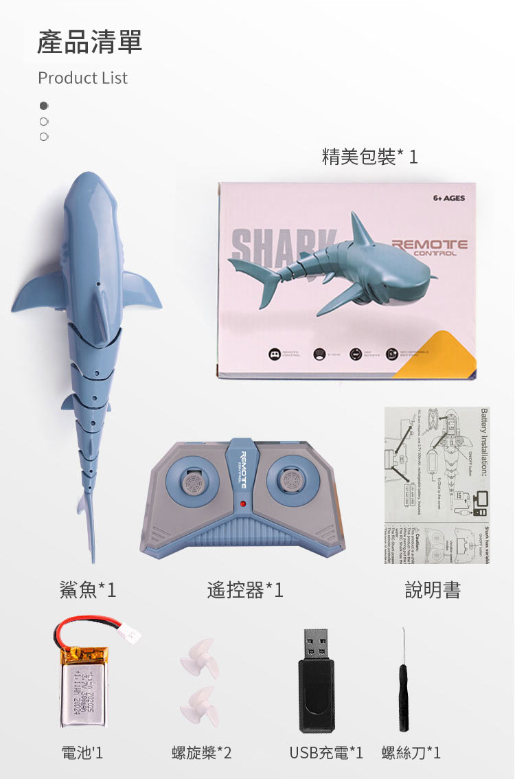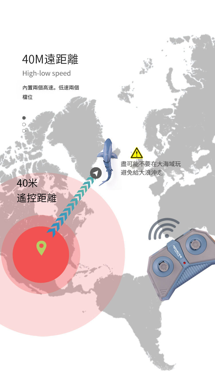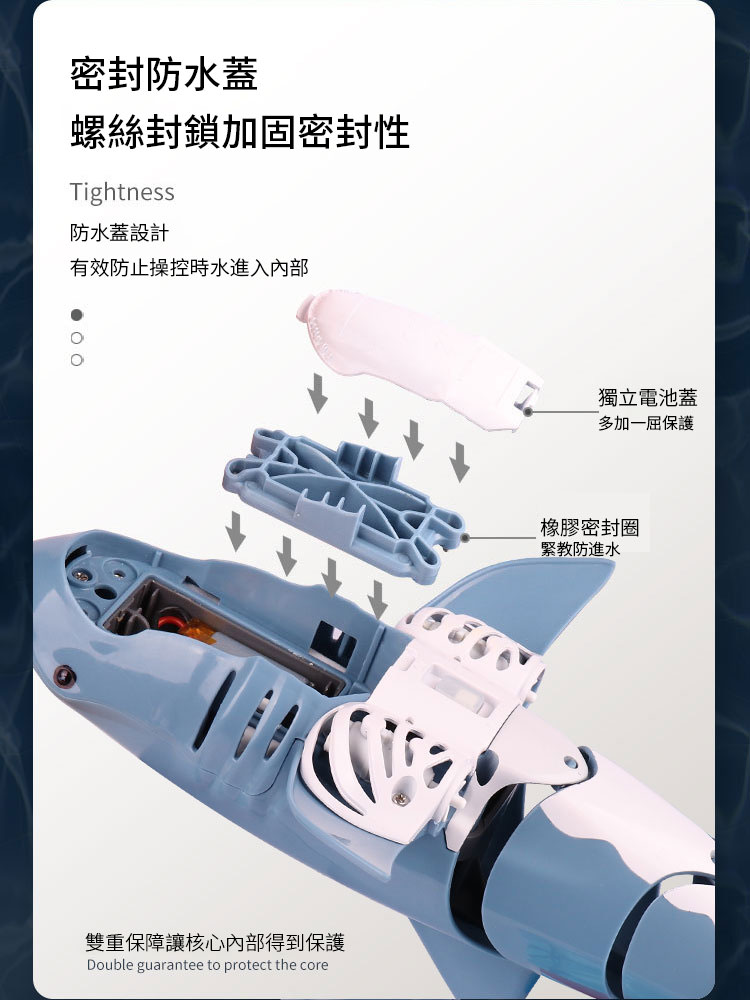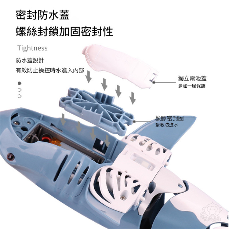 【產品特色】2.4G遙控4通防水鯊魚(防水升級保護)可前進/後退,左轉,右轉