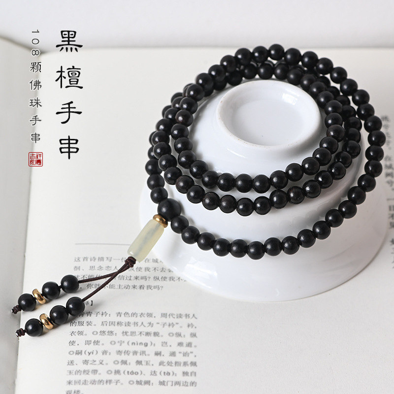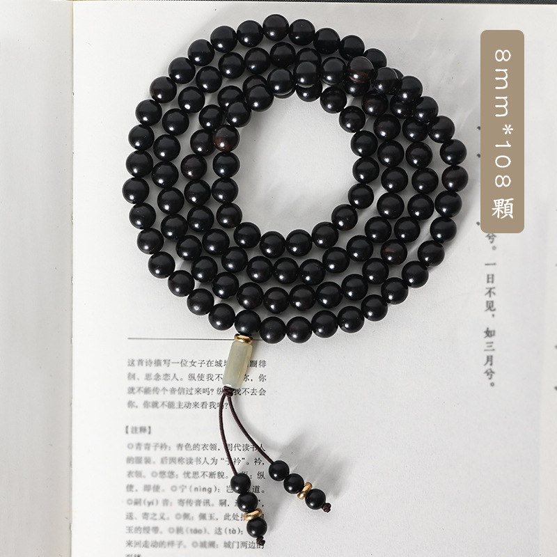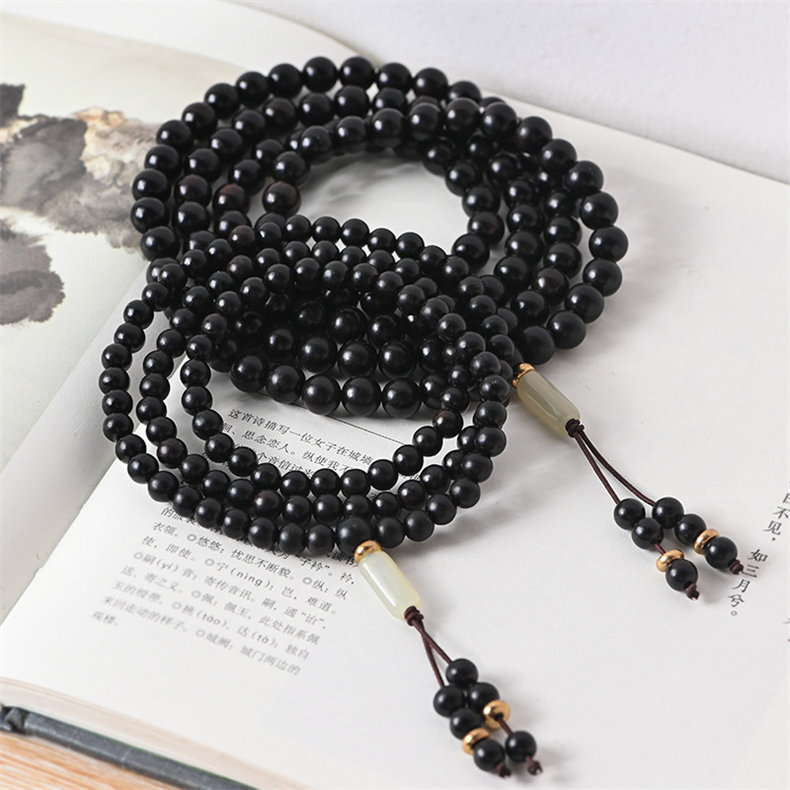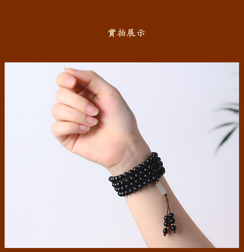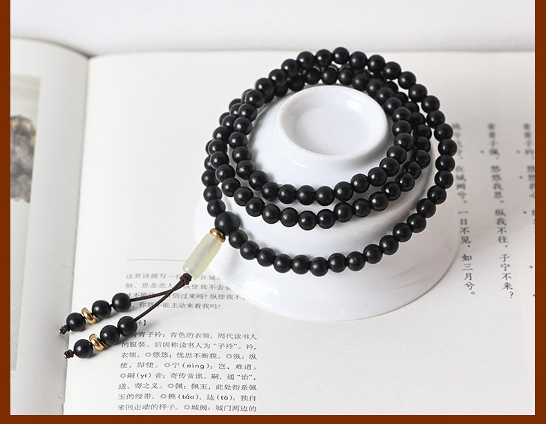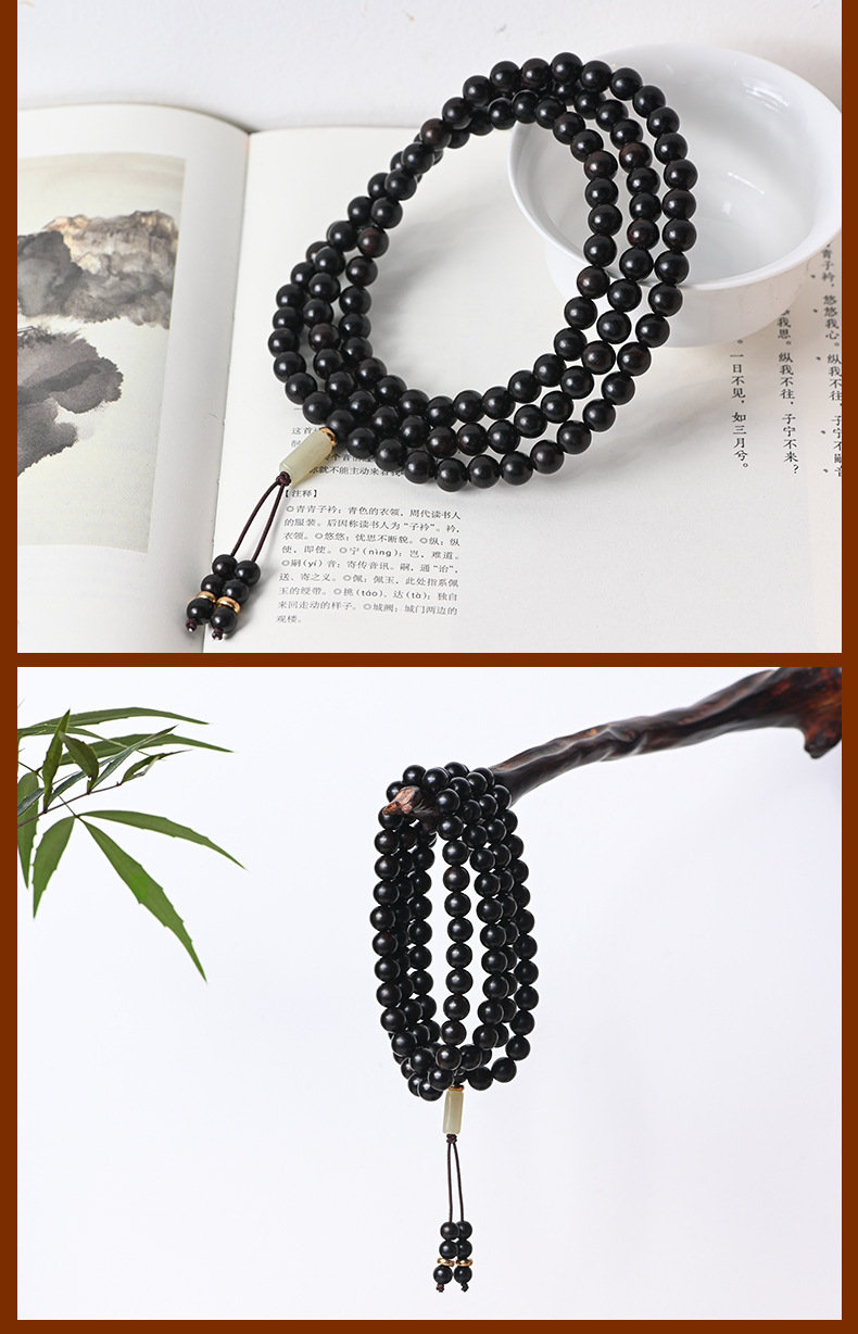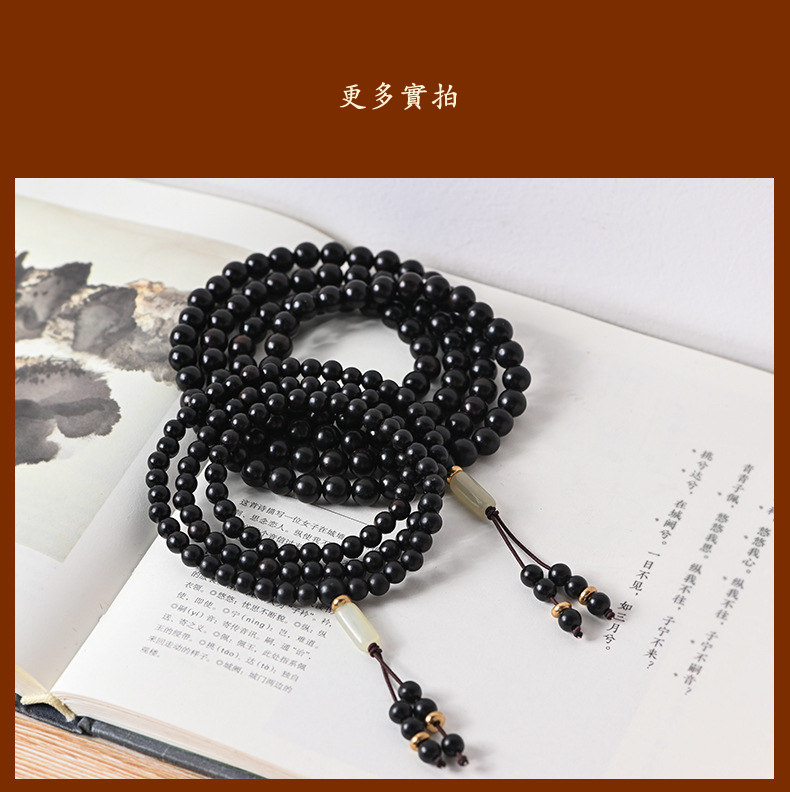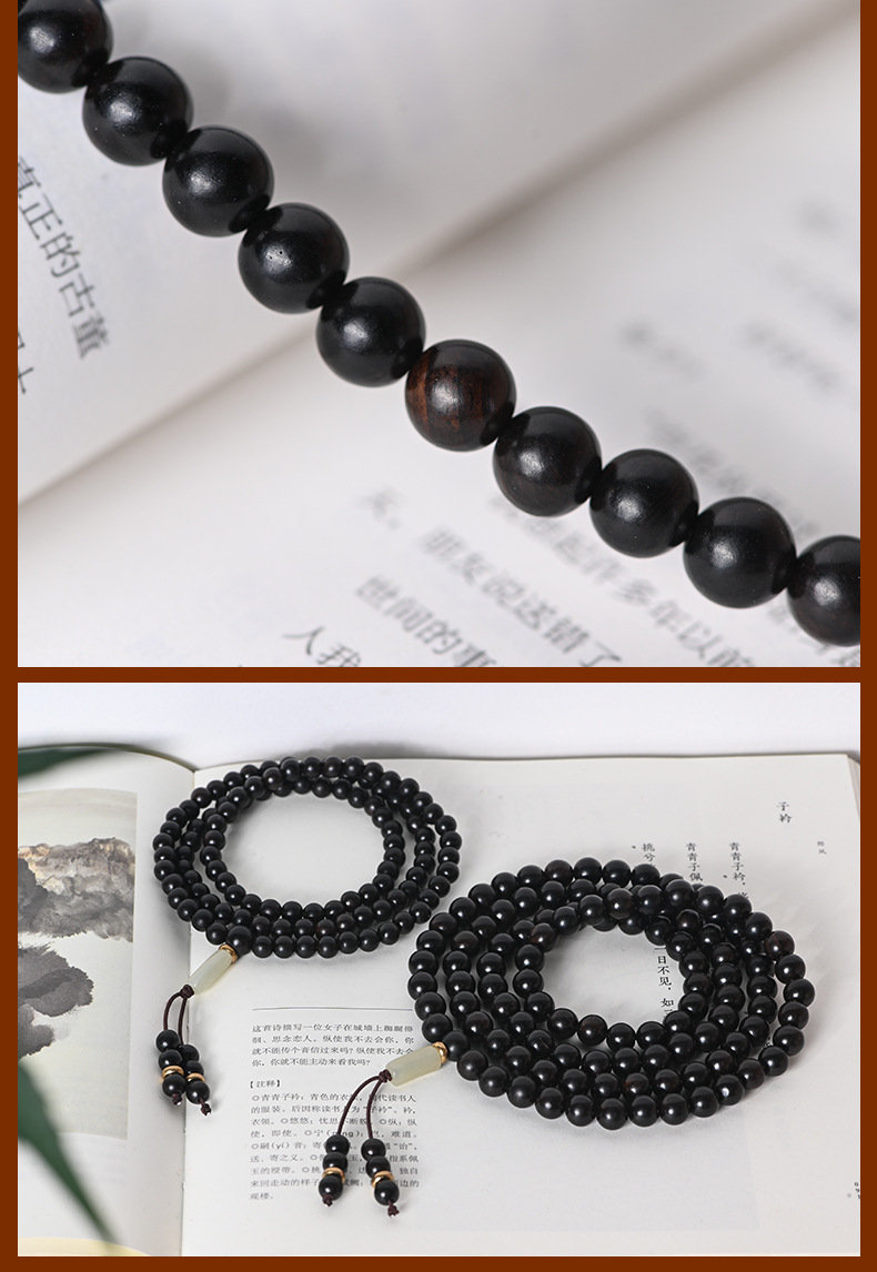 限時買一送一 | 天然收藏級108顆黑檀木念珠佛珠手串 | 搭配和田玉吊飾 | 滑潤細膩堅硬美型天然黑檀木男女108顆念珠多圈佛珠手串