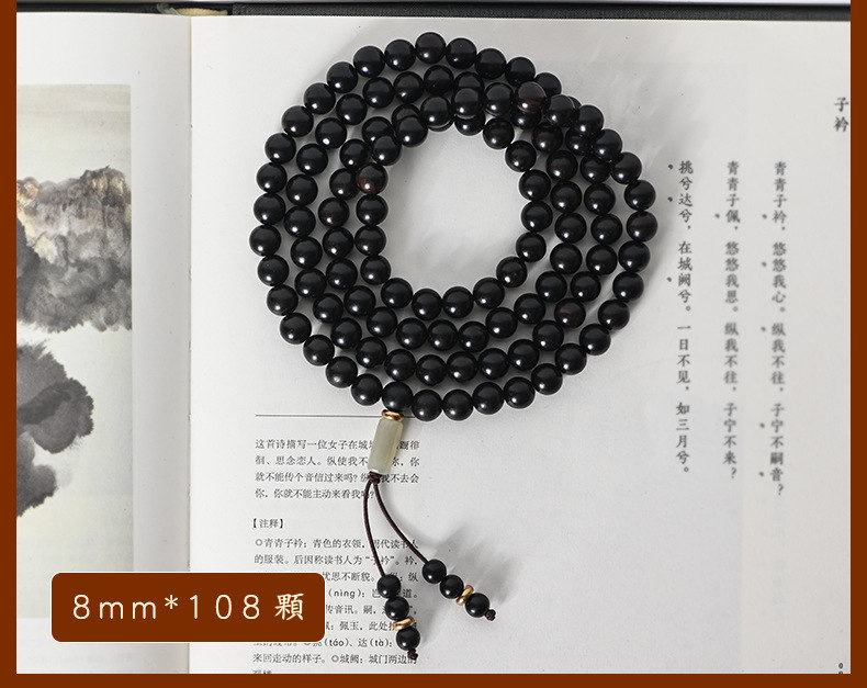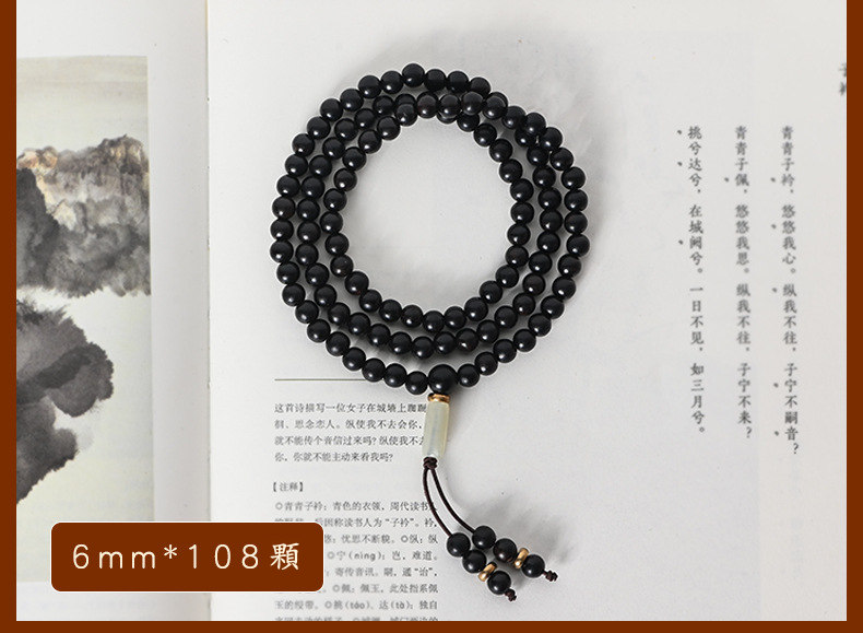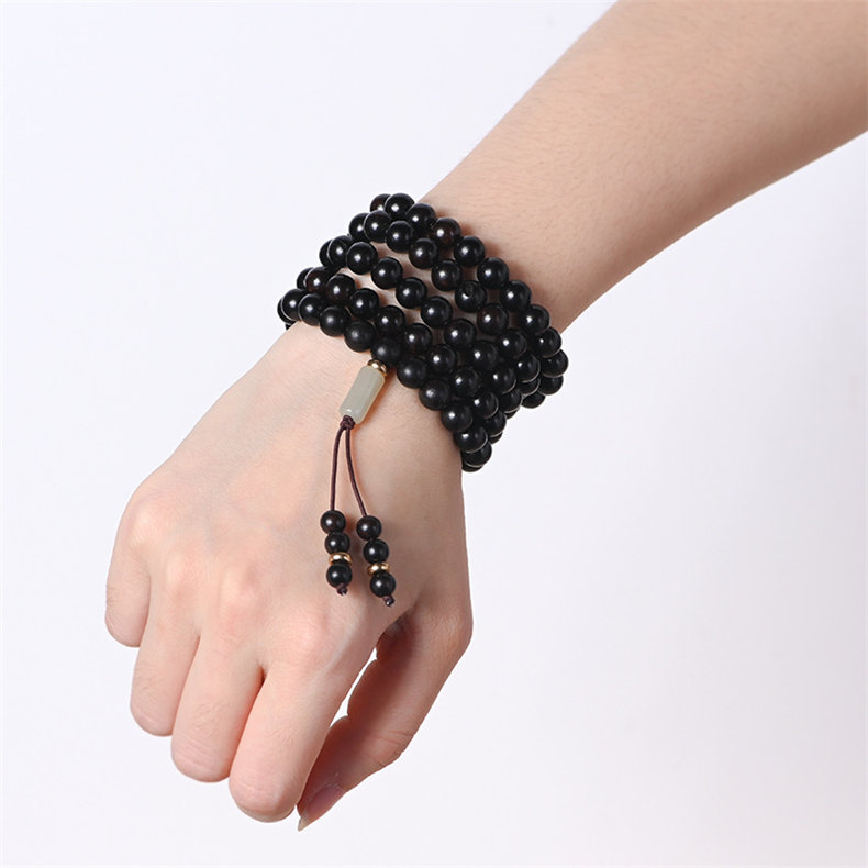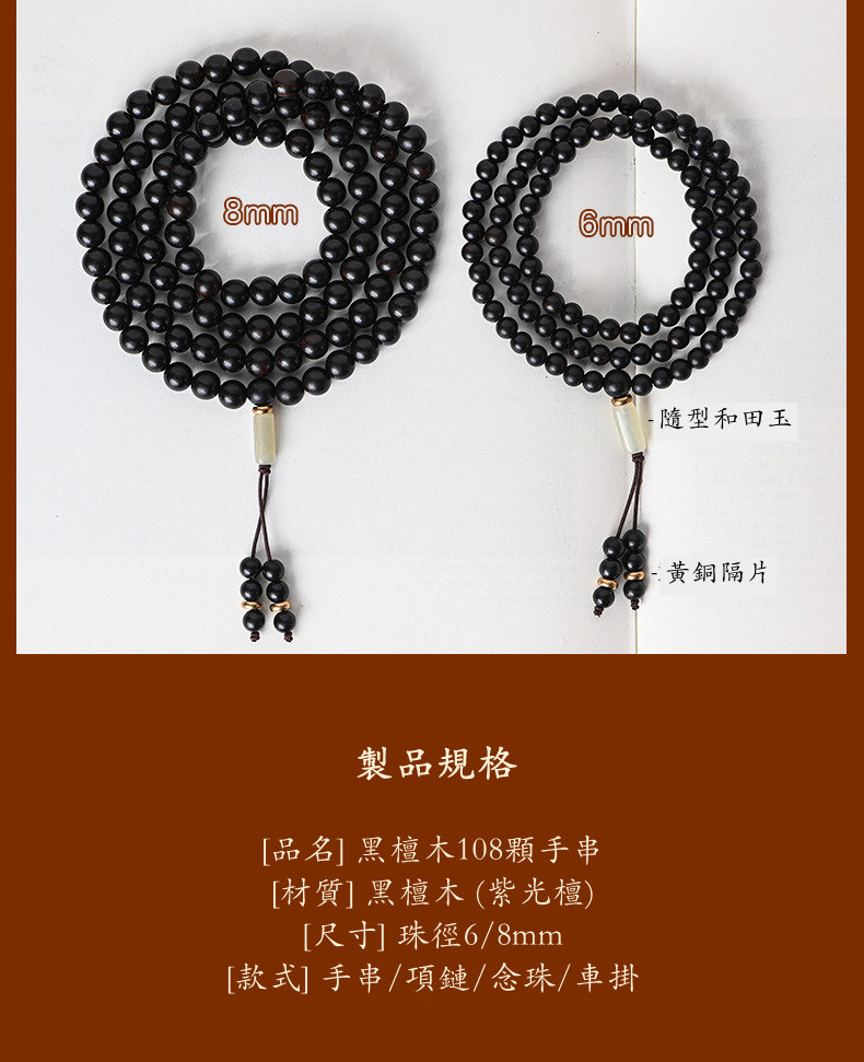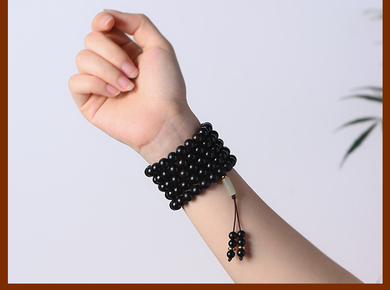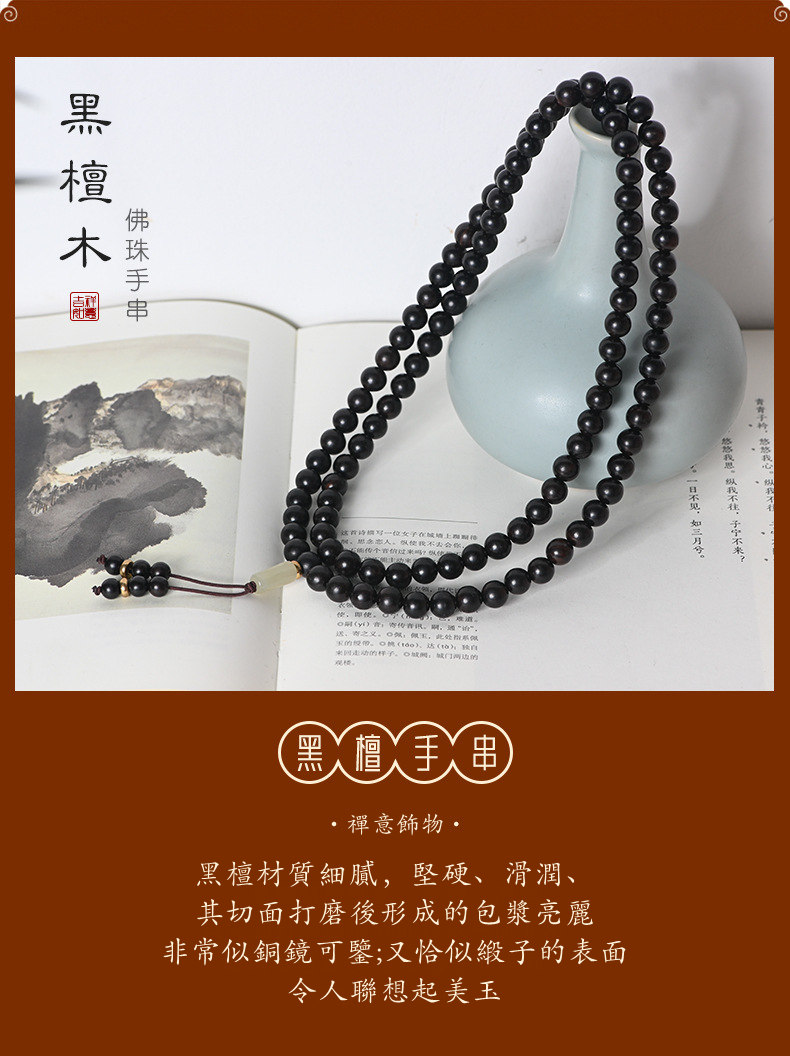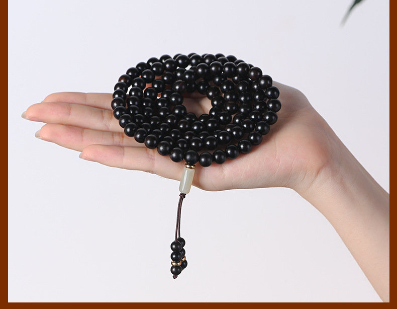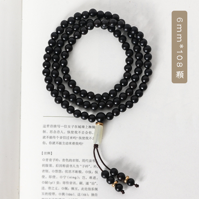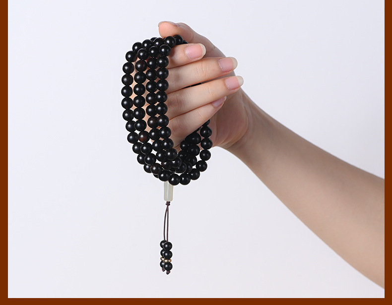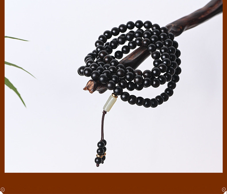 限時買一送一 | 天然收藏級108顆黑檀木念珠佛珠手串 | 搭配和田玉吊飾 | 滑潤細膩堅硬美型天然黑檀木男女108顆念珠多圈佛珠手串