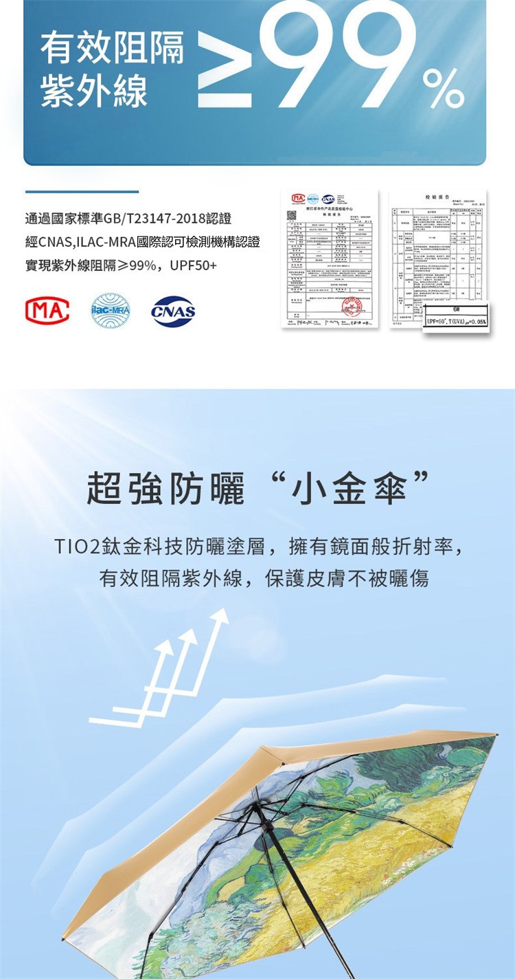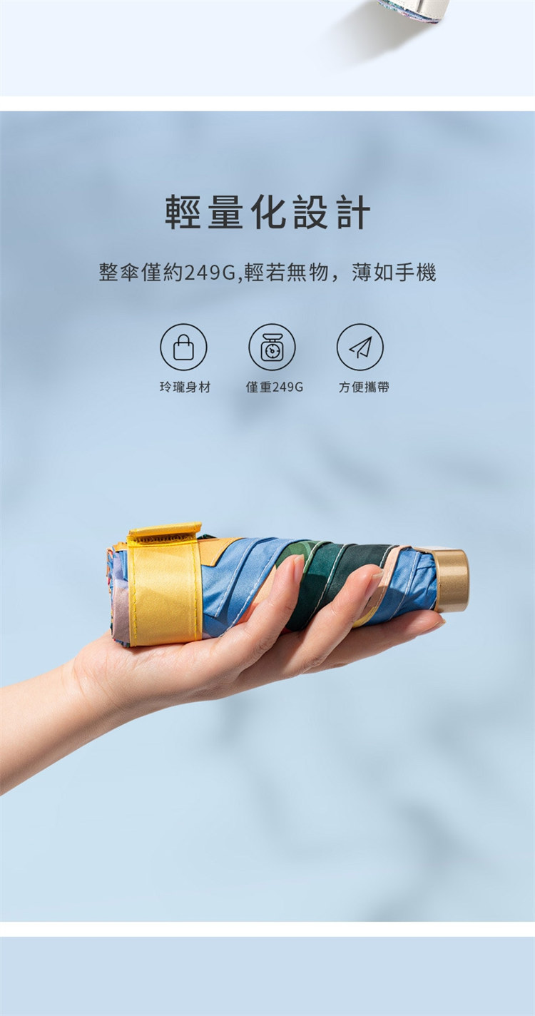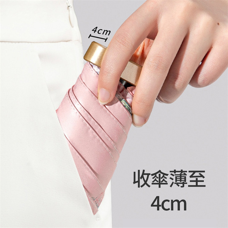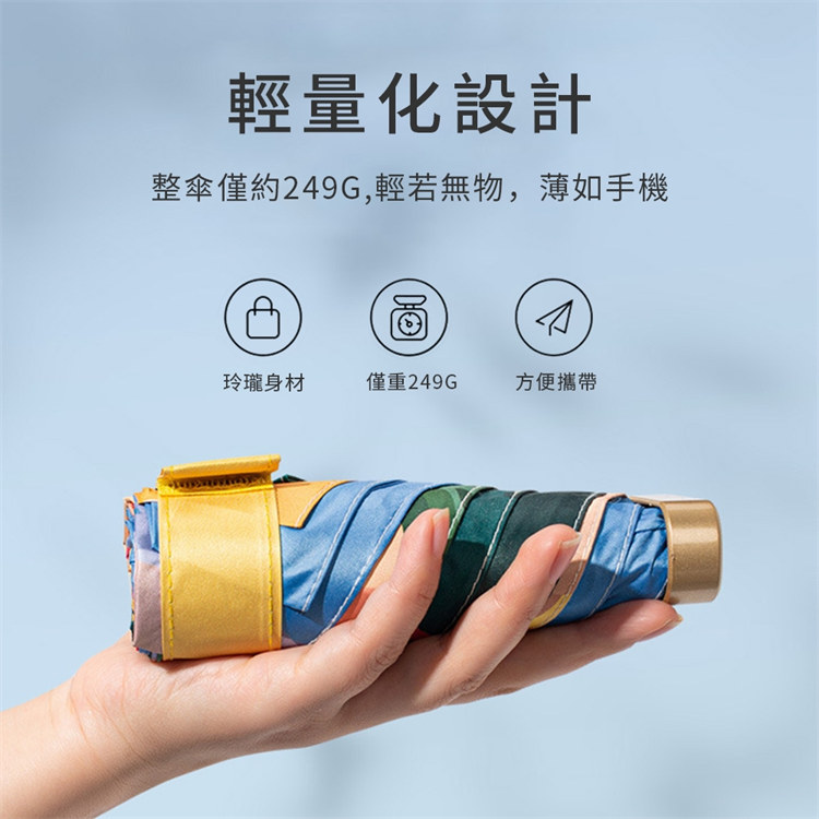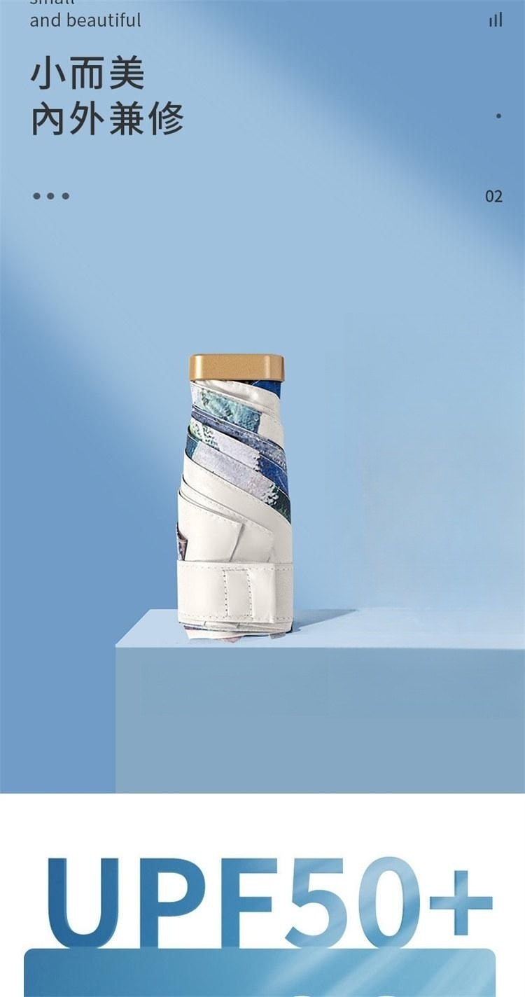 UPF50+迷你超輕六折卡片口袋傘 | 超美油畫手繪傘面 | 99%紫外線阻隔 | 超輕無感隨身便攜 | 晴雨兩用高顏值不撞傘超輕黑膠陽傘折疊傘