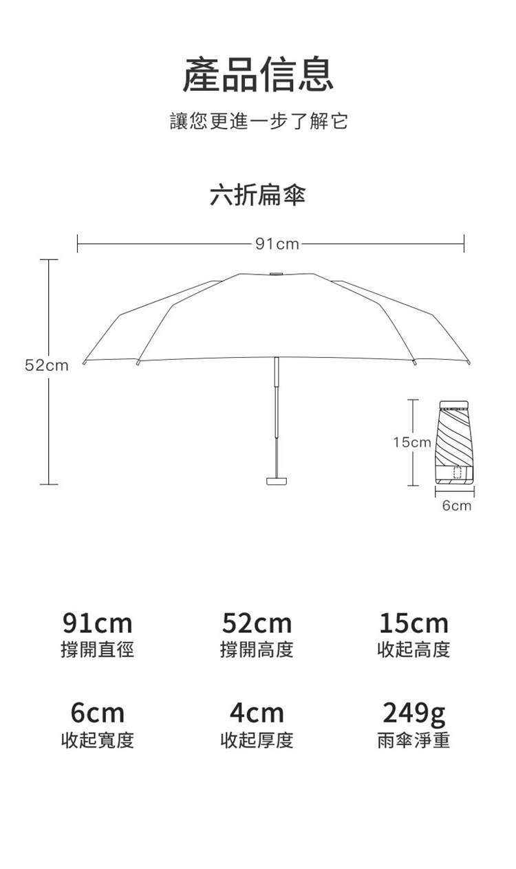 輕量化設計,整傘僅約249g