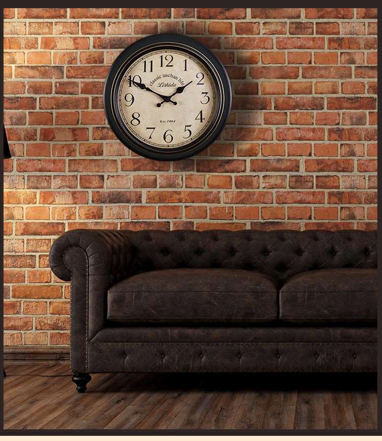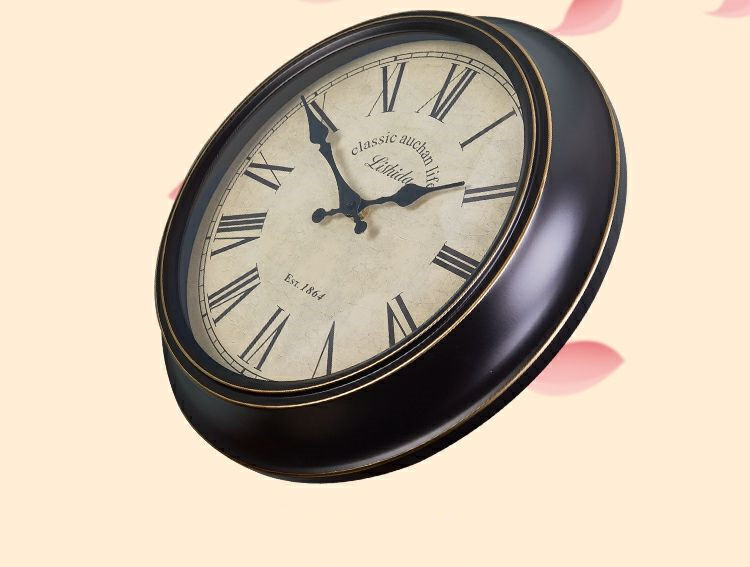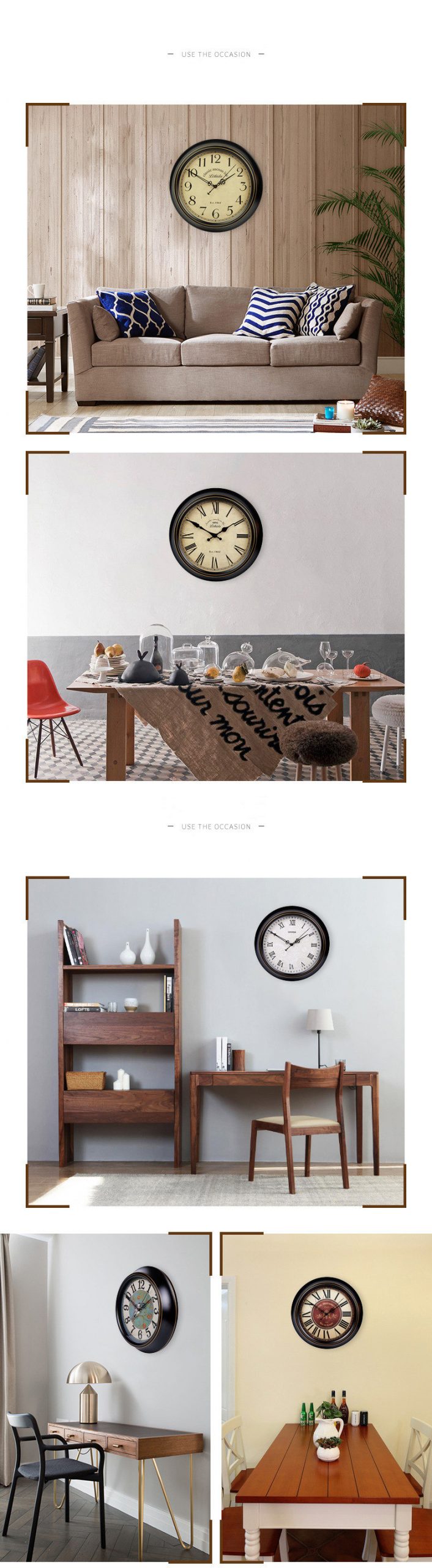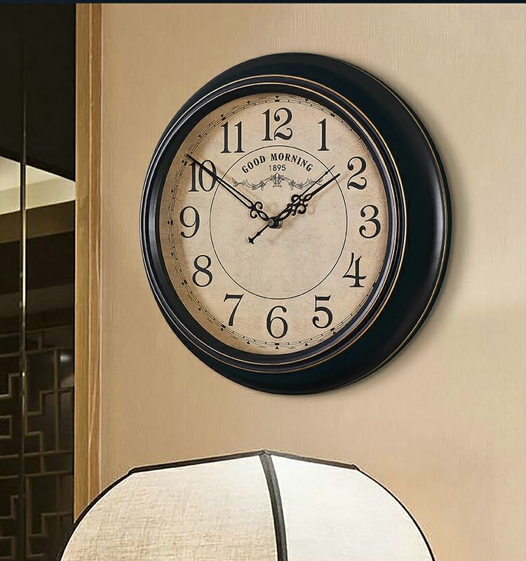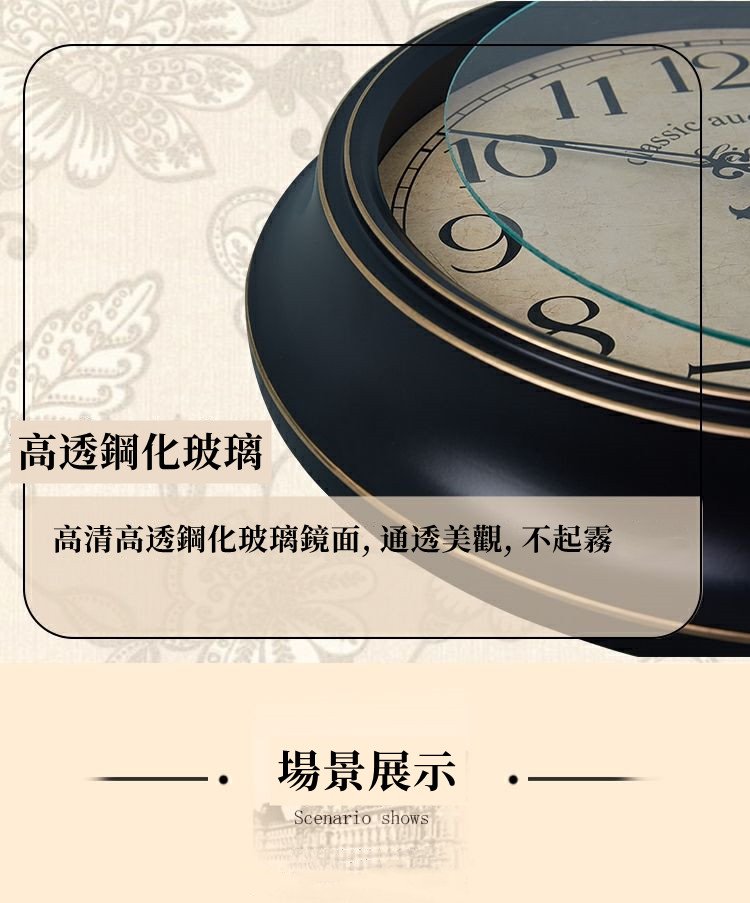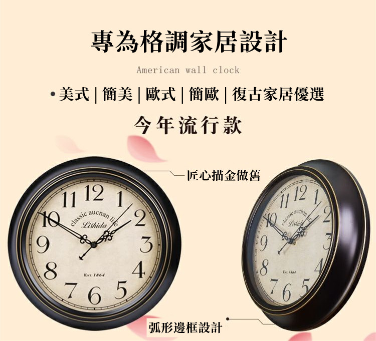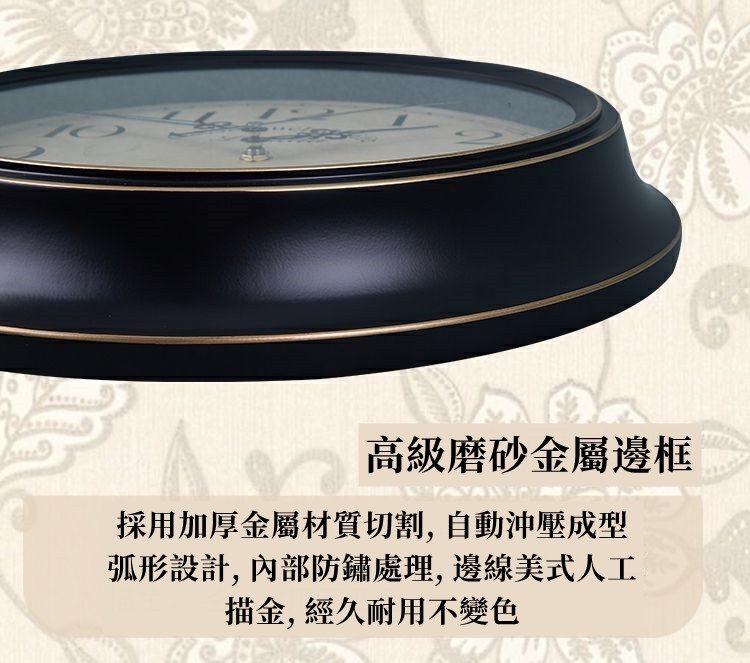 【高級美式復古靜音時鐘】【手工描金鐵藝】【15年長壽命機芯】高級美式經典不過時復古鐵藝超靜音掃秒弧形邊框高透鋼化玻璃時鐘掛鐘