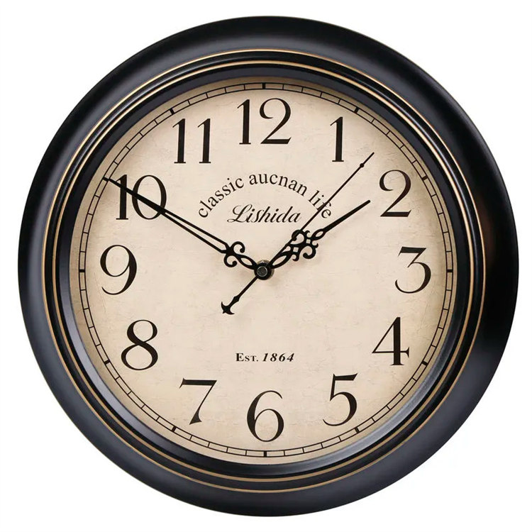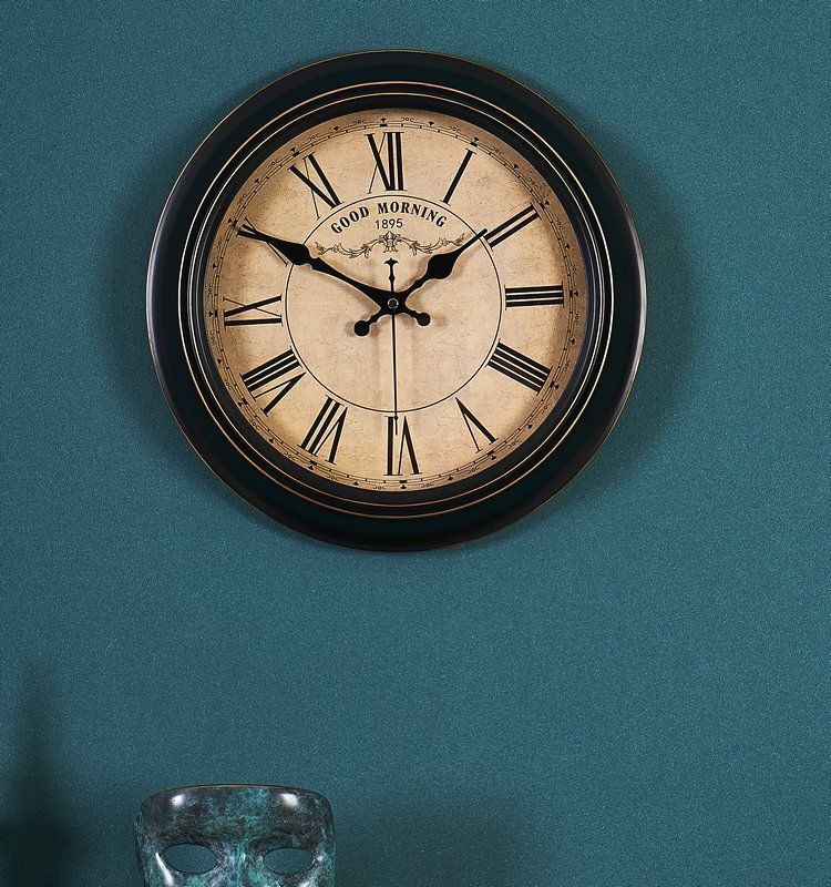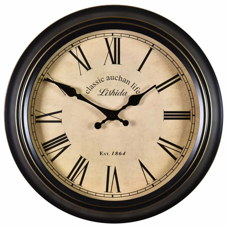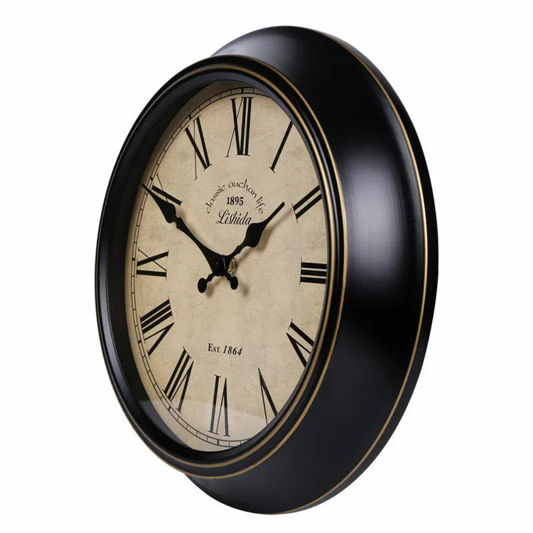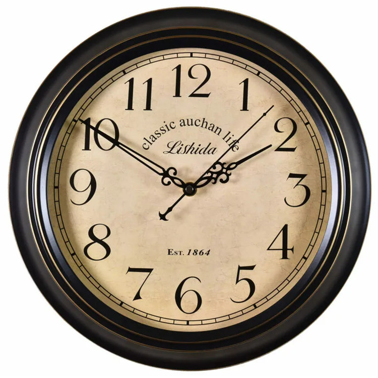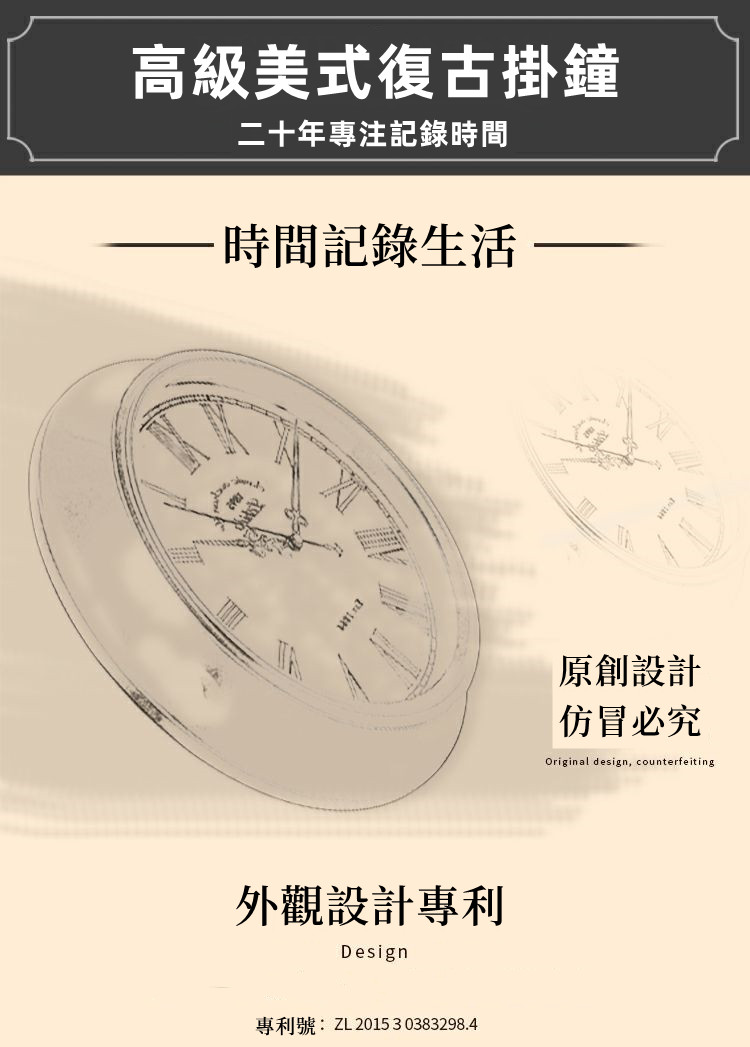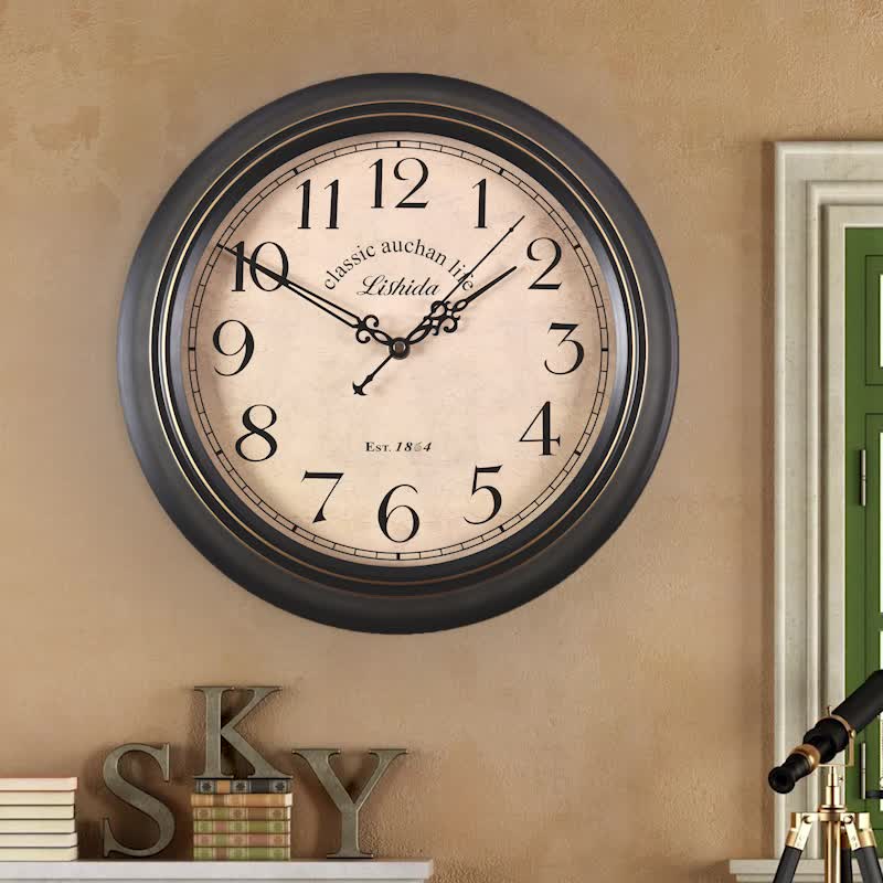 【高級美式復古靜音時鐘】【手工描金鐵藝】【15年長壽命機芯】高級美式經典不過時復古鐵藝超靜音掃秒弧形邊框高透鋼化玻璃時鐘掛鐘