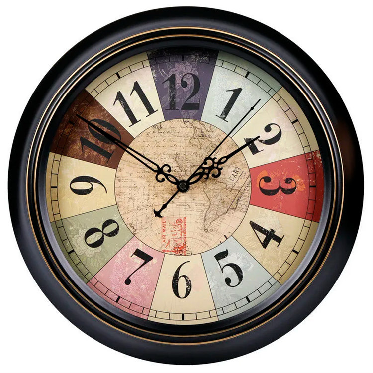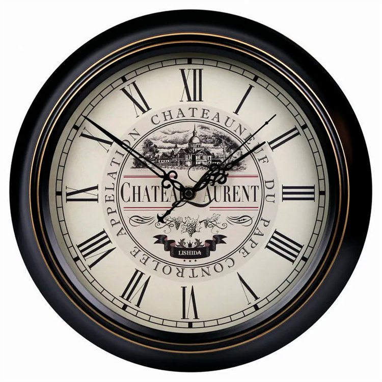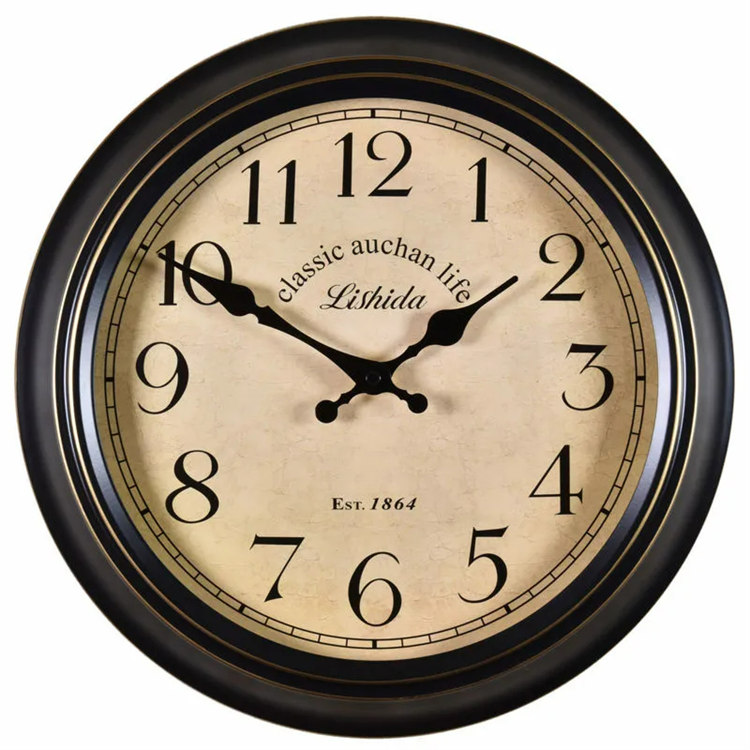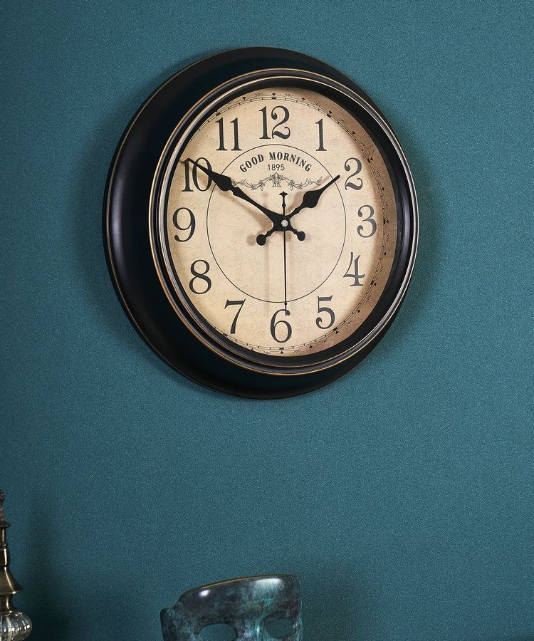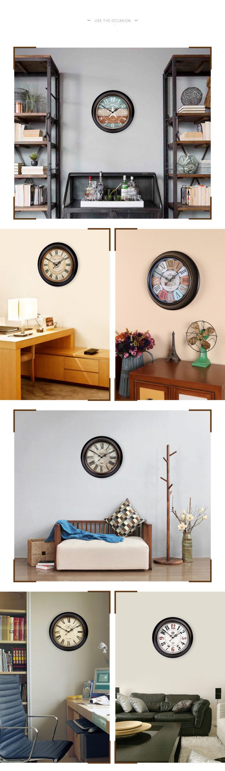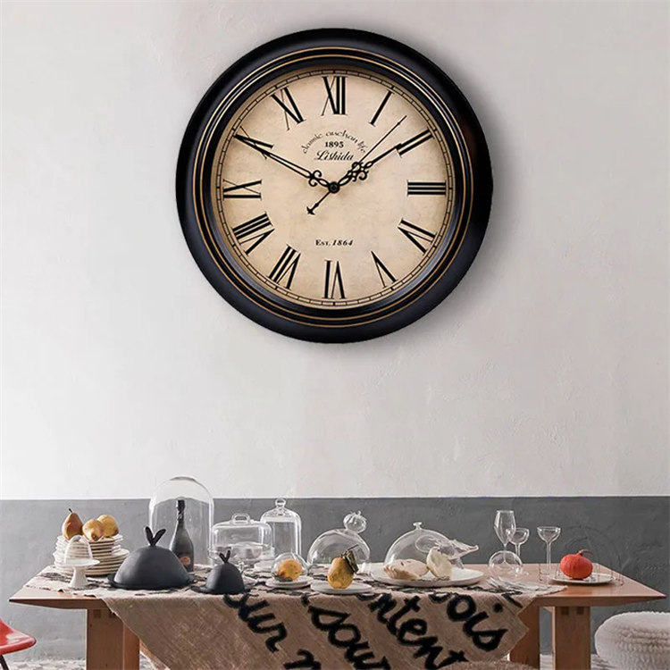 【高級美式復古靜音時鐘】【手工描金鐵藝】【15年長壽命機芯】高級美式經典不過時復古鐵藝超靜音掃秒弧形邊框高透鋼化玻璃時鐘掛鐘