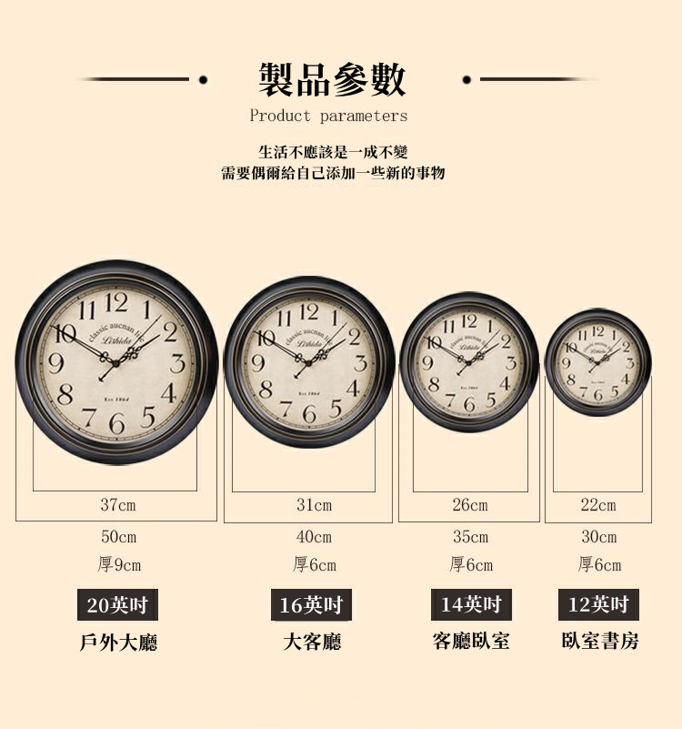| 尺寸 | 12英吋直徑30cm【適合書房臥室】, 14英吋直徑35cm【適合客廳】 |