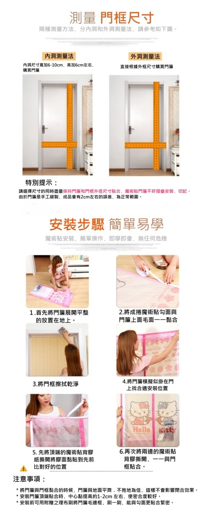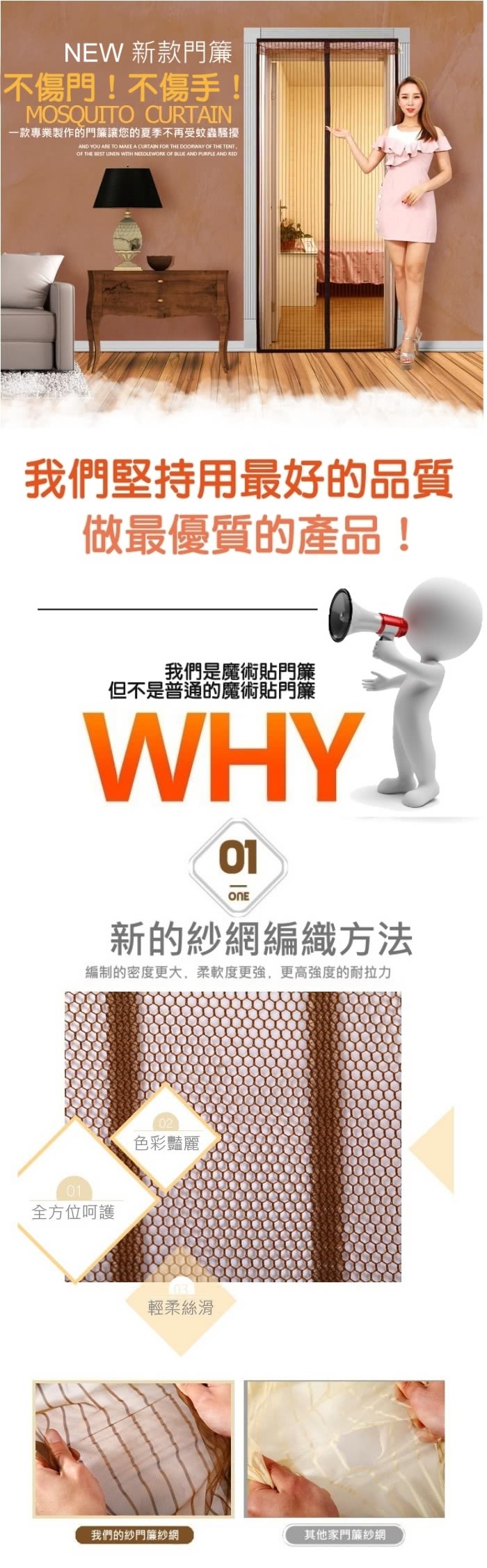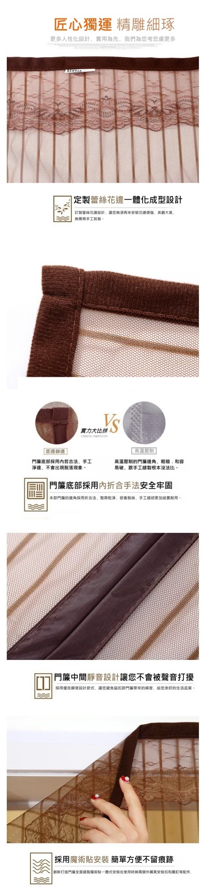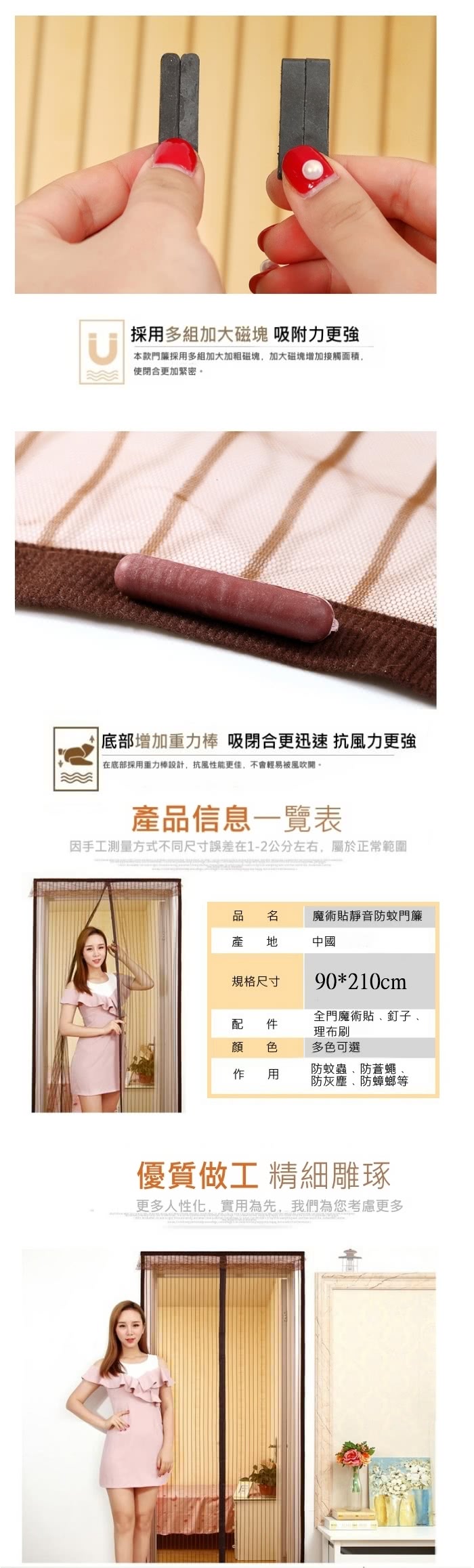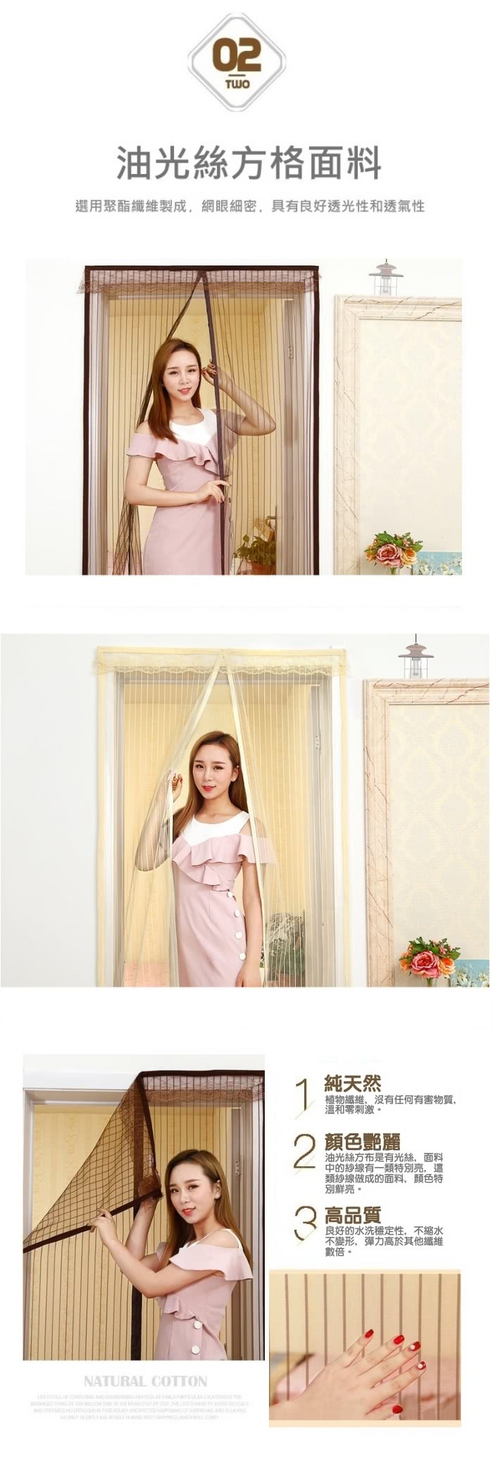 免釘亮光絲素面手工縫紉邊超靜音免穿磁條防蚊門簾90*210cm