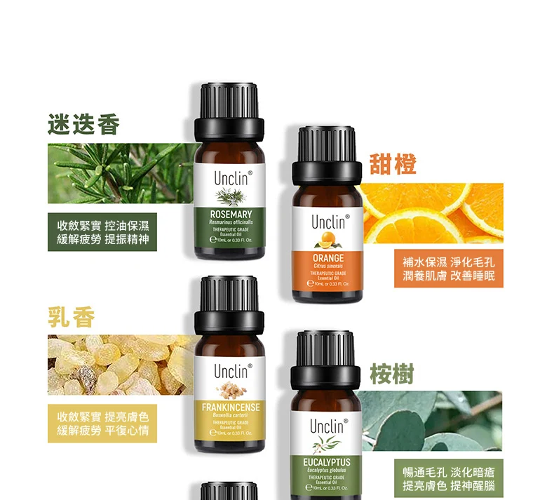 甜橙【Orange】+ 薰衣草【Lavender】+ 茶樹【Tea Tree】+ 薄荷【Peppermint】+ 乳香【Eucalyptus】+ 檸檬香茅【Lemongrass】+ 迷迭香【Rosemary】+ 桉樹【Eucalyptus】