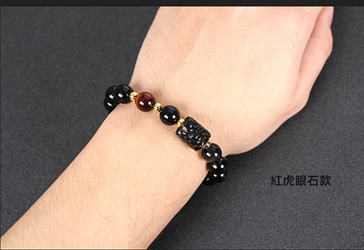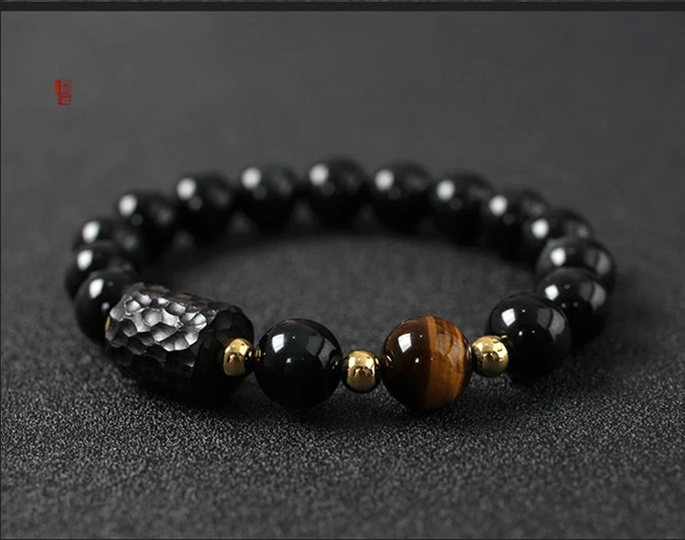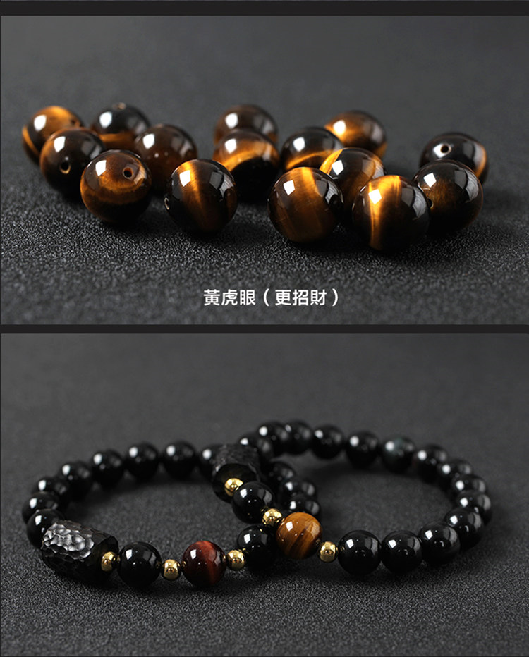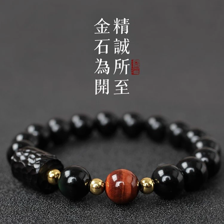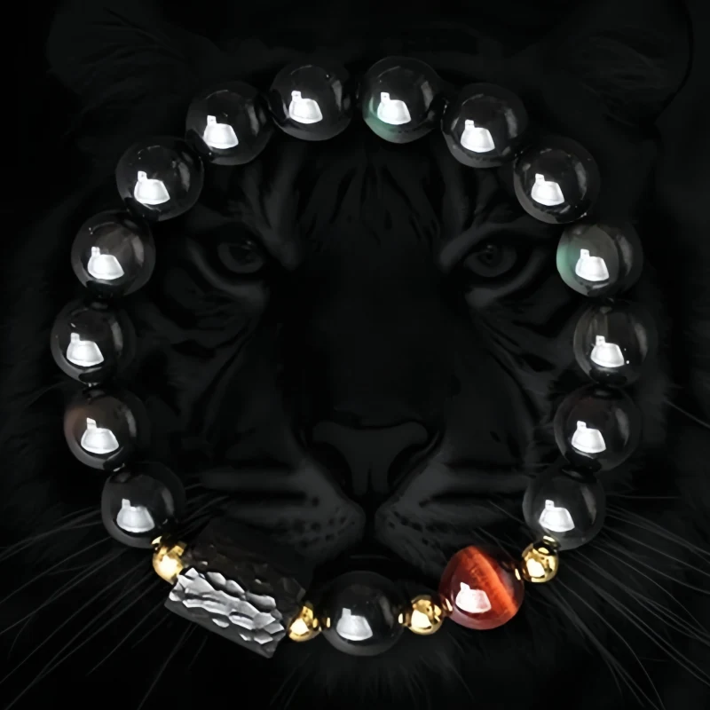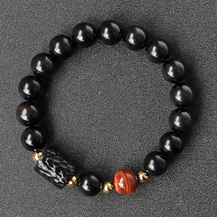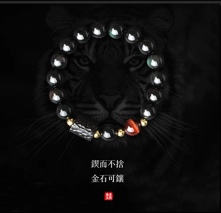 鍥而不捨 | 自信專注 | 天然彩虹黑曜石手鍊 | 天然虎眼石配珠 | 手工精細打磨拋光 | 開運護身彩虹黑曜石配虎眼石手鍊手串