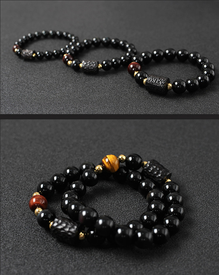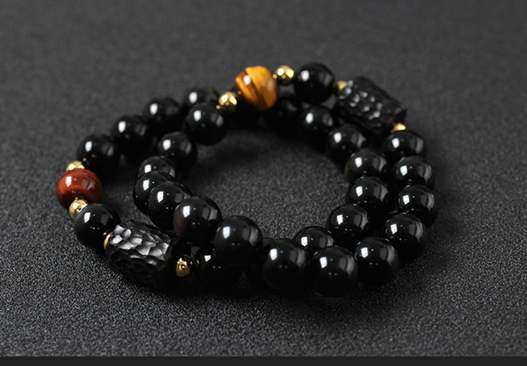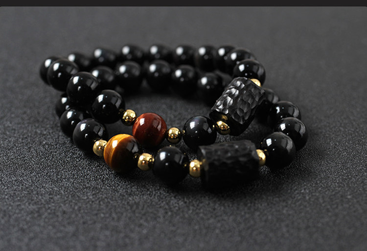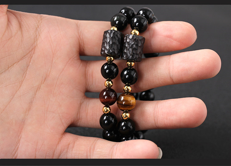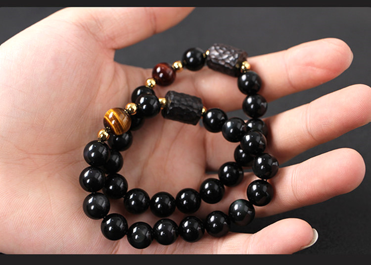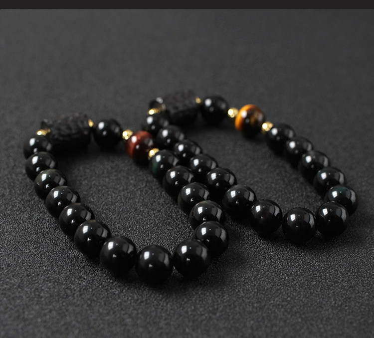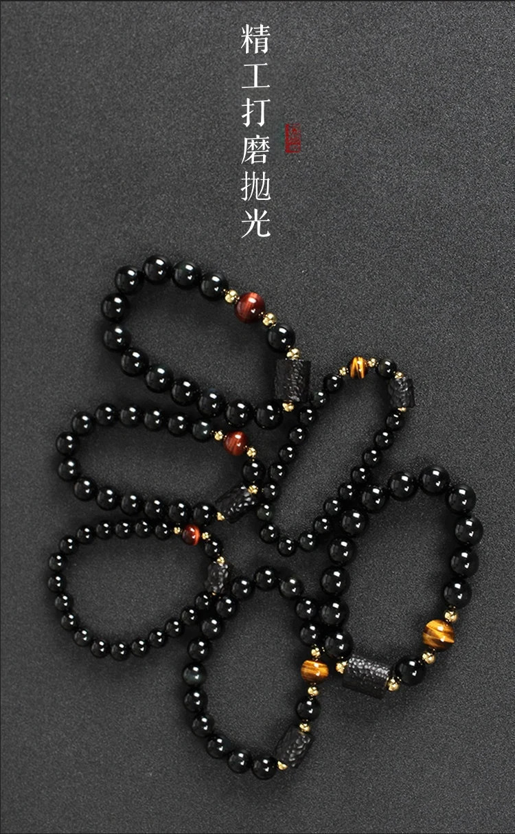 鍥而不捨 | 自信專注 | 天然彩虹黑曜石手鍊 | 天然虎眼石配珠 | 手工精細打磨拋光 | 開運護身彩虹黑曜石配虎眼石手鍊手串