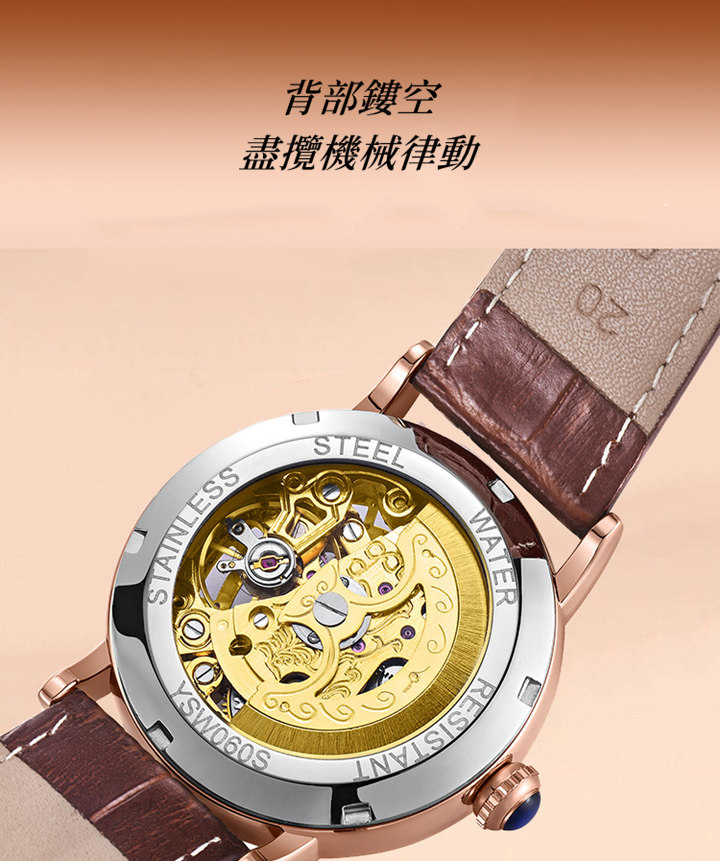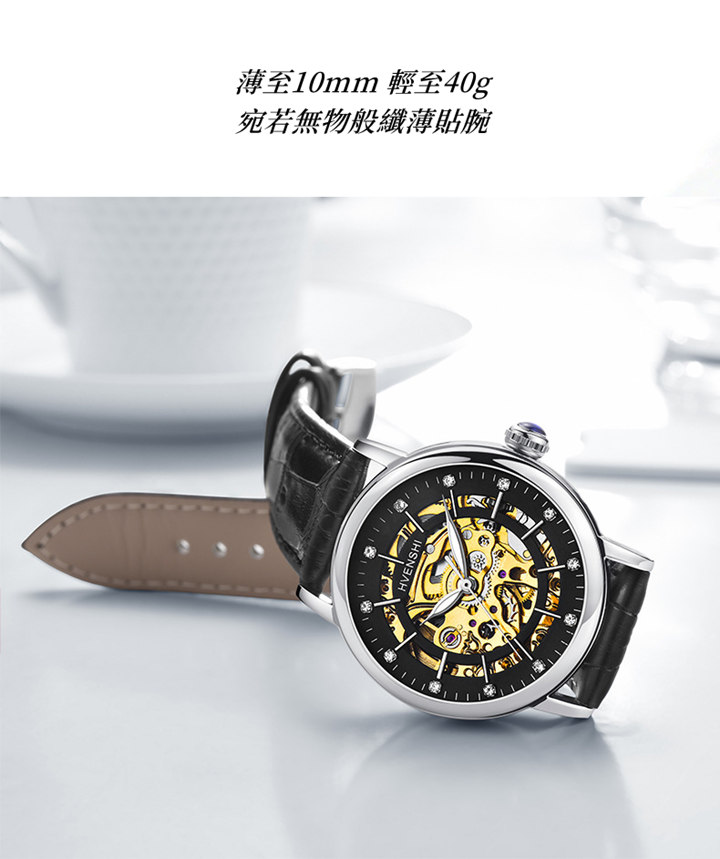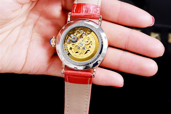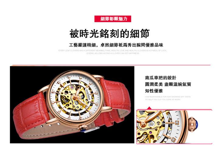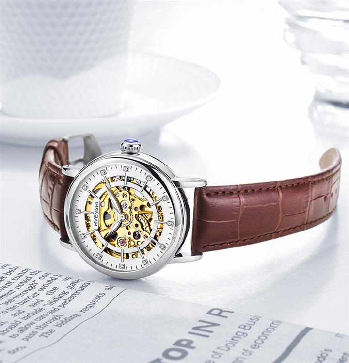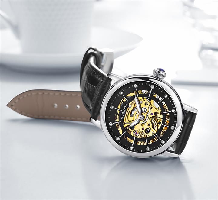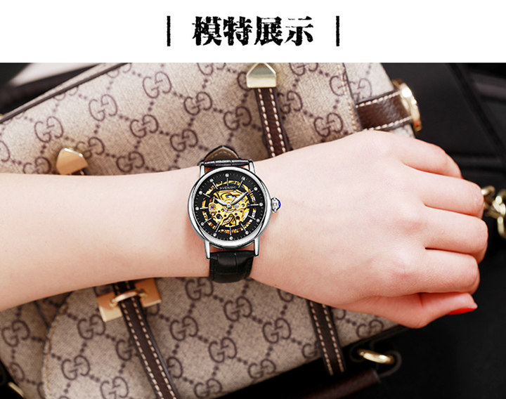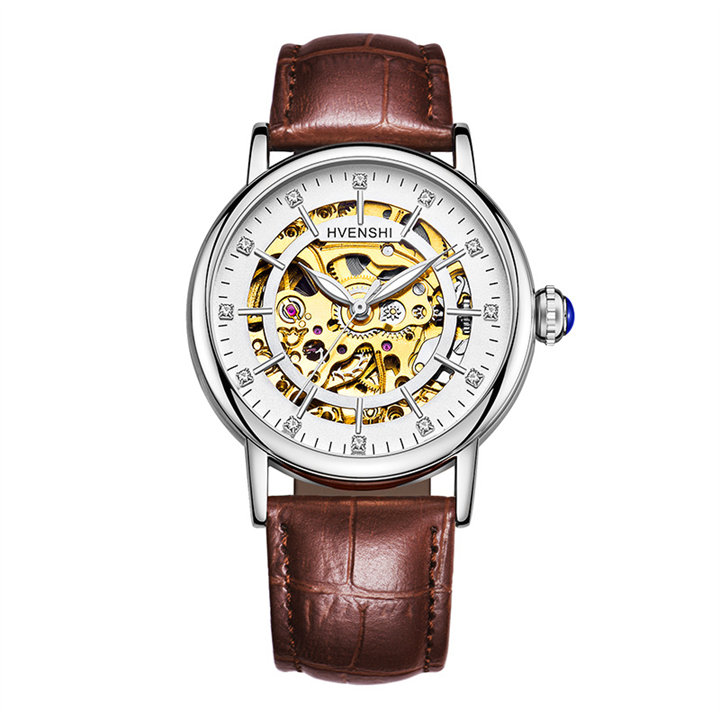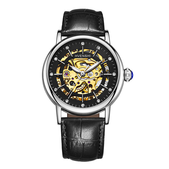 輕奢鏤空鑲鑽小圓錶 | 全自動機械機芯 | 紅寶石錶冠 | 小牛皮錶帶 | 強化礦物玻璃鏡面 | 30米防水 | 夜光指針 | HVENSHI女士全自動機械腕錶