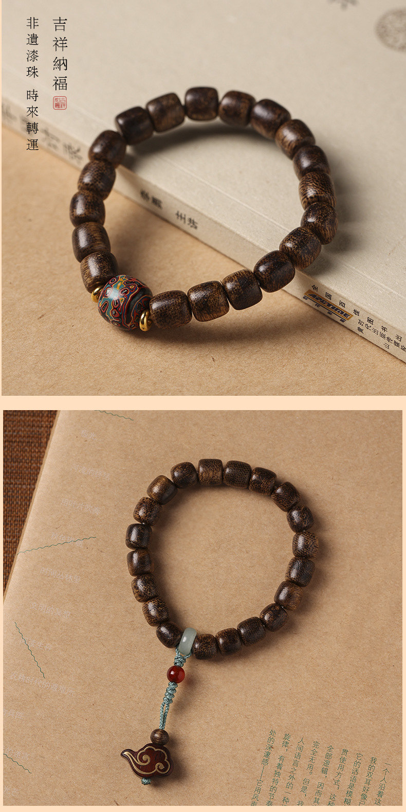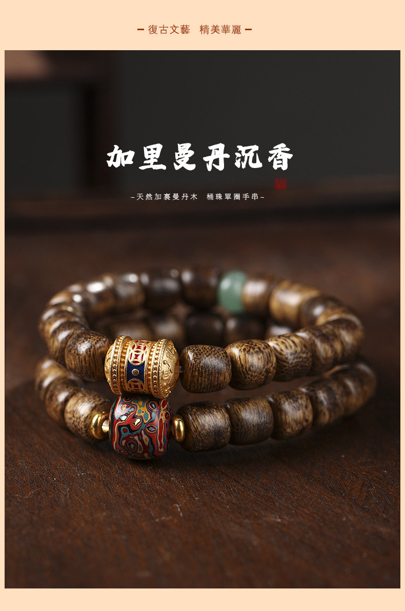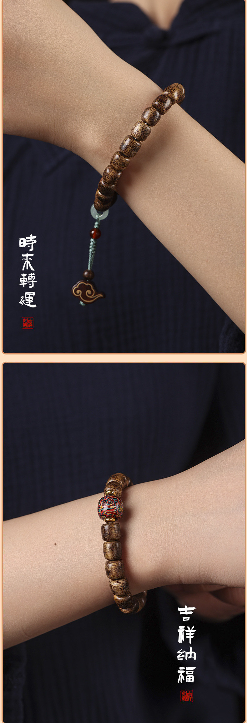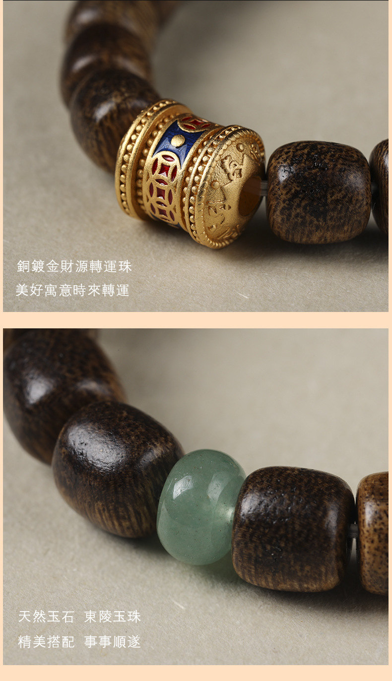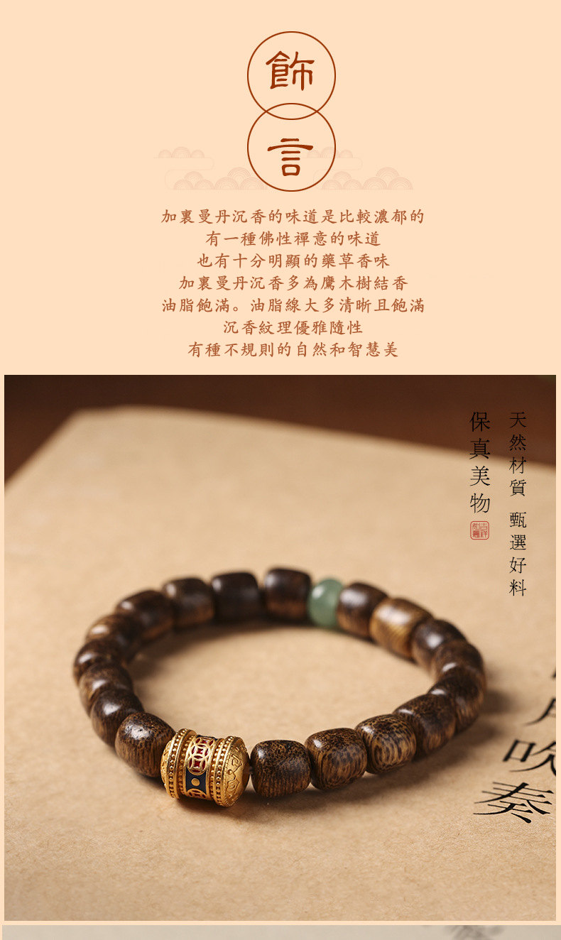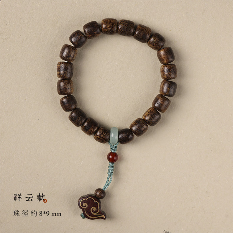 天然印尼加里曼丹沉香佛珠手串 | 搭配祥雲開運珠 | 油線細膩芳香怡人 | 福運綿延收藏級印尼加里曼丹天然沉香木男女單圈佛珠手串