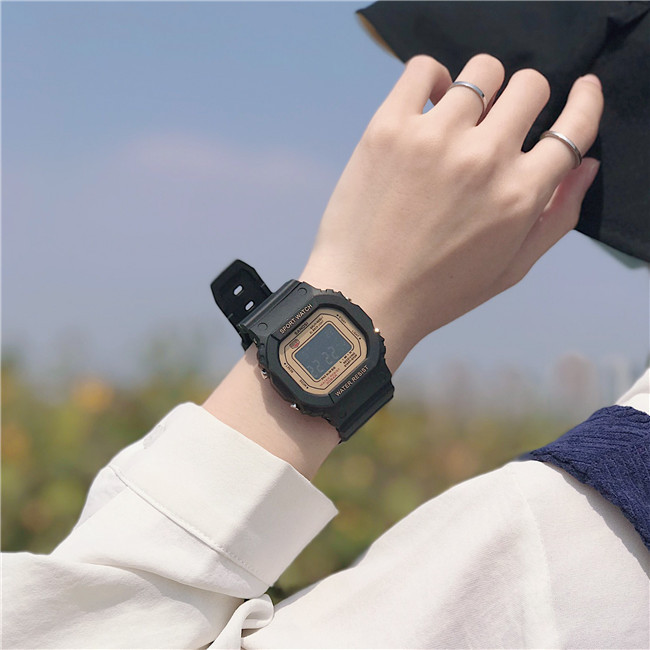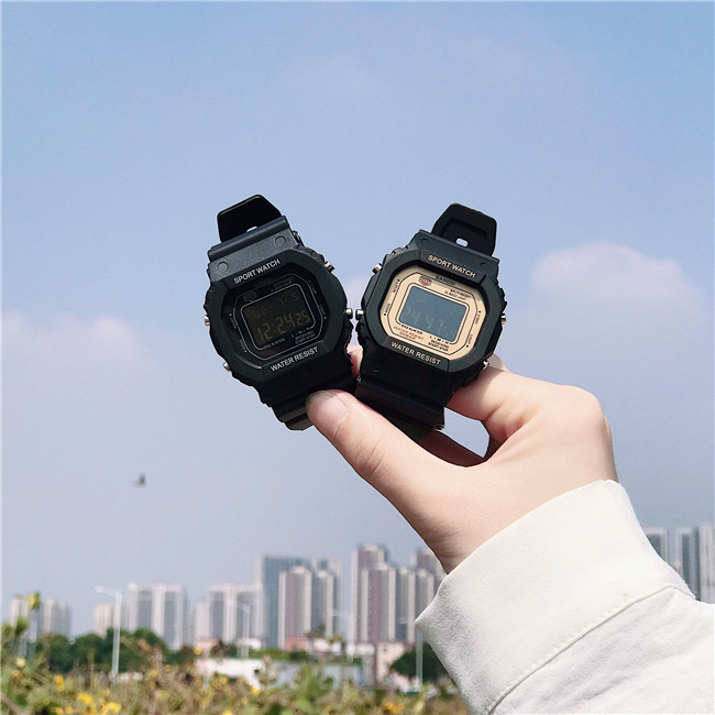 【日式原宿方塊錶】【多功能】日式原宿氣質小方塊矽膠液晶數顯多功能運動電子手錶