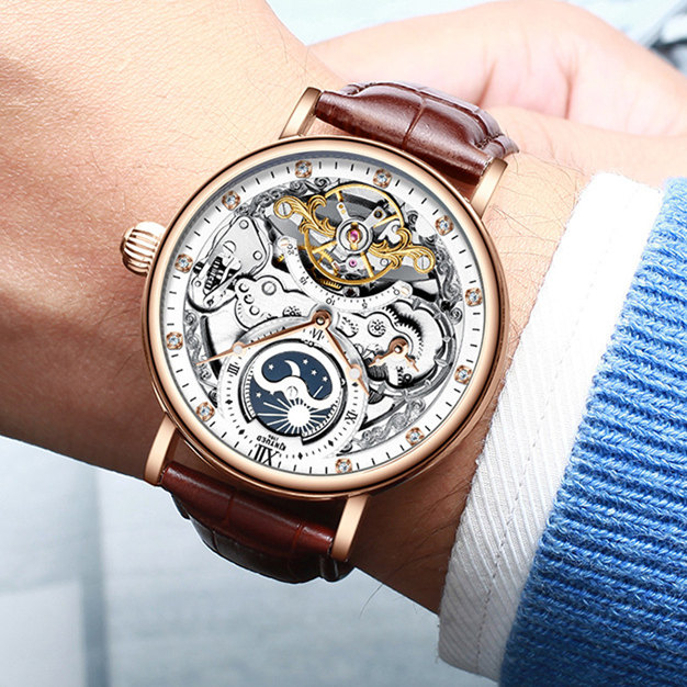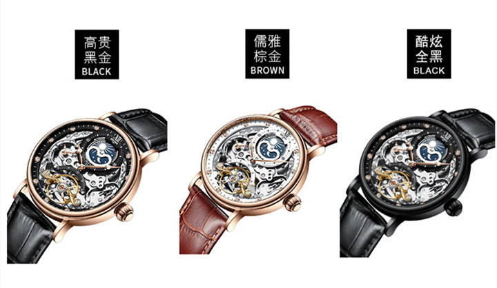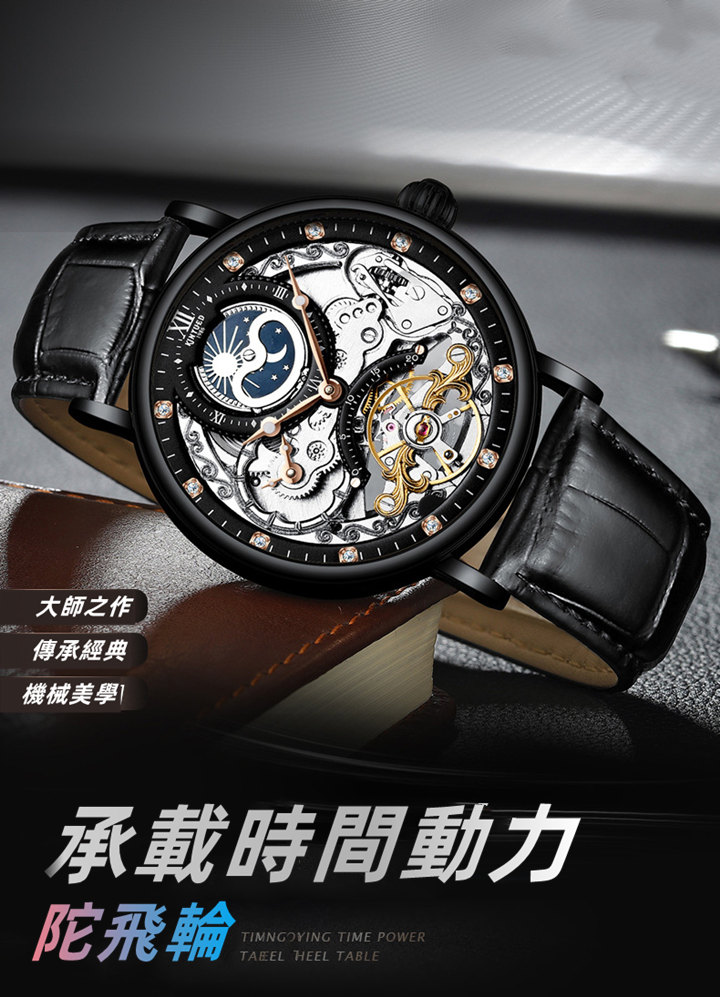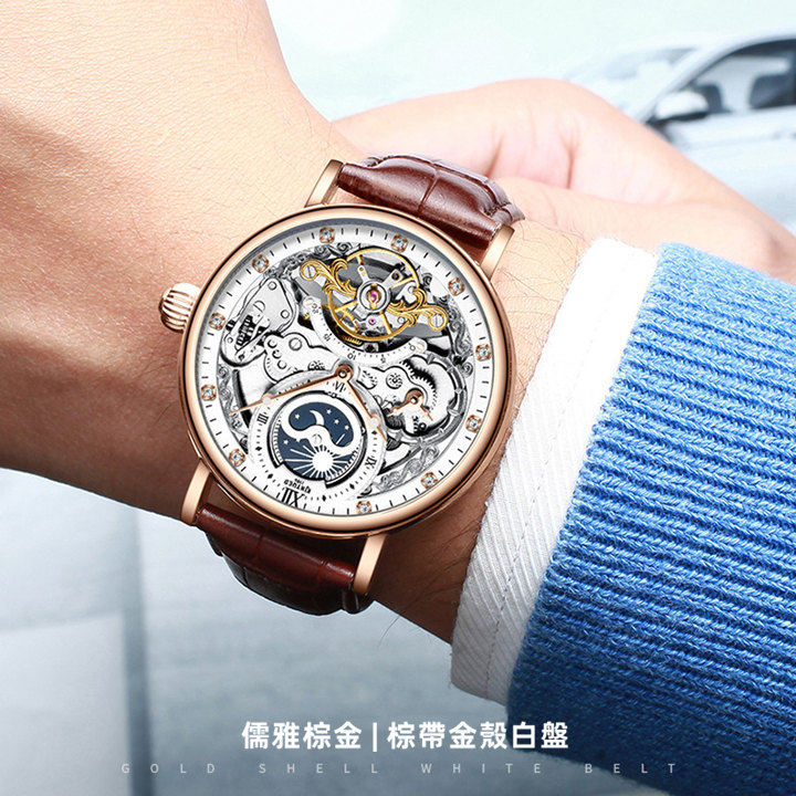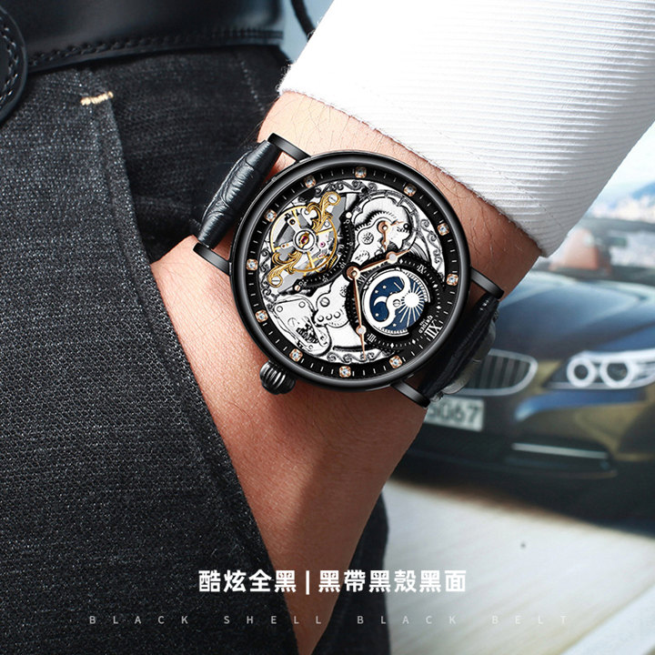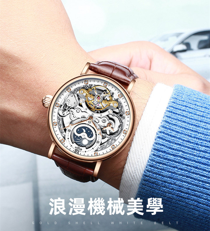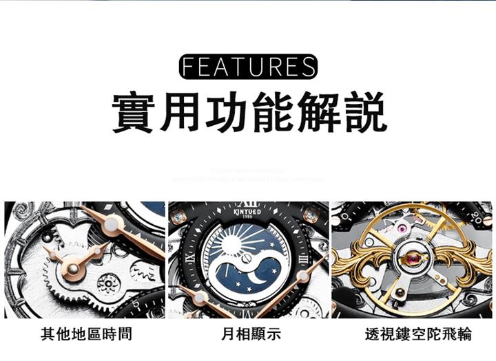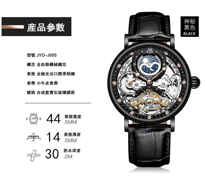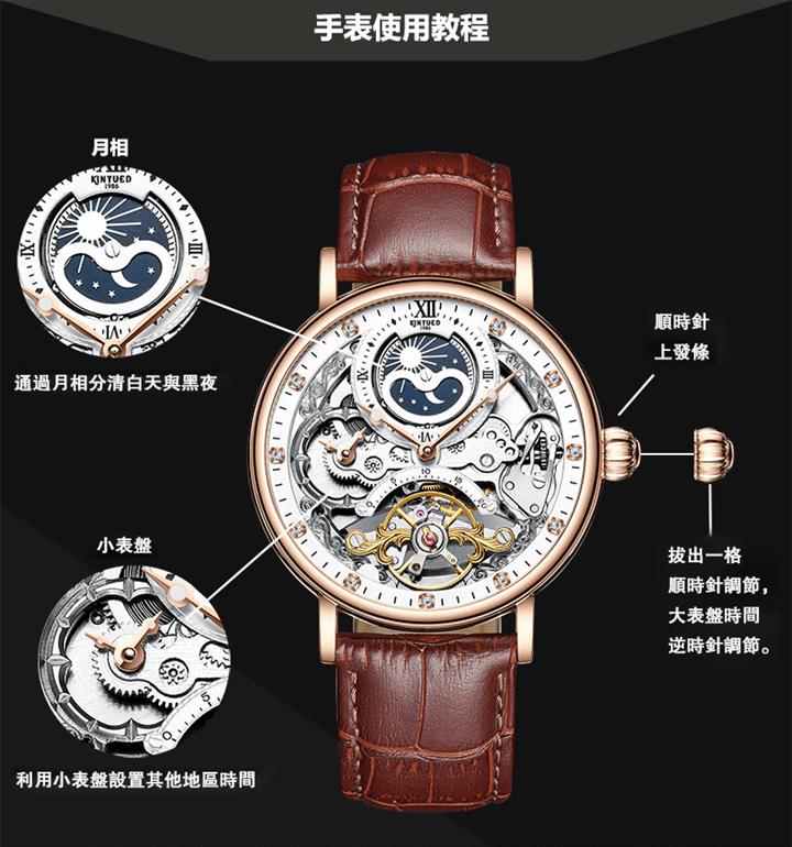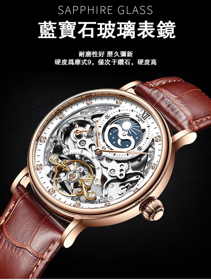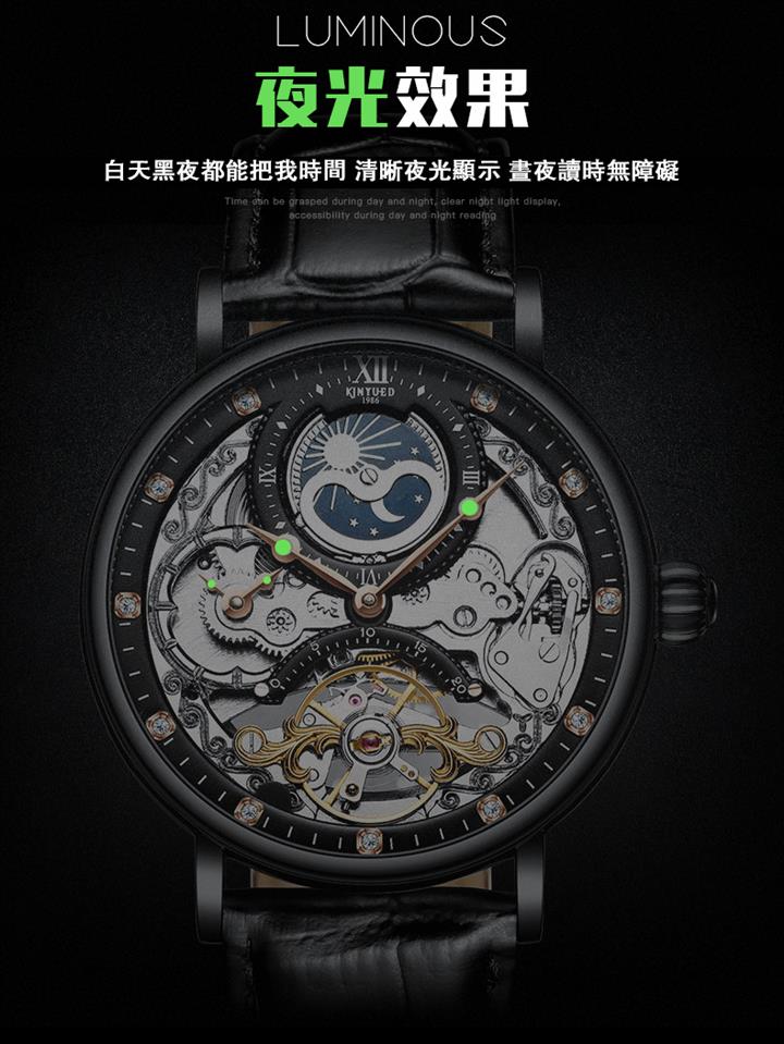 浪漫繁複機械美學 | 全自動機械機芯 | 陀飛輪計時 | 極致鏤空錶盤 | 小牛皮錶帶 | 藍寶石錶鏡 | 高清夜光 | 30米防水 | 正品KINYUED男士全自動機械錶