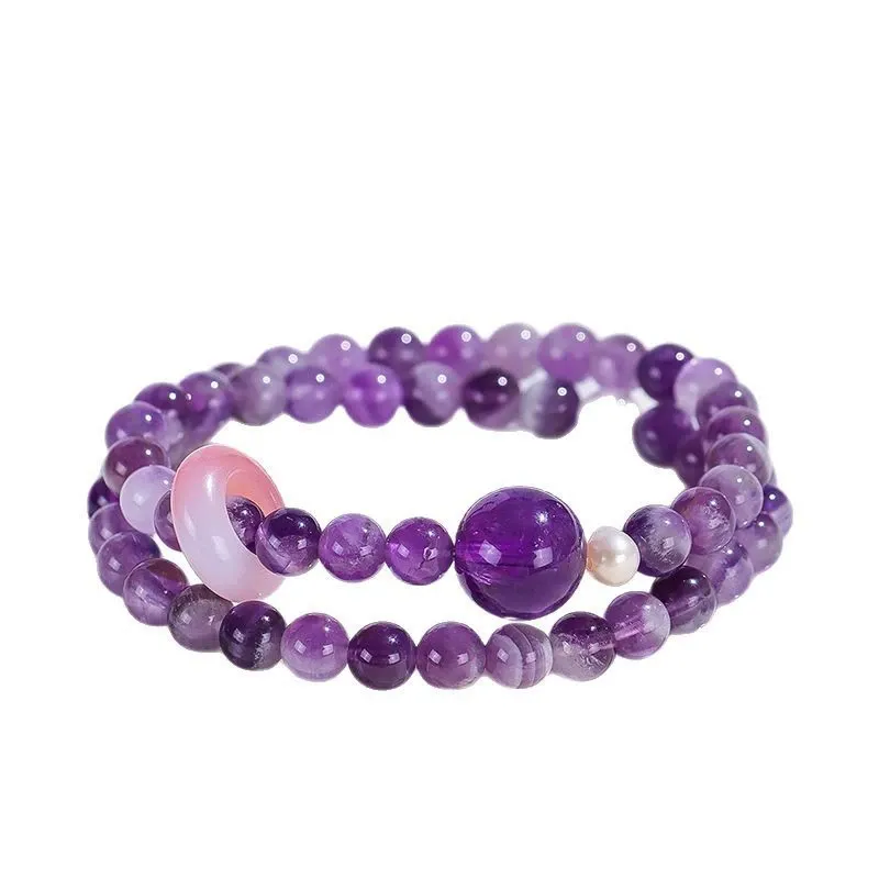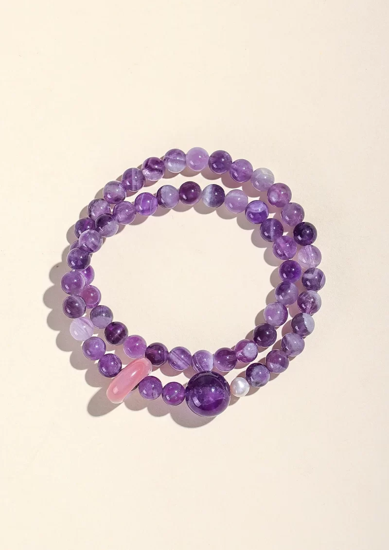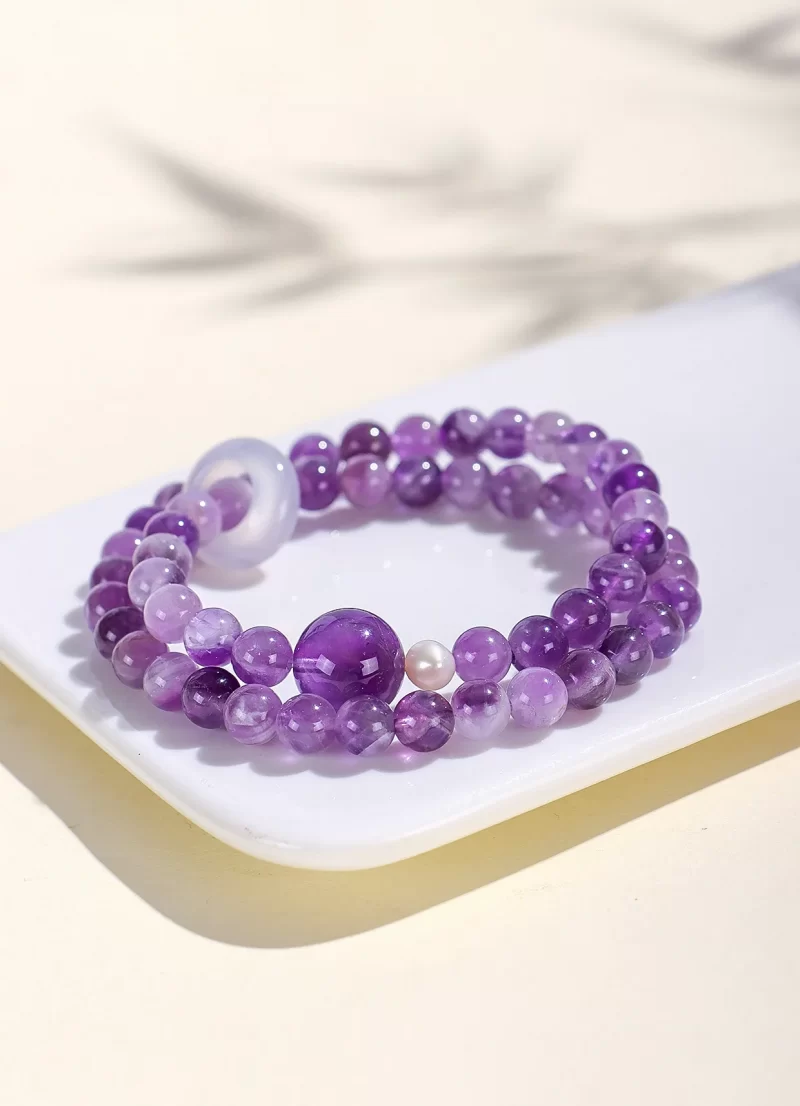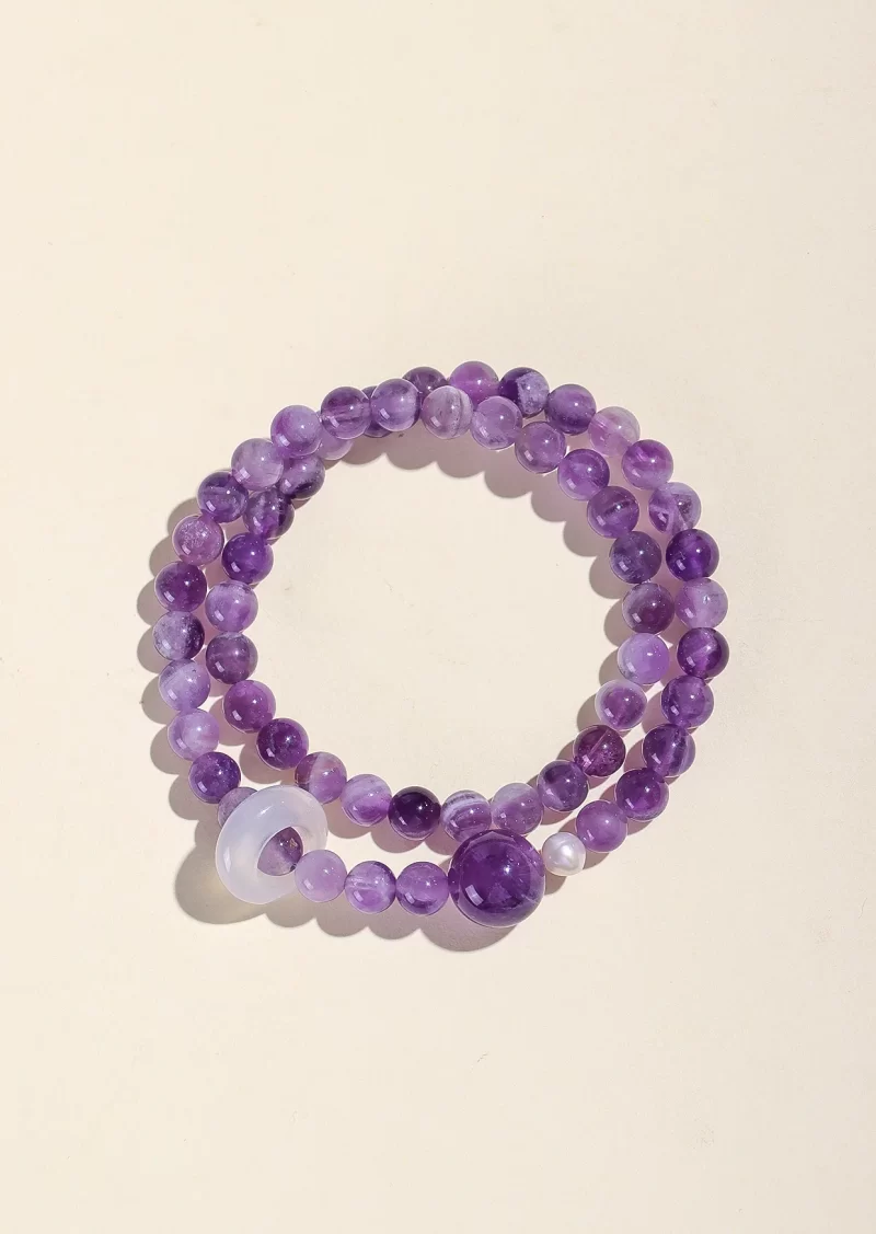 手鍊・紫藤花開・雙圈 | 天然夢幻紫水晶・果凍瑪瑙 | 上岸錦鯉 | 天然紫水晶搭配瑪瑙環手鍊事業水晶手串
