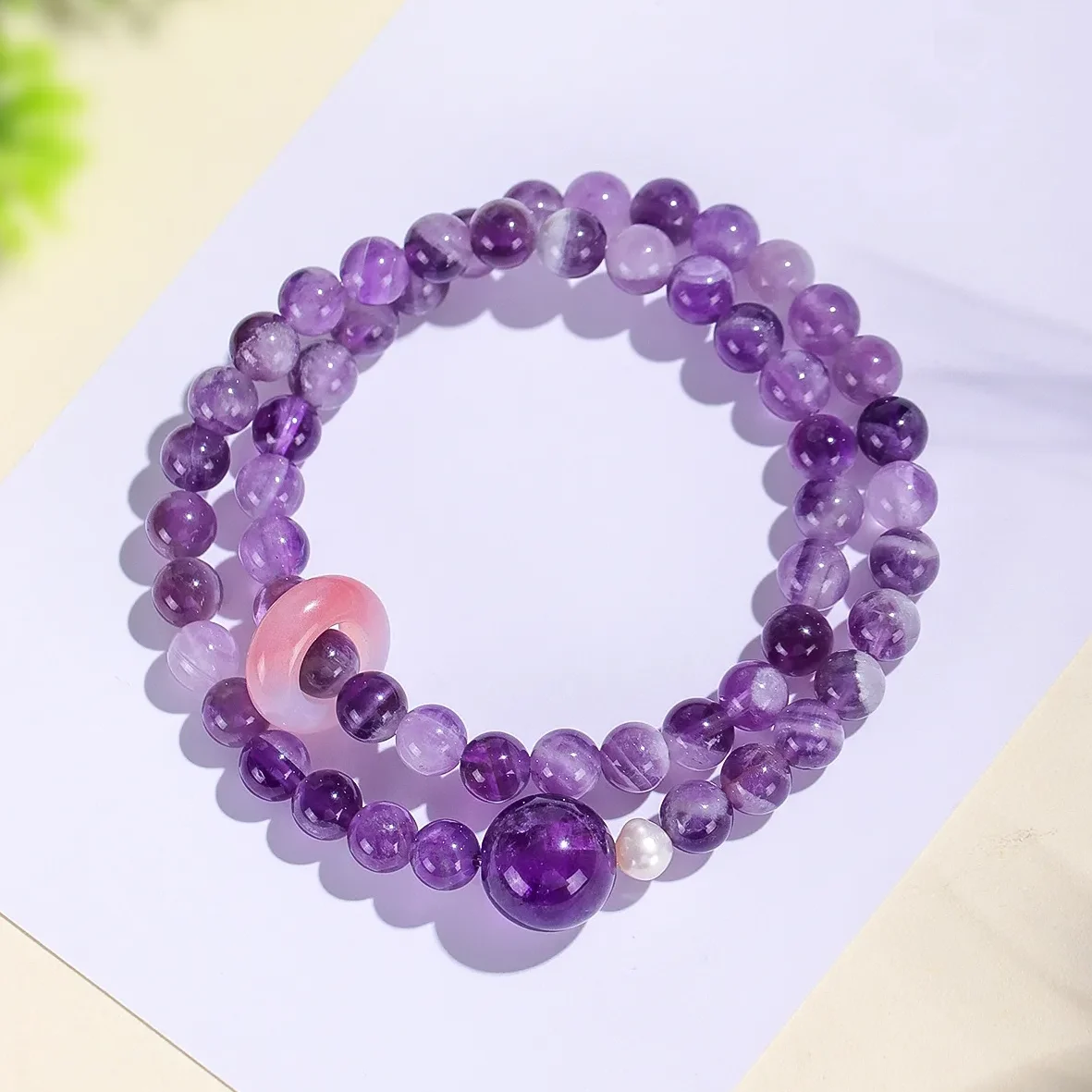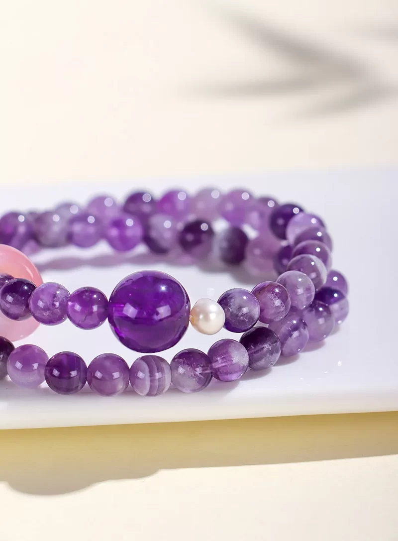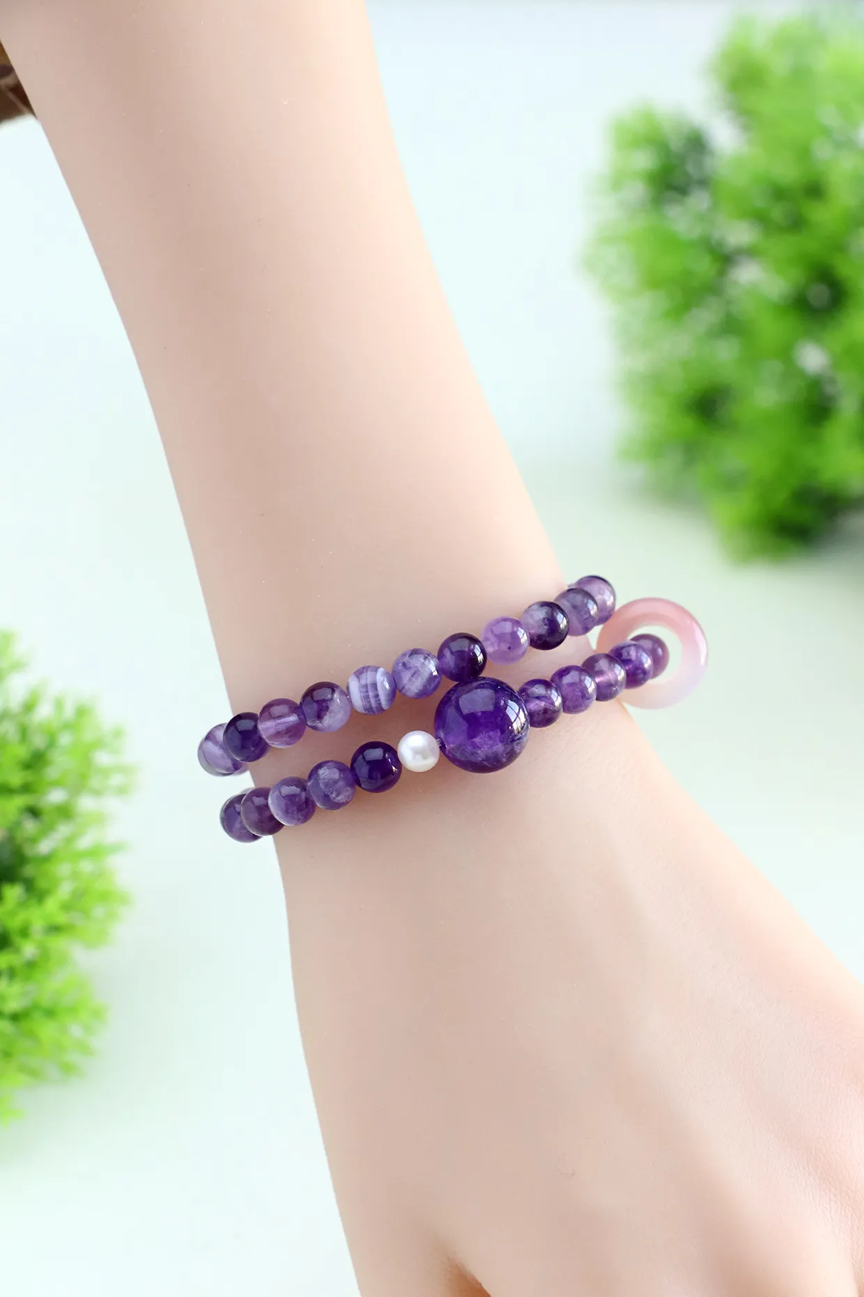 手鍊・紫藤花開・雙圈 | 天然夢幻紫水晶・果凍瑪瑙 | 上岸錦鯉 | 天然紫水晶搭配瑪瑙環手鍊事業水晶手串