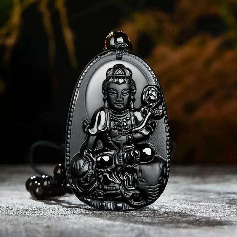 普賢菩薩 | 生肖守護 | 法相莊嚴 | 十二生肖本命佛項鍊 | 天然烏金黑曜石 | 大師精細立體微雕 | 十二生肖本命佛守護神黑曜石吊墜項鍊