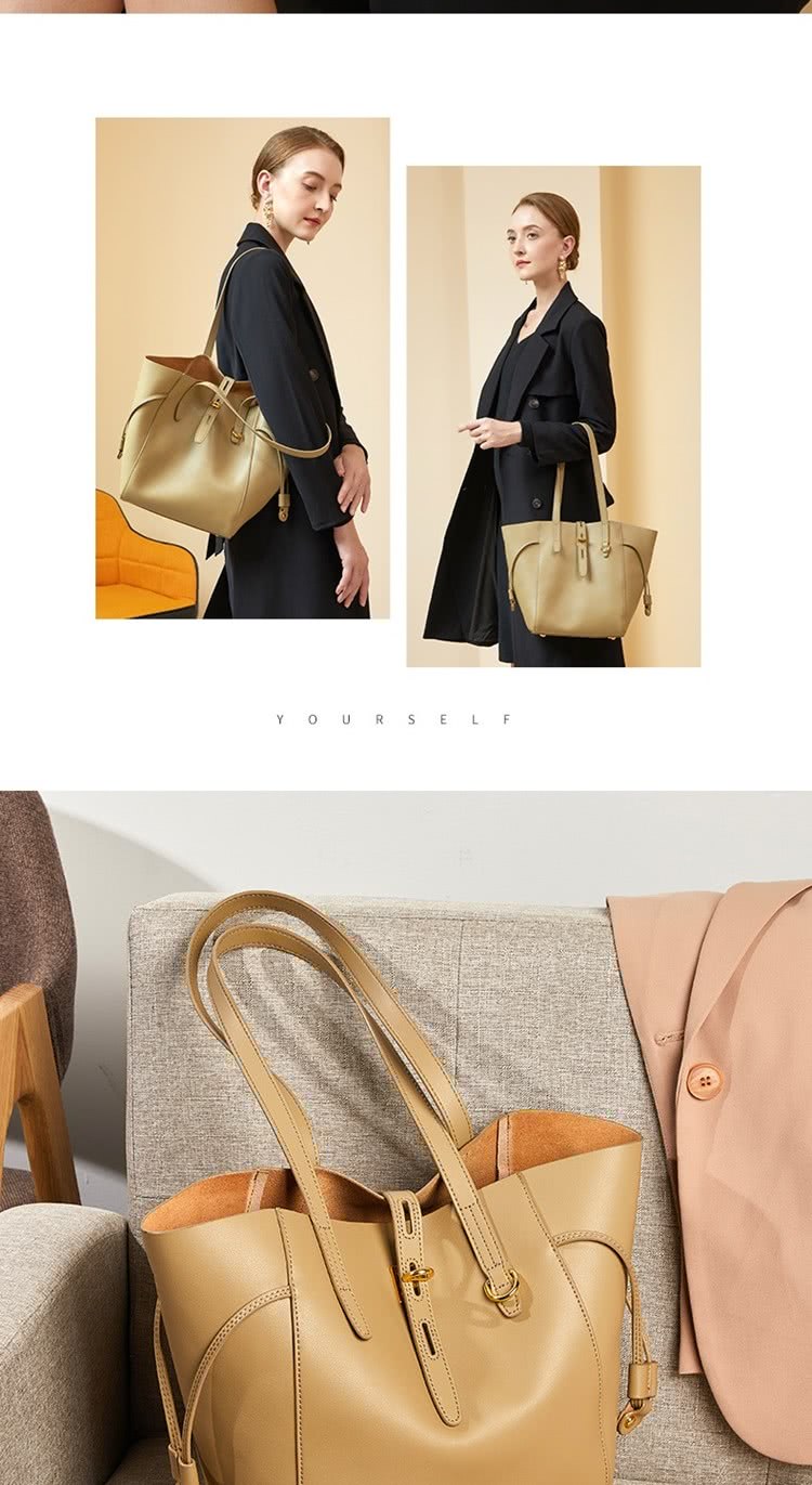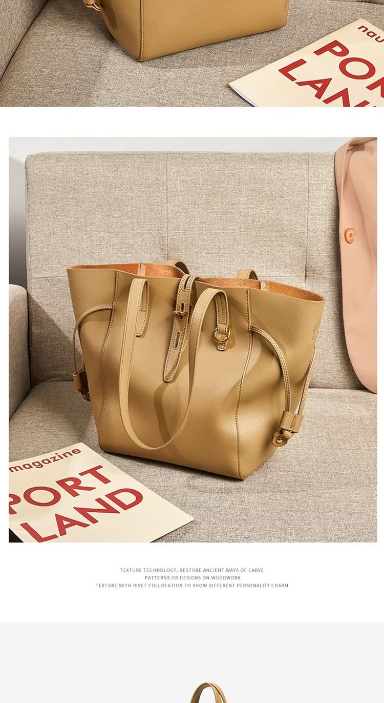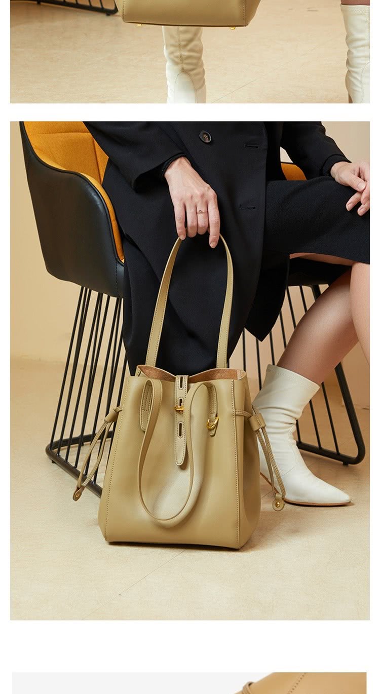高級感水桶托特包 | 頭層真皮小牛皮 | 實用大容量 | 側背包 | 手提包 | 黑色女包