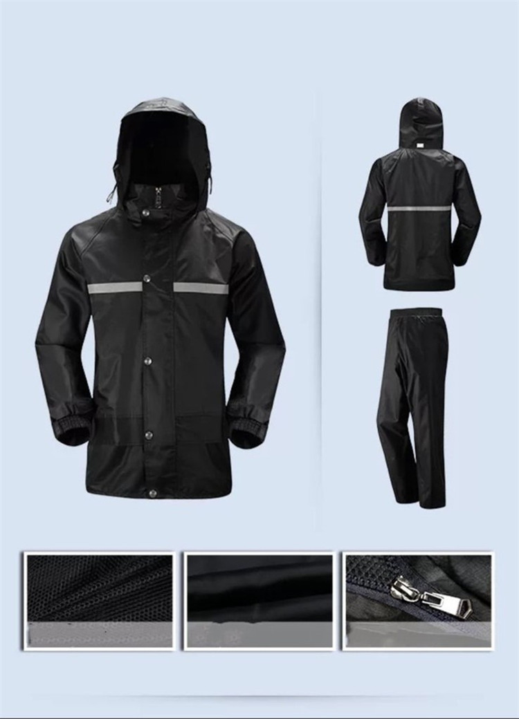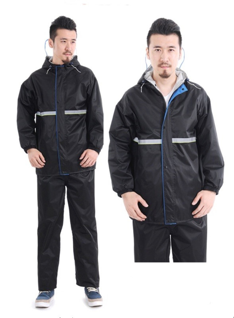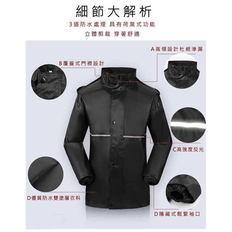 【黑騎士兩件式】【暴雨級防水】【安全反光條】超強防水分體式成人機車反光雨衣雨褲套裝鬆緊帶雨褲